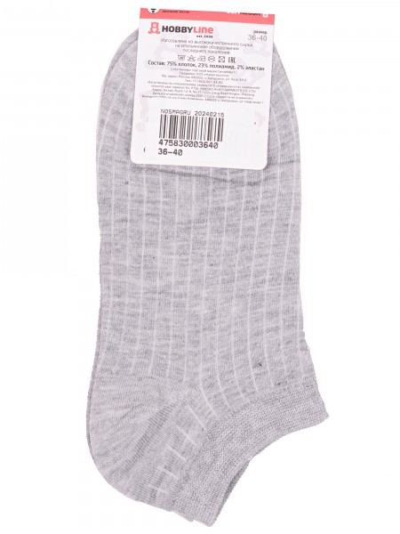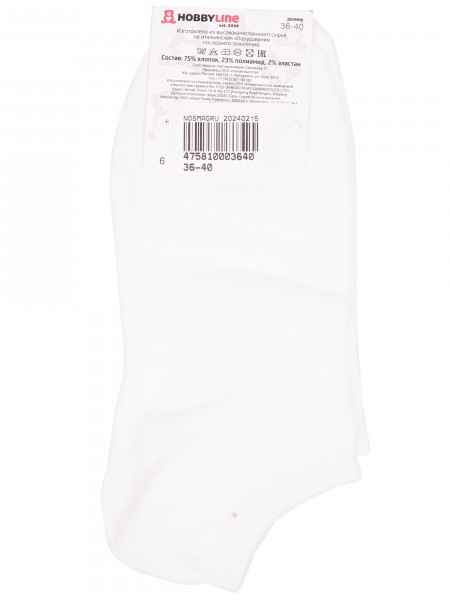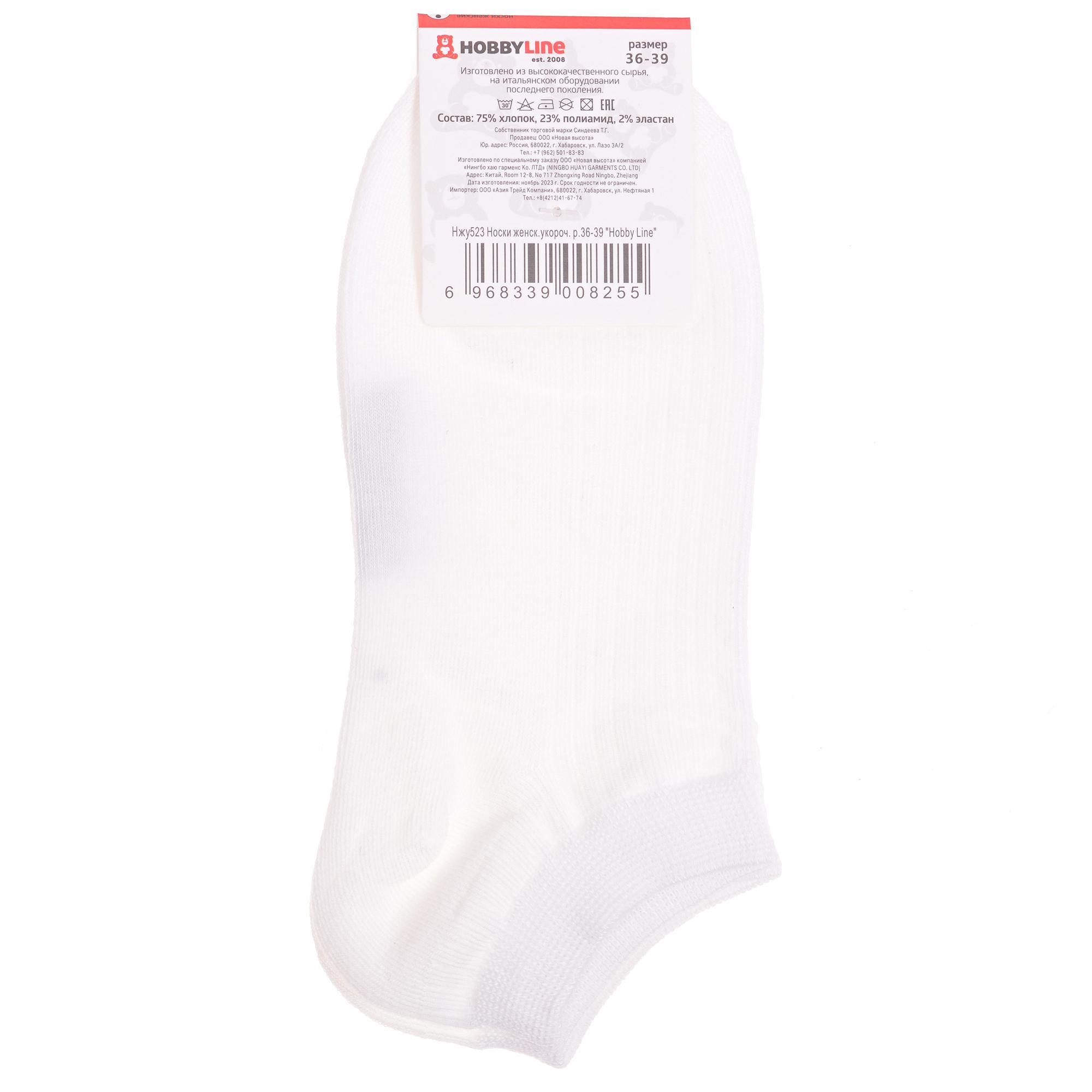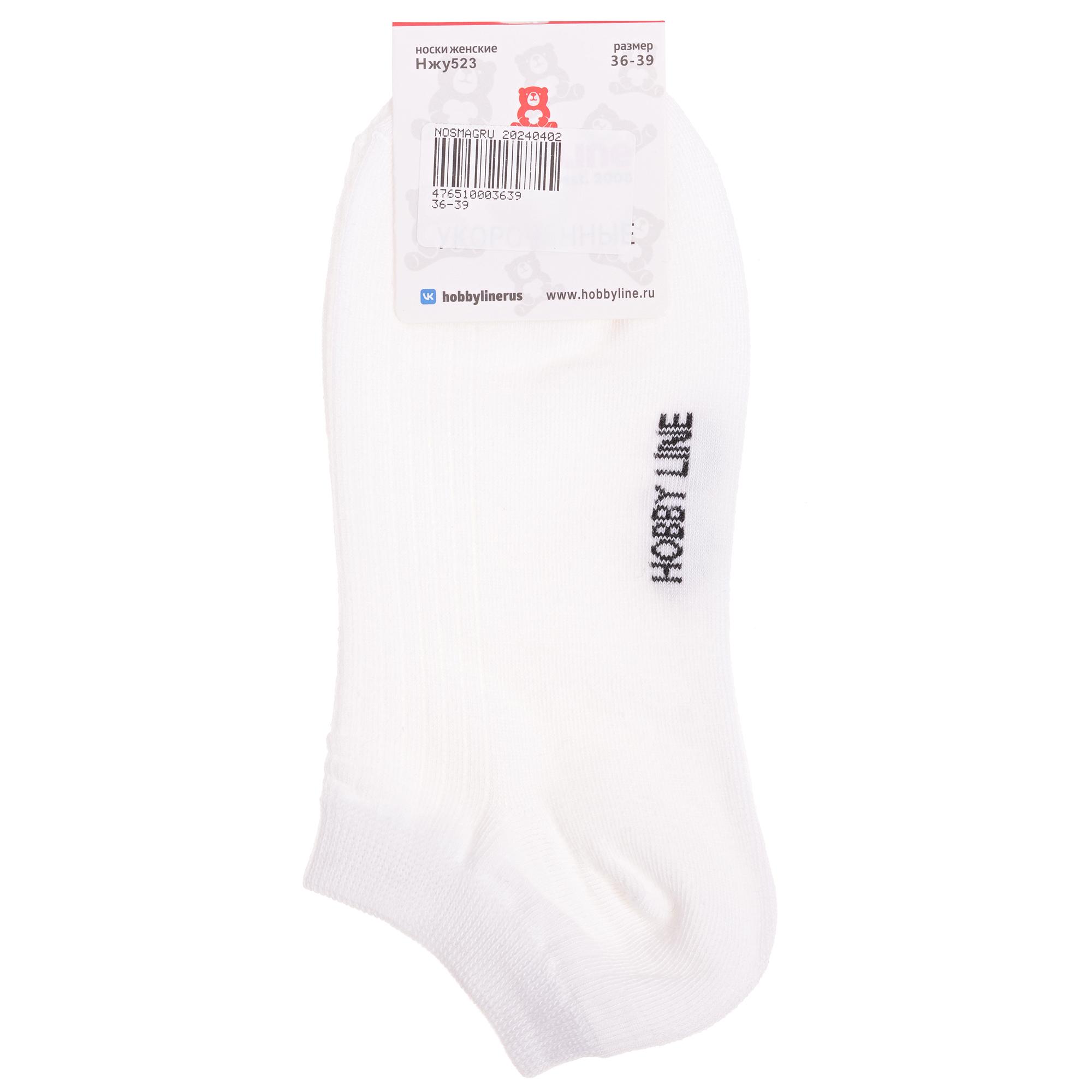 Межсезонные или летние короткие женские носки, цвет белый, классические, возможно бесшовные, принт (рисунок): в рубчик, однотонный, без рисунков/узоров, состав: 75% хлопок, 23% полиамид, 2% эластан, арт. Нжу523. Производитель «Китай, страна бренда - Россия» под брендом «Hobby line».