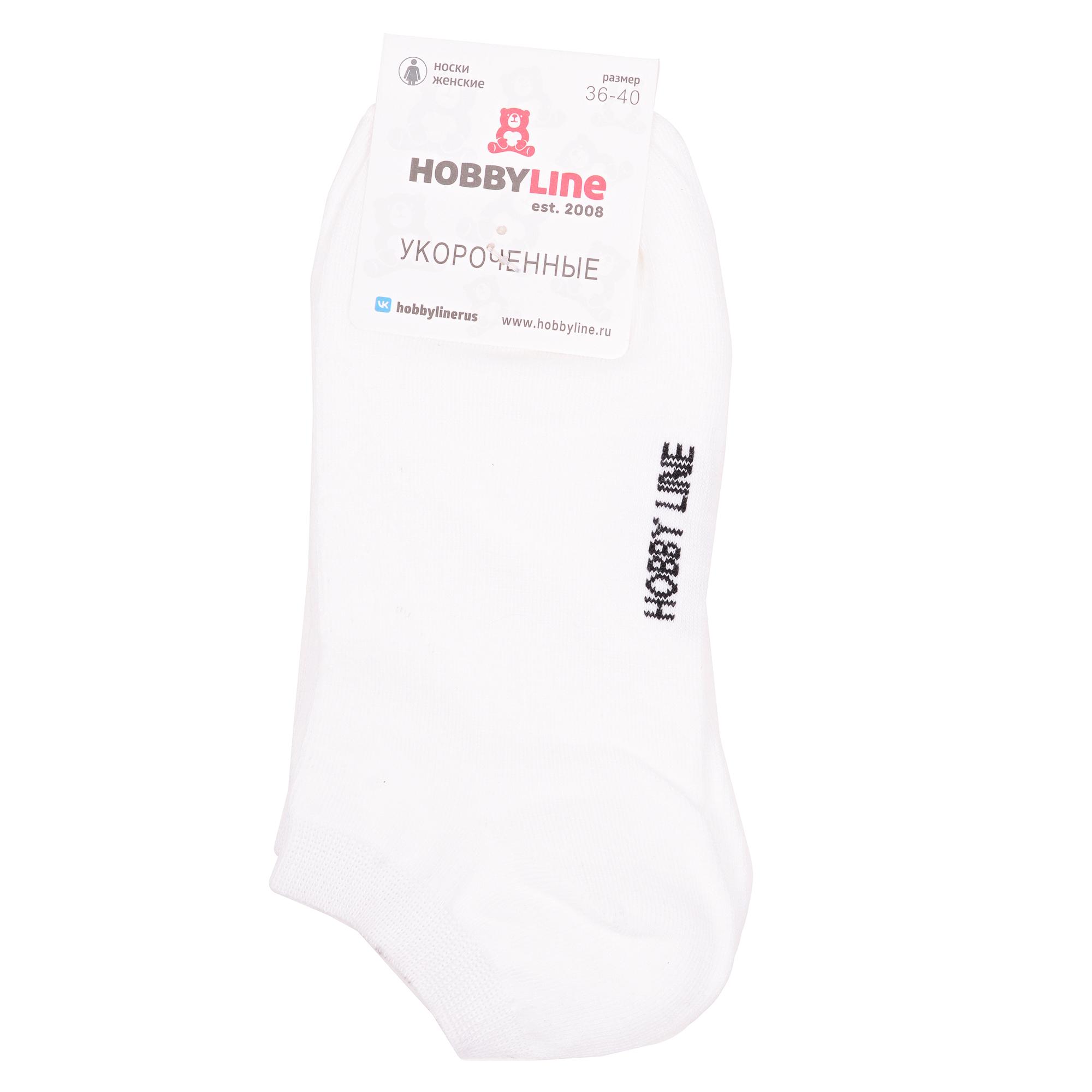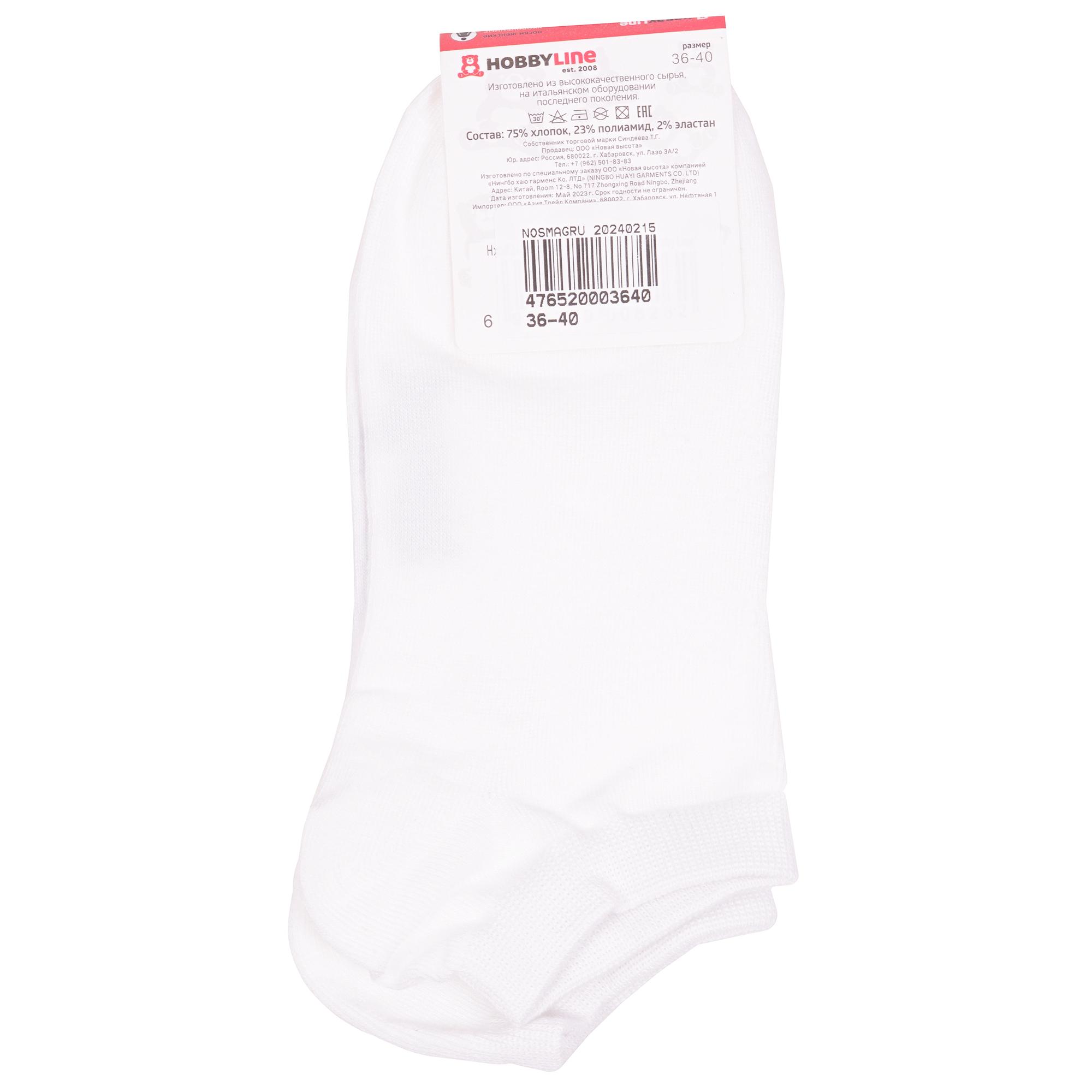 Межсезонные или летние короткие женские носки, цвет белый, классические, шов обычный (не бесшовные), принт (рисунок): с узором, однотонный, состав: 75% хлопок, 23% полиамид, 2% эластан, арт. Нжу524. Производитель «Китай, страна бренда - Россия» под брендом «Hobby line».