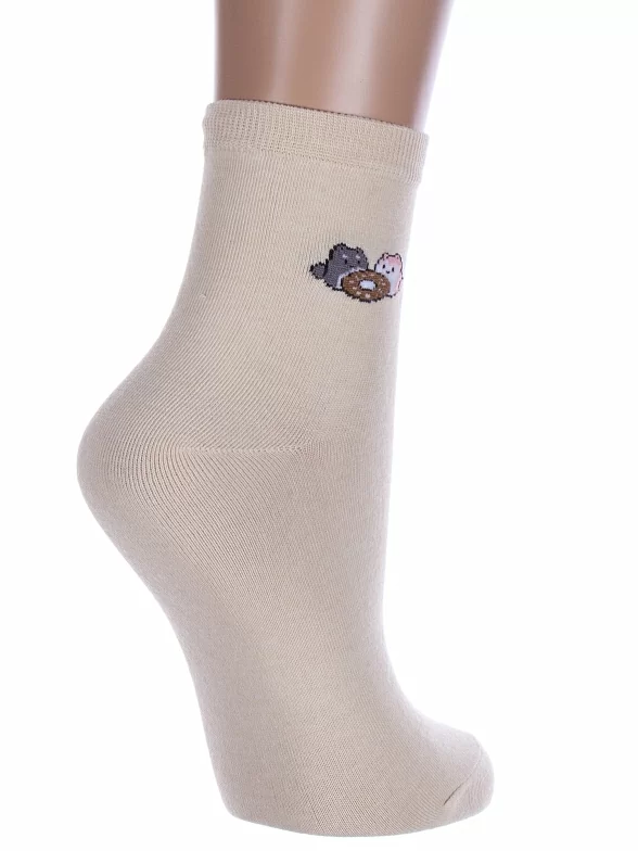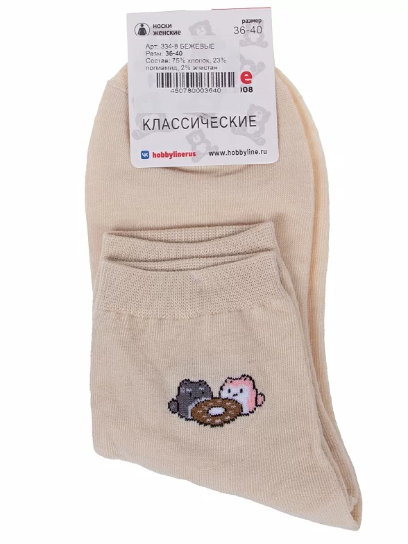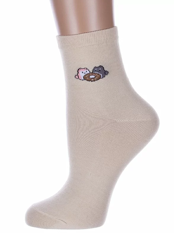 Круглогодичные укороченные женские носки, цвет бежевый, с принтом, состав: 75% хлопок, 23% полиамид, 2% эластан, арт. Нжх334-8. Производитель «Китай, страна бренда - Россия» под брендом «Hobby line».