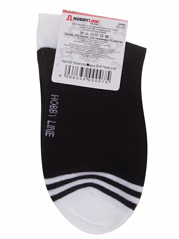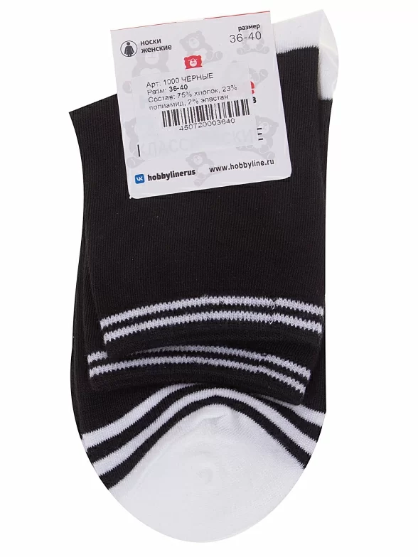Круглогодичные укороченные женские носки, цвет черный, с принтом, состав: 75% хлопок, 23% полиамид, 2% эластан, арт. Нжх1000. Производитель «Китай, страна бренда - Россия» под брендом «Hobby line».
