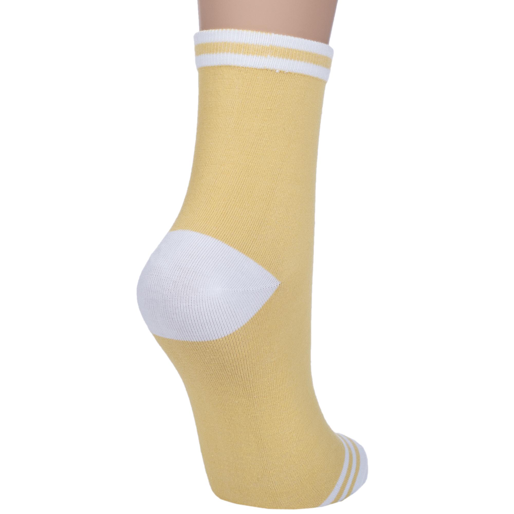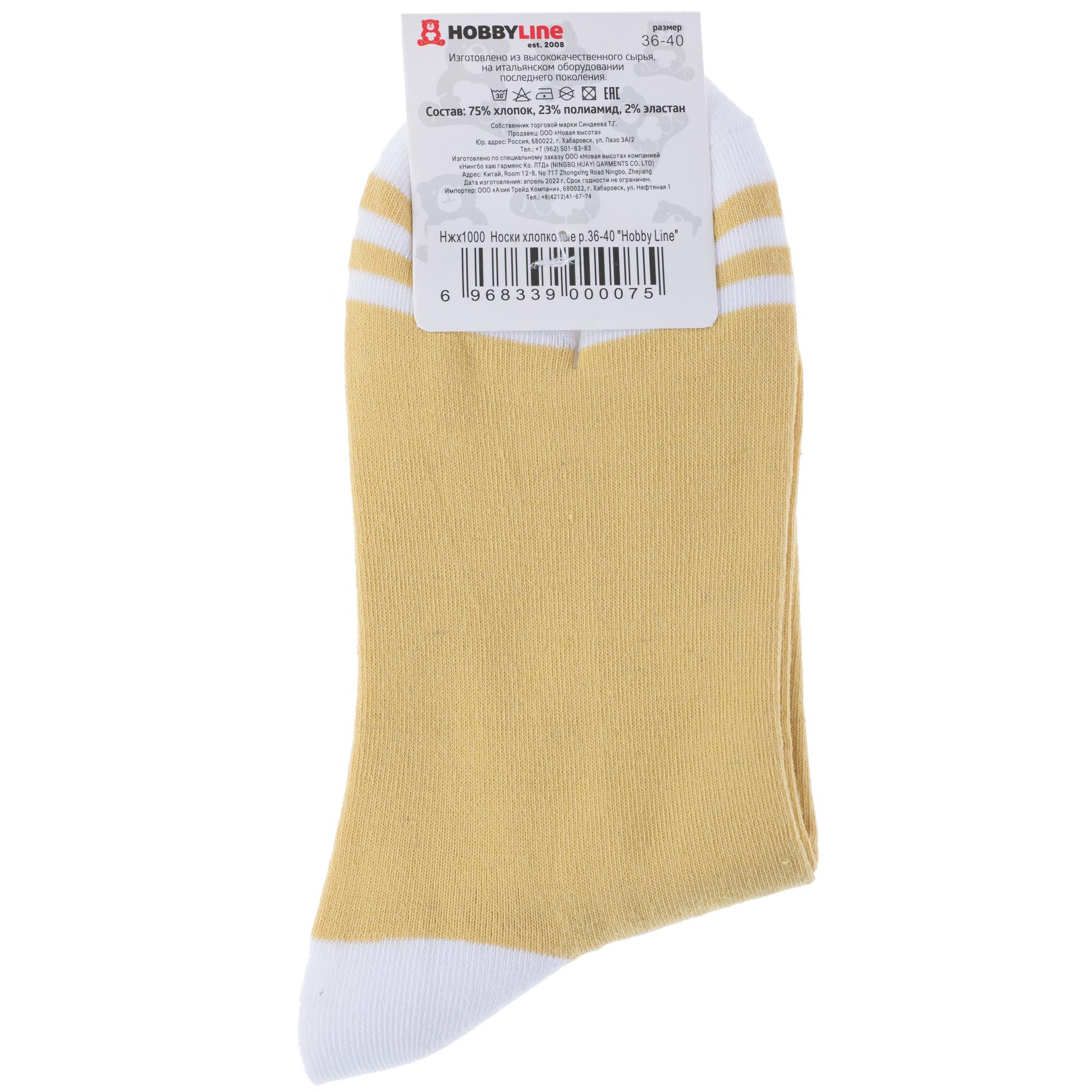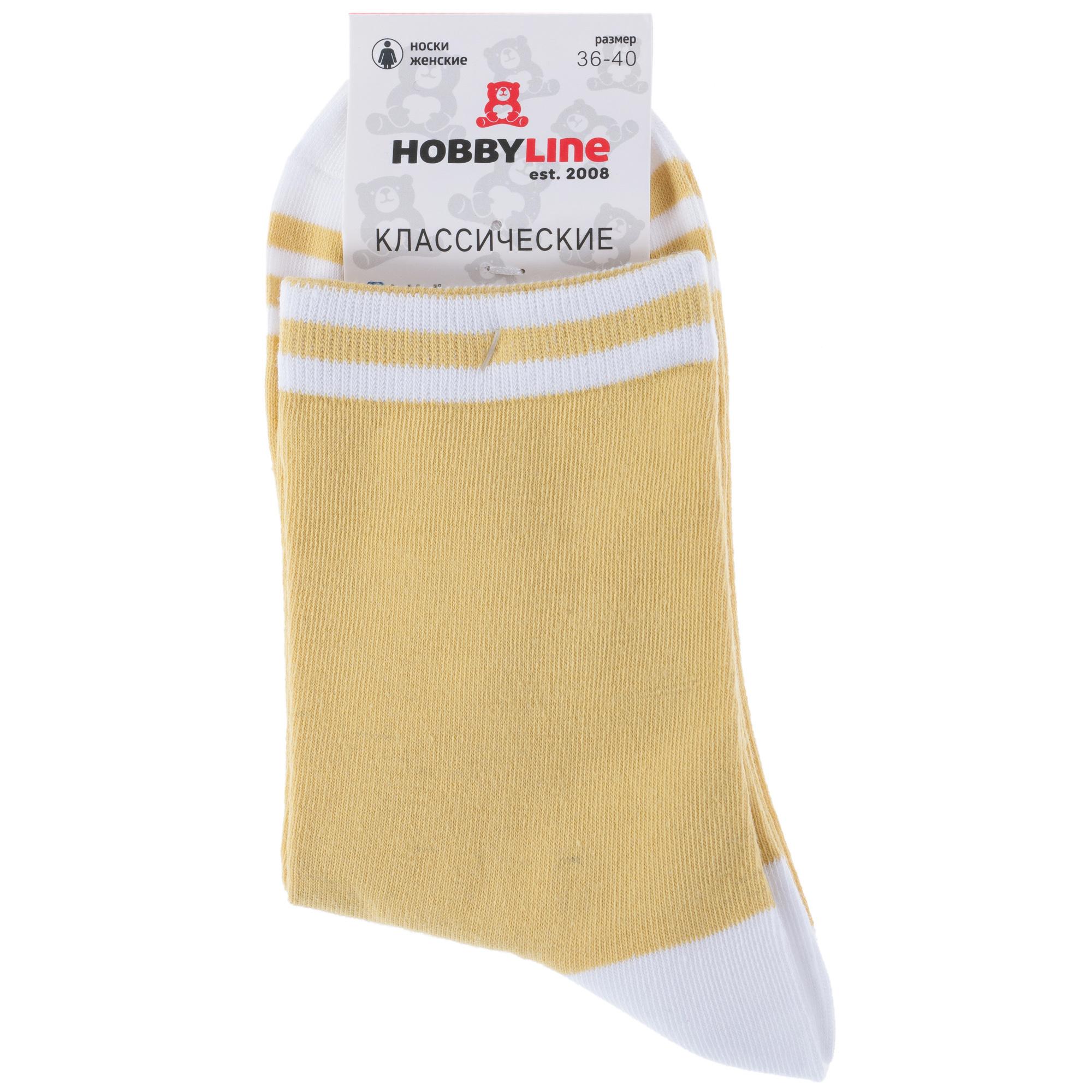 Круглогодичные средней длины женские носки, цвет желтый, классические, шов обычный (не бесшовные), принт (рисунок): полоски, геометрия, состав: 75% хлопок, 23% полиамид, 2% эластан, арт. Нжх1000. Производитель «Китай, страна бренда - Россия» под брендом «Hobby line».