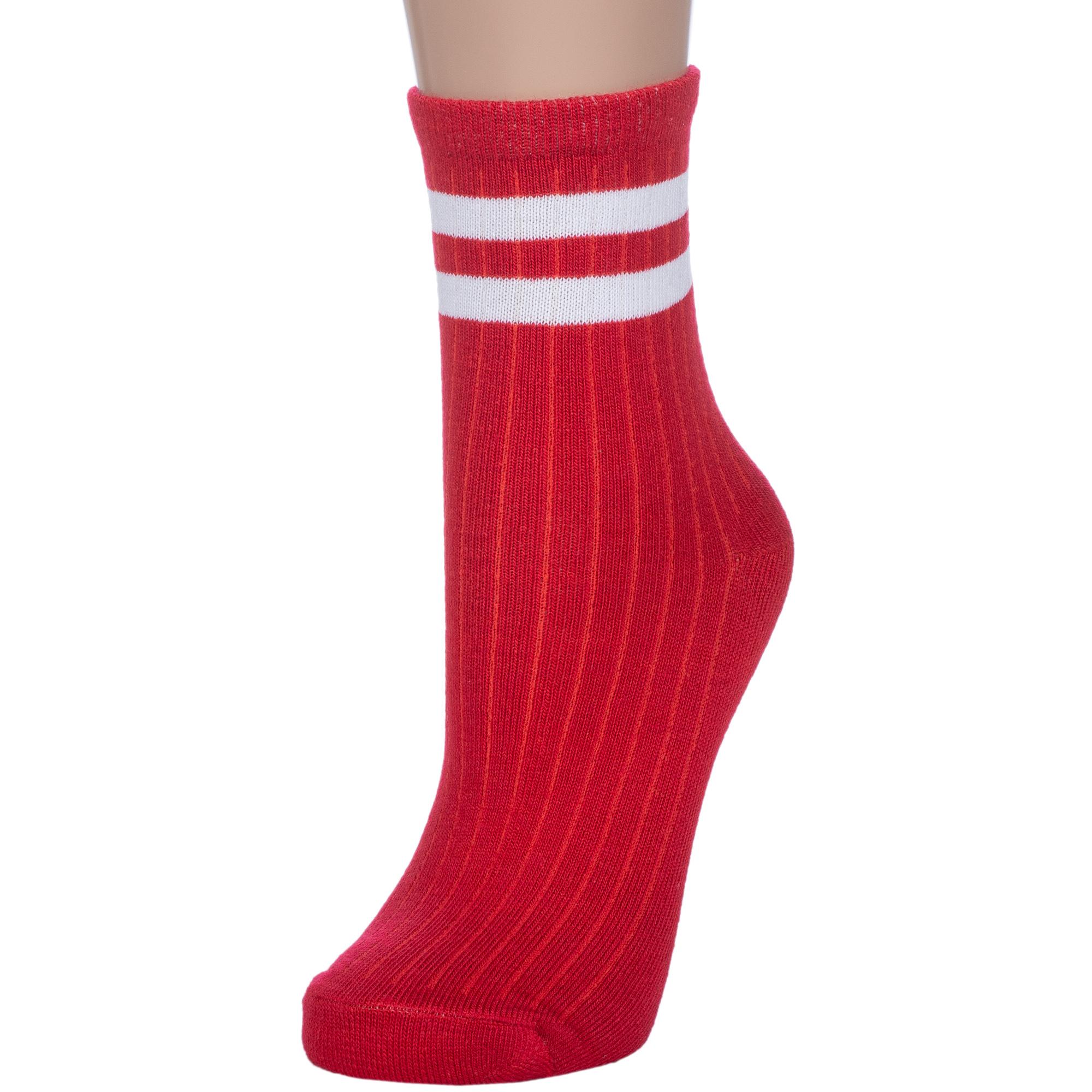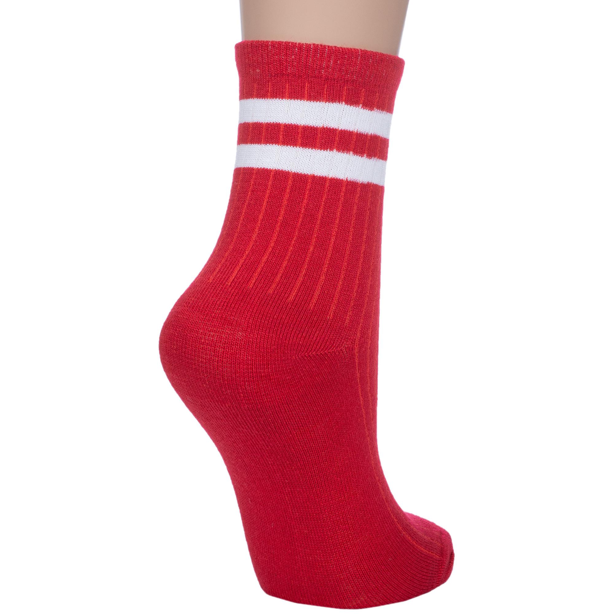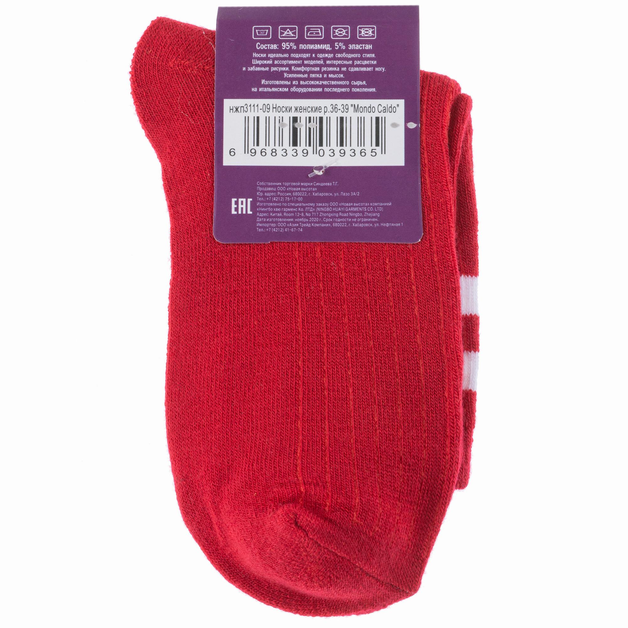 Круглогодичные укороченные женские носки, цвет красный, классические, шов обычный (не бесшовные), принт (рисунок): спортивные, полоски, в рубчик, с узором, состав: 95% полиамид, 5% эластан, арт. 3111-09. Производитель «Китай, страна бренда - Россия» под брендом «Hobby line».