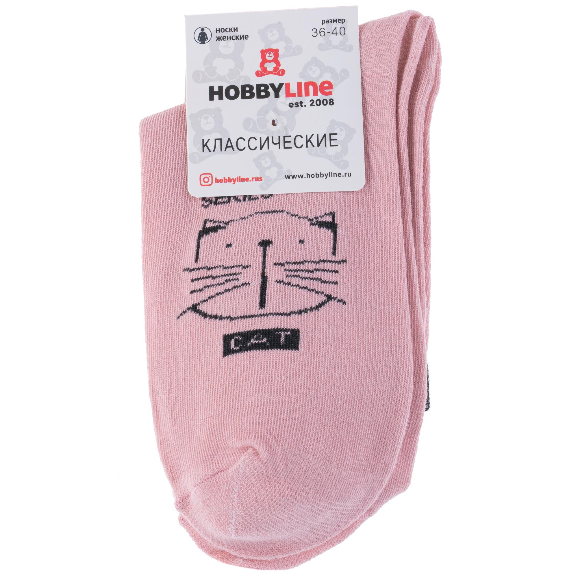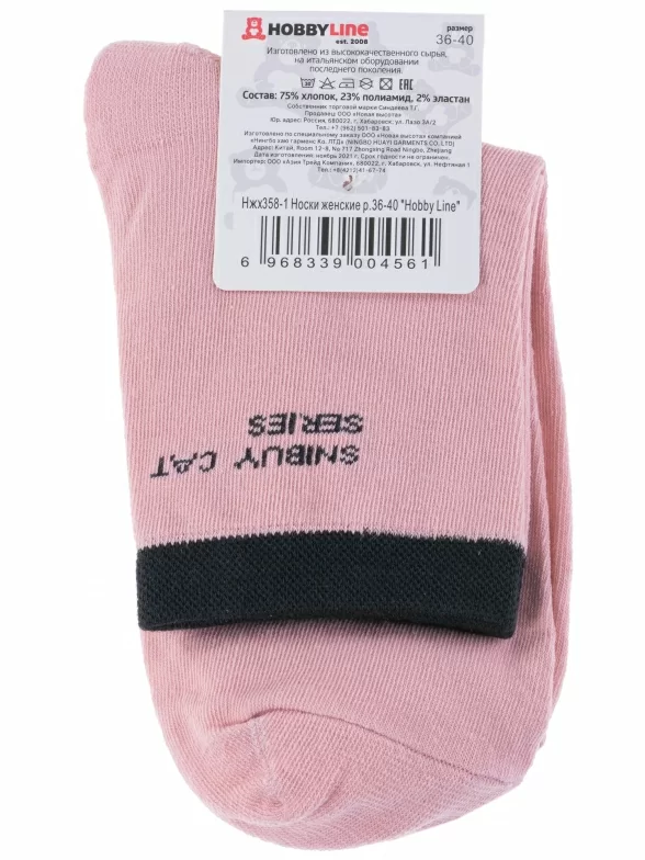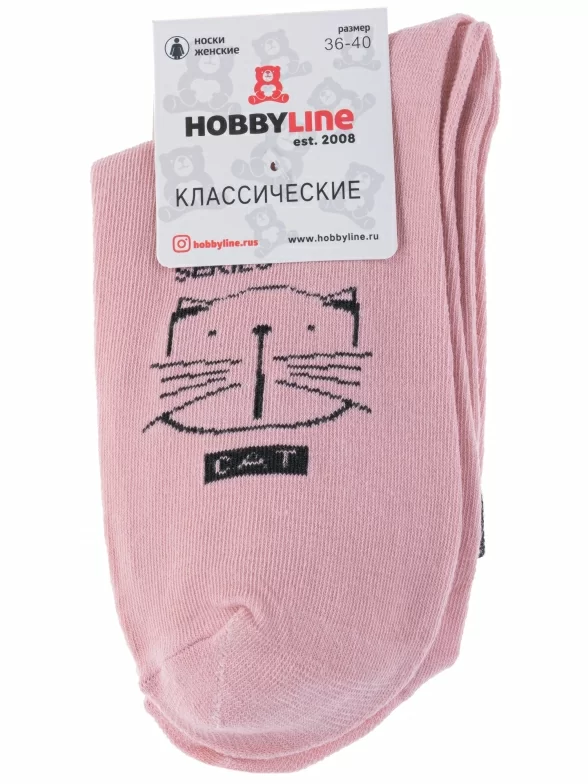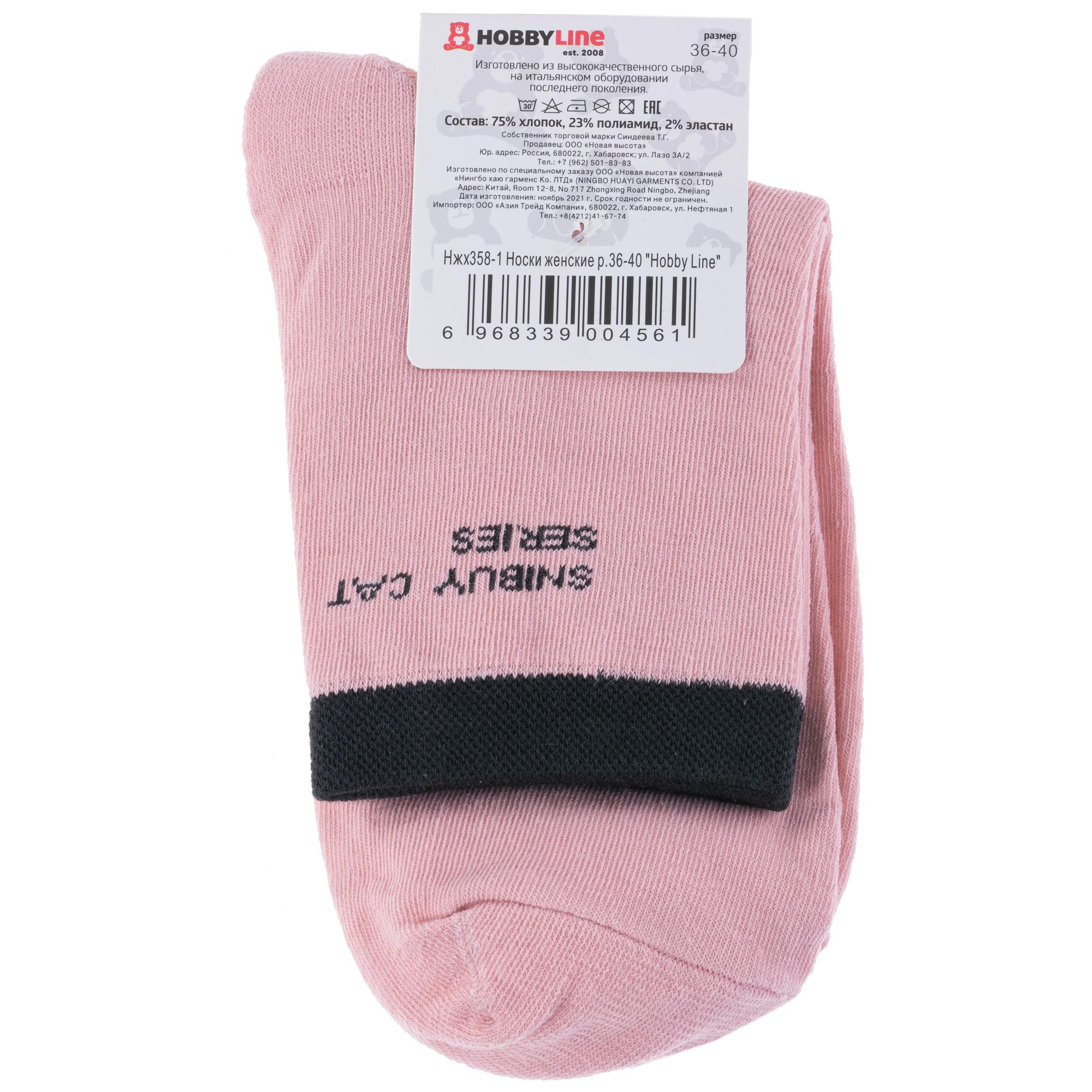 Круглогодичные укороченные женские носки, цвет розовый, повседневные, шов обычный (не бесшовные), принт (рисунок): животные, с узором, состав: 75% хлопок, 23% полиамид, 2% эластан, арт. 358-1. Производитель «Китай, страна бренда - Россия» под брендом «Hobby line».