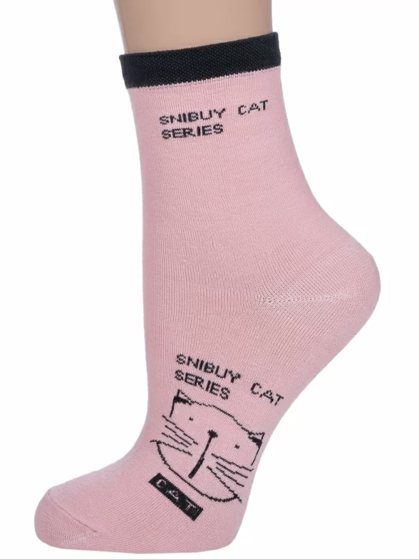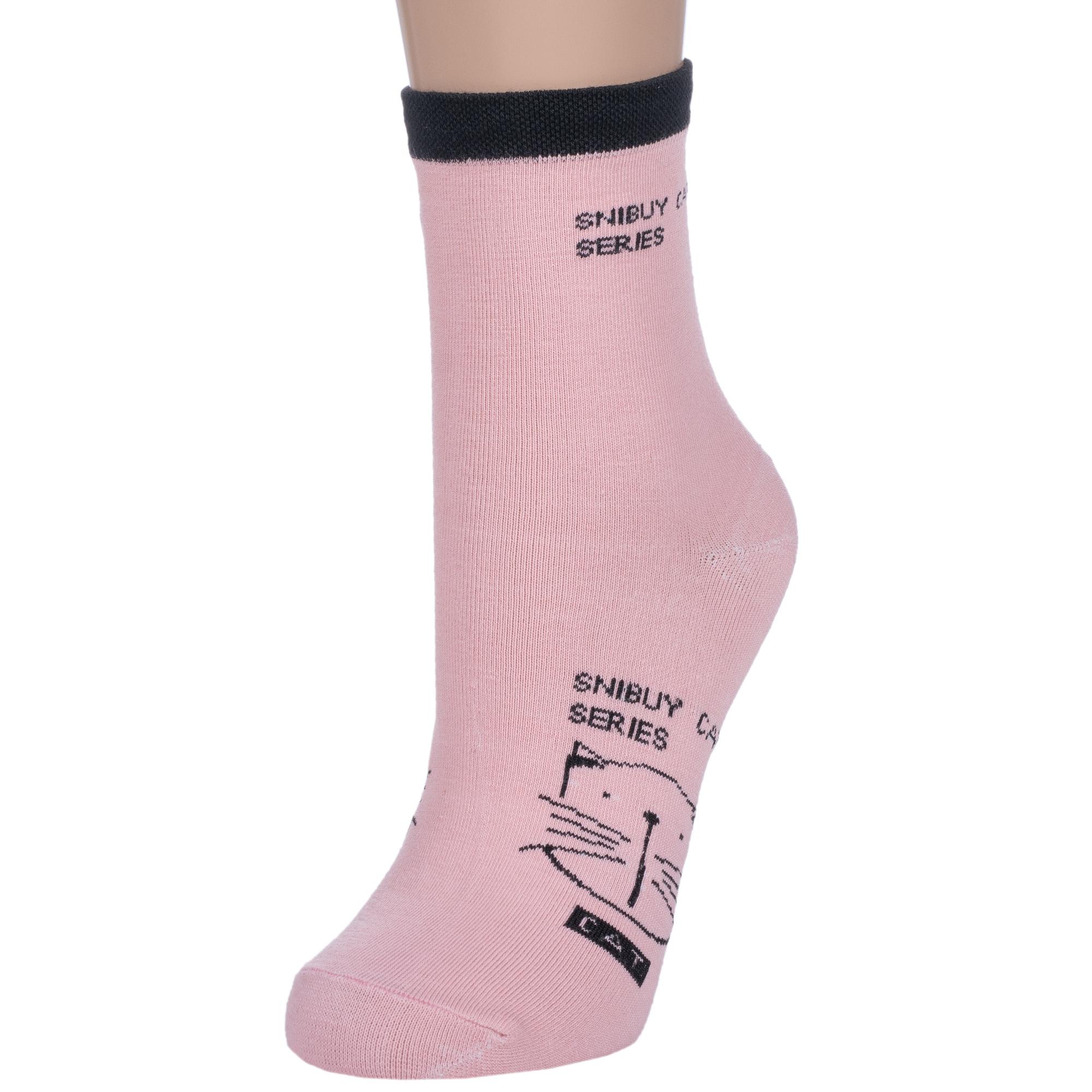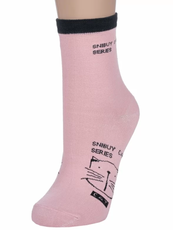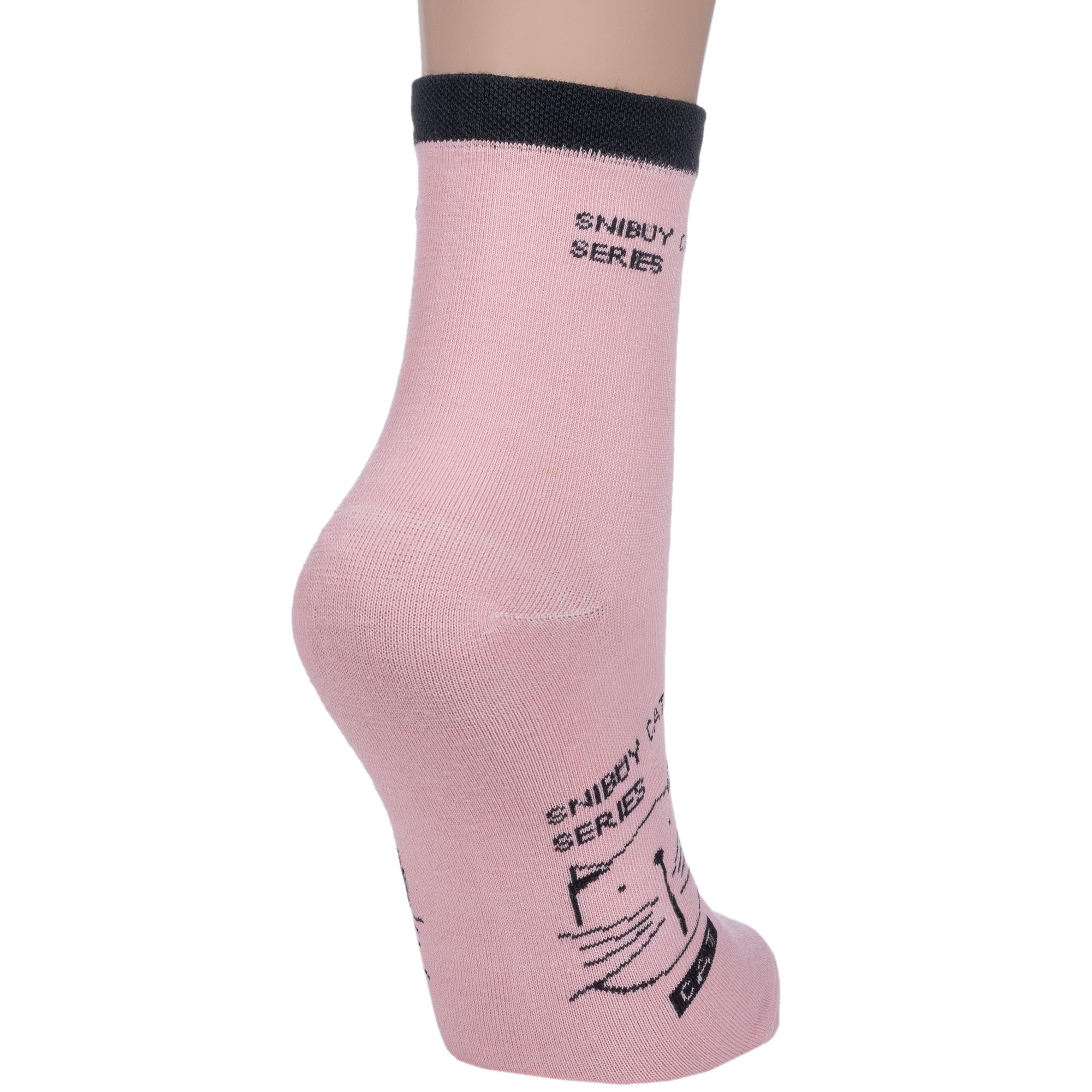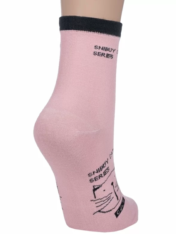Круглогодичные укороченные женские носки, цвет розовый, повседневные, шов обычный (не бесшовные), принт (рисунок): животные, с узором, состав: 75% хлопок, 23% полиамид, 2% эластан, арт. 358-1. Производитель «Китай, страна бренда - Россия» под брендом «Hobby line».