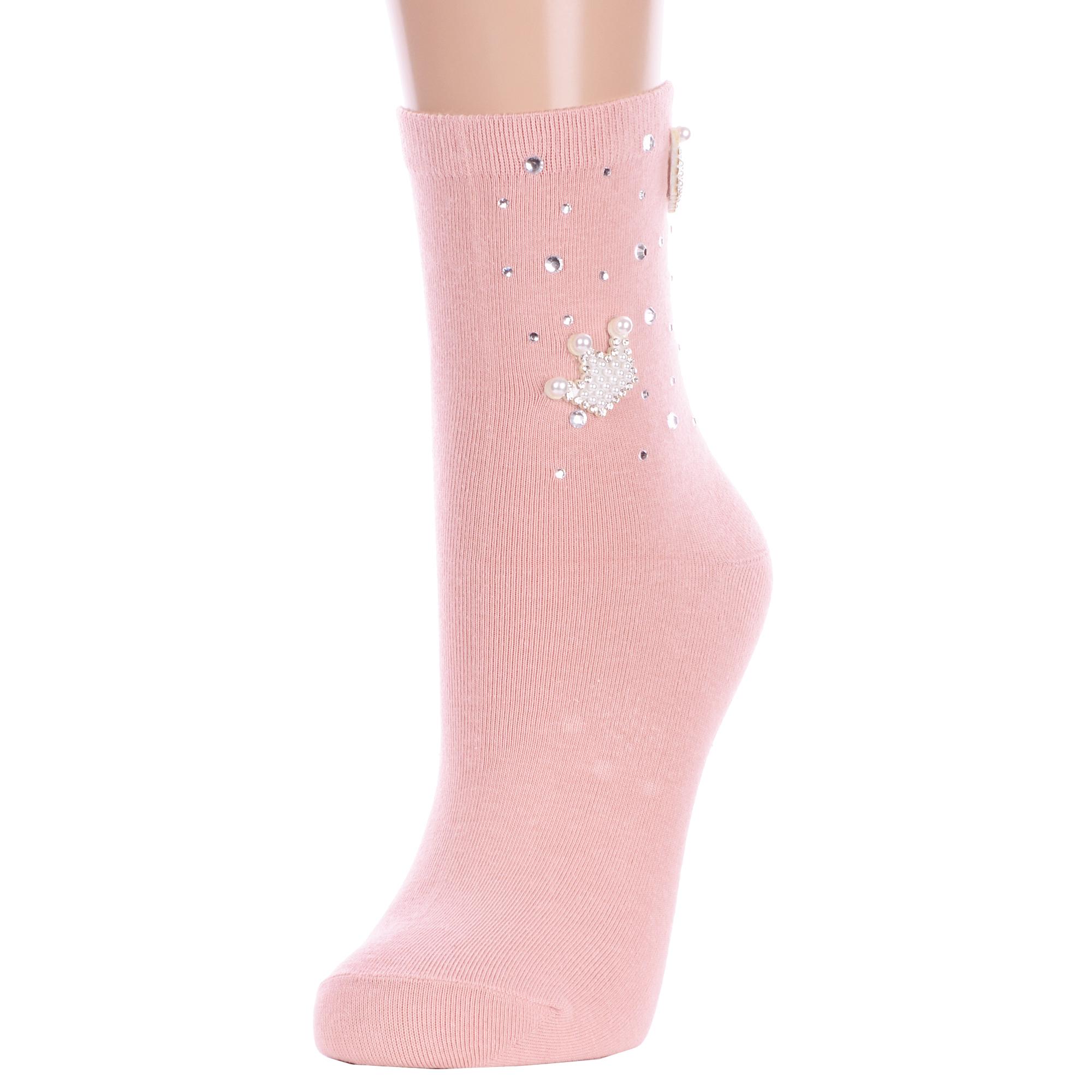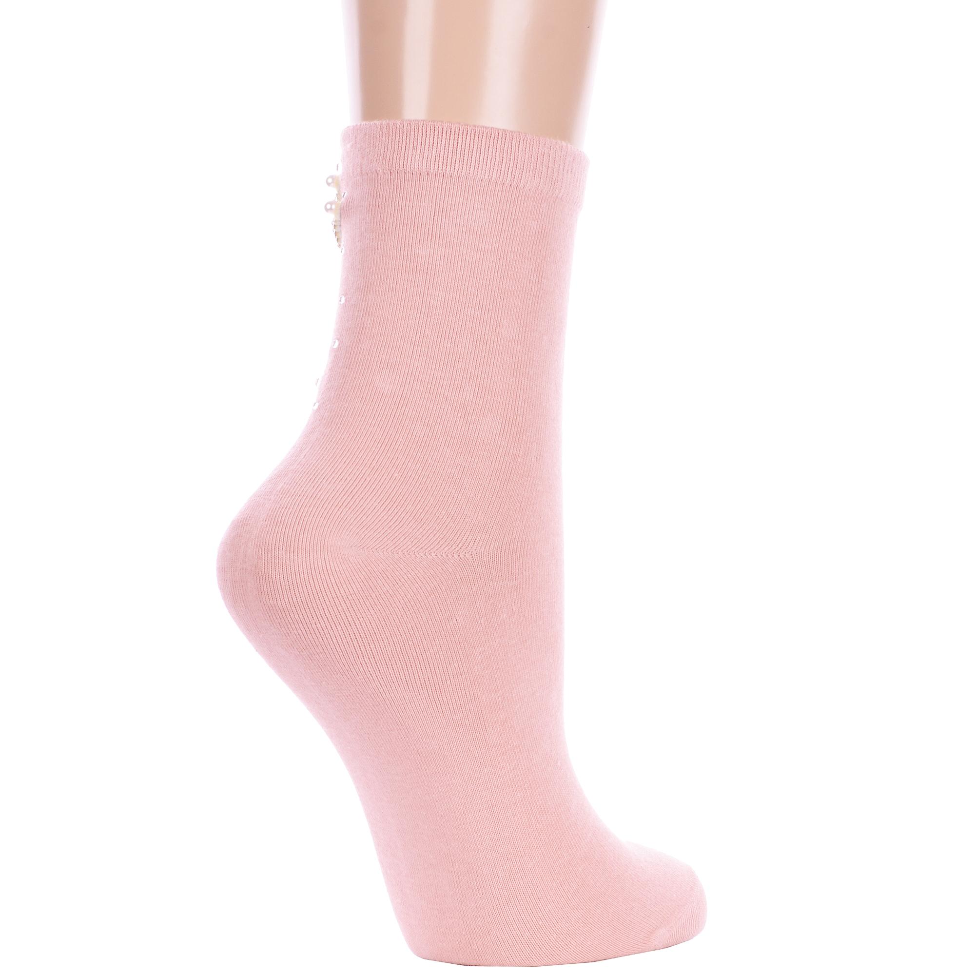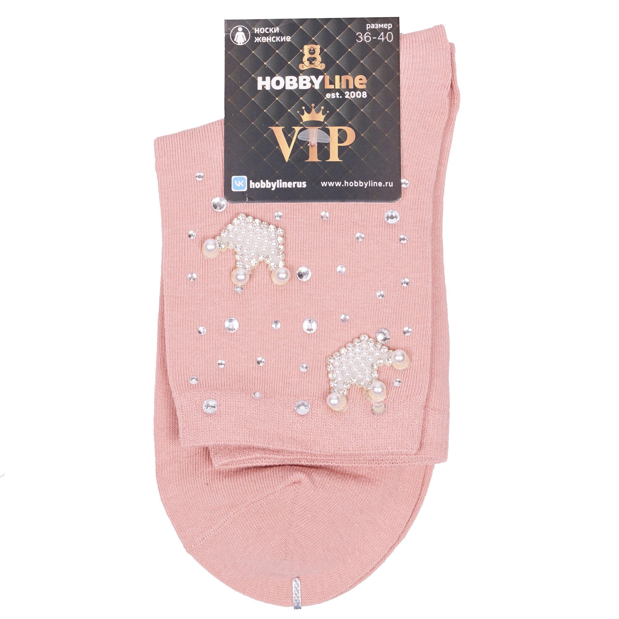 Круглогодичные укороченные женские носки, цвет розовый, с украшениями, необычные, шов обычный (не бесшовные), принт (рисунок): с узором, состав: 75% хлопок, 23% полиамид, 2% эластан, арт. Нжвип1000-16. Производитель «Китай, страна бренда - Россия» под брендом «Hobby line».