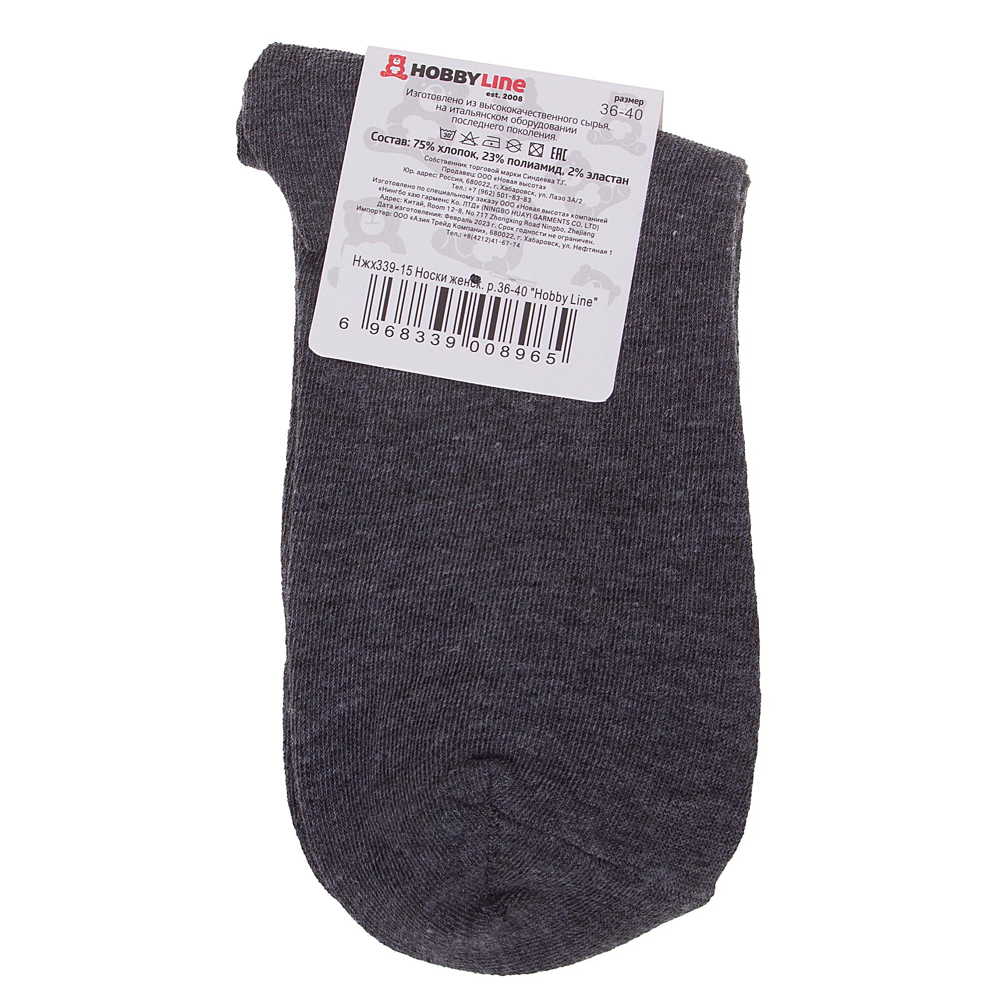 Круглогодичные укороченные женские носки, цвет серый, классические, состав: 75% хлопок, 23% полиамид, 2% эластан, арт. Нжх339-15. Производитель «Китай, страна бренда - Россия» под брендом «Hobby line».