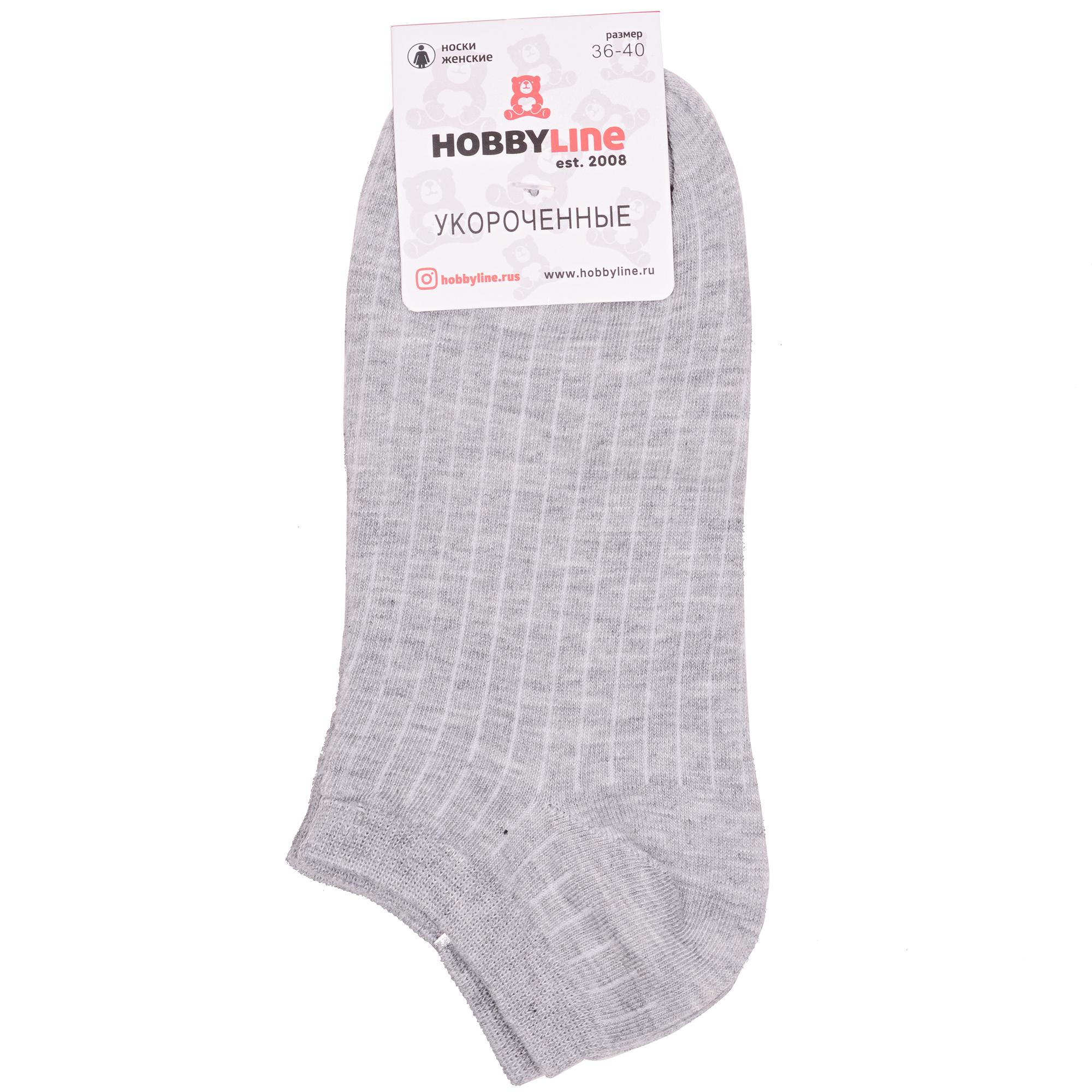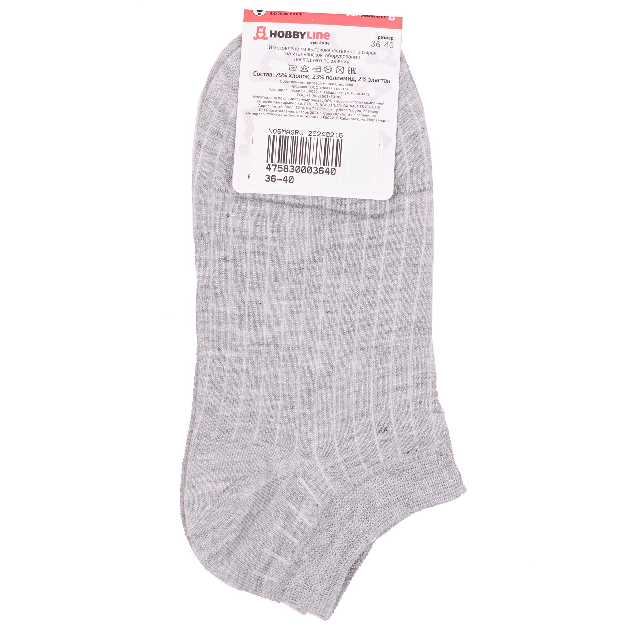 Межсезонные или летние короткие женские носки, цвет серый, классические, шов обычный (не бесшовные), принт (рисунок): в рубчик, однотонный, без рисунков/узоров, состав: 75% хлопок, 23% полиамид, 2% эластан, арт. Нжу565-06. Производитель «Китай, страна бренда - Россия» под брендом «Hobby line».