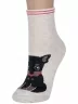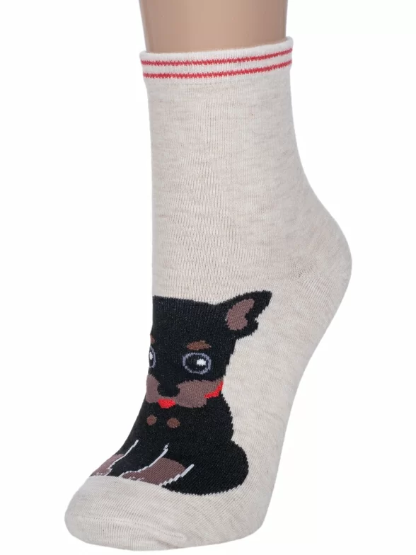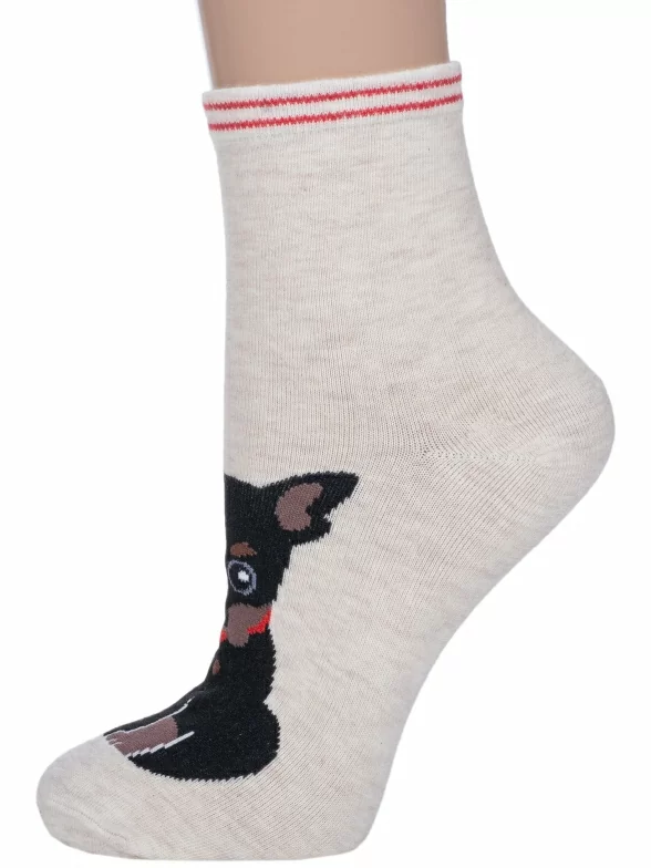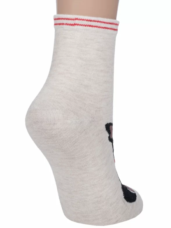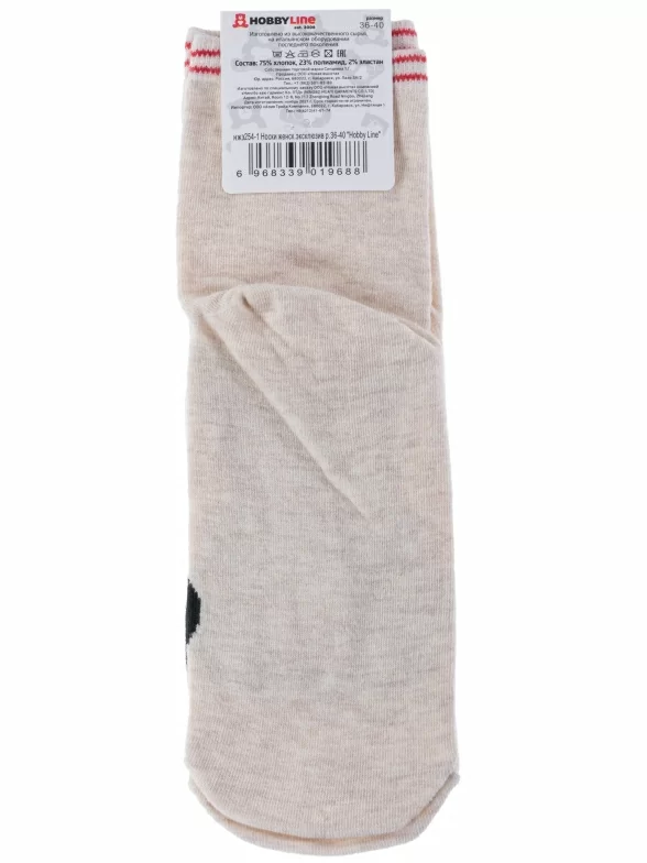 Круглогодичные укороченные женские носки, цвет кремовый-бежевый, повседневные, шов обычный (не бесшовные), принт (рисунок): животные, с узором, крупные контрастные рисунки, состав: 75% хлопок, 23% полиамид, 2% эластан, арт. 254-1. Производитель «Китай, страна бренда - Россия» под брендом «Hobby line».