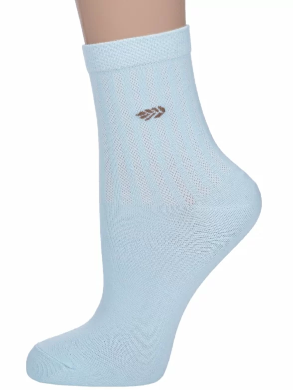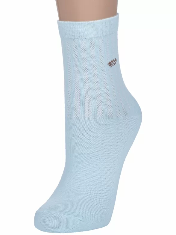 Летние или круглогодичные укороченные женские носки, цвет голубой, в сеточку, классические, шов обычный (не бесшовные), принт (рисунок): однотонный, небольшой рисунок, состав: 75% хлопок, 23% полиамид, 2% эластан, арт. Нжх334-2. Производитель «Китай, страна бренда - Россия» под брендом «Hobby line».