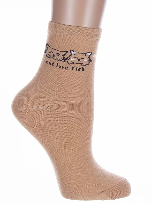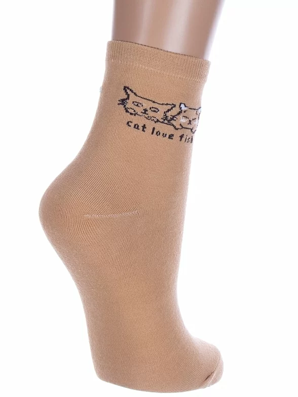 Круглогодичные укороченные женские носки, цвет коричневый, с принтом, состав: 75% хлопок, 23% полиамид, 2% эластан, арт. Нжх334-4. Производитель «Китай, страна бренда - Россия» под брендом «Hobby line».