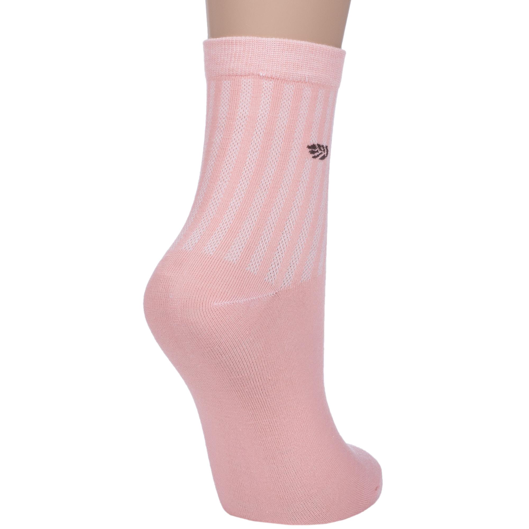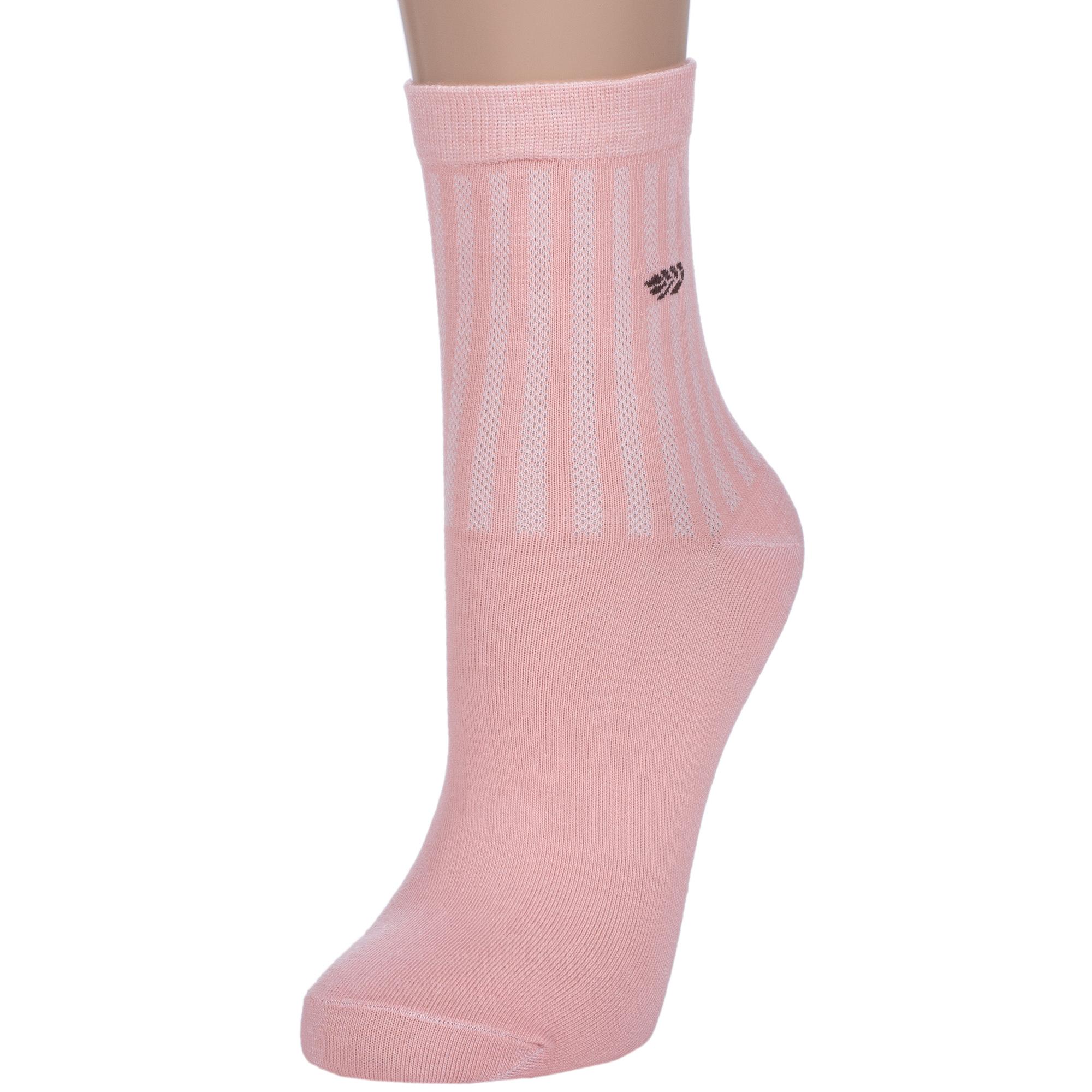 Летние или круглогодичные укороченные женские носки, цвет розовый, в сеточку, классические, шов обычный (не бесшовные), принт (рисунок): однотонный, небольшой рисунок, состав: 75% хлопок, 23% полиамид, 2% эластан, арт. Нжх334-2. Производитель «Китай, страна бренда - Россия» под брендом «Hobby line».