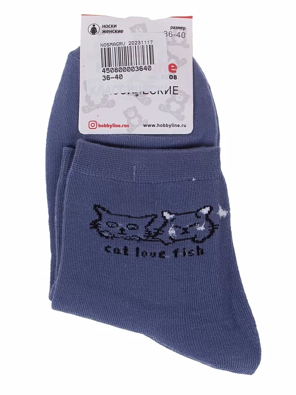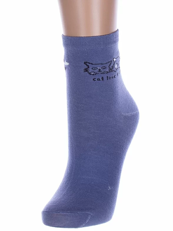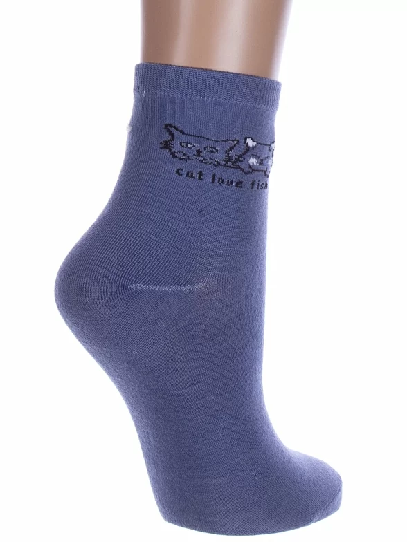 Круглогодичные укороченные женские носки, цвет джинс, с принтом, классические, состав: 75% хлопок, 23% полиамид, 2% эластан, арт. Нжх334-4 ВЫВОДИМ. Производитель «Китай, страна бренда - Россия» под брендом «Hobby line».