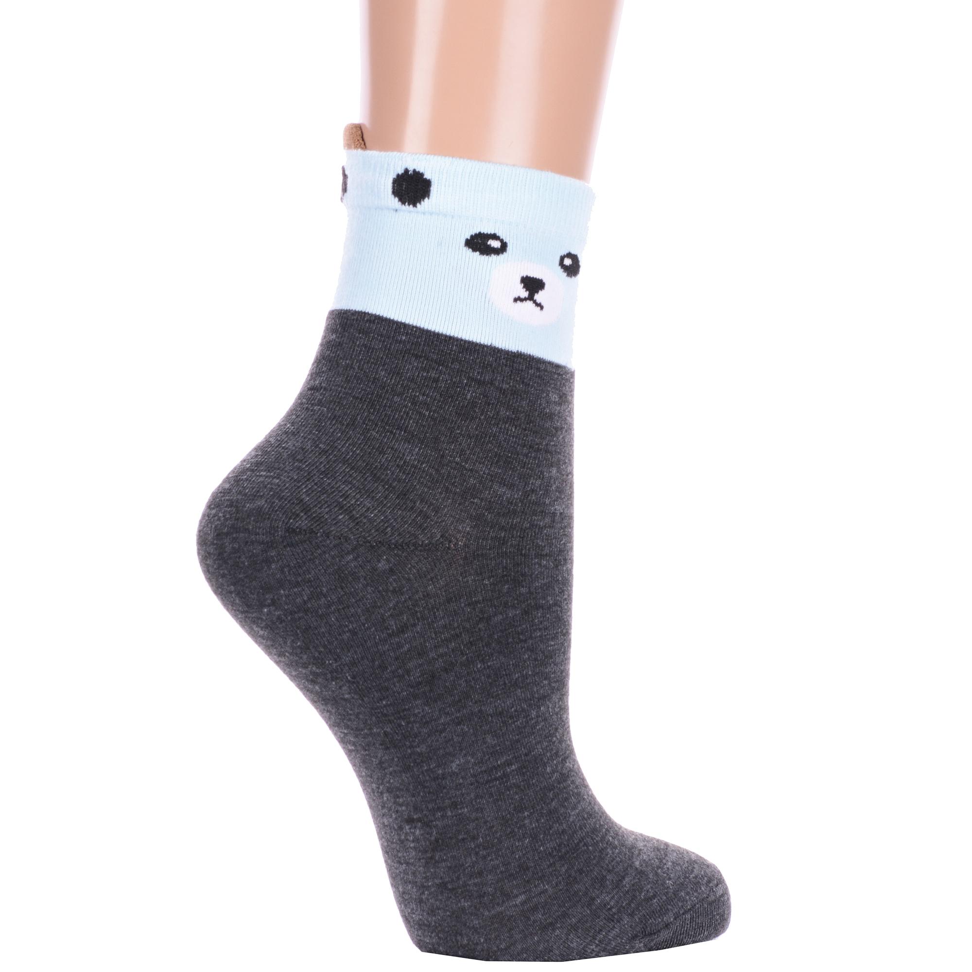 Круглогодичные укороченные женские носки, цвет темно-серый, повседневные, необычные, шов обычный (не бесшовные), принт (рисунок): животные, с узором, состав: 75% хлопок, 23% полиамид, 2% эластан, арт. Нж3Д83-4. Производитель «Китай, страна бренда - Россия» под брендом «Hobby line».