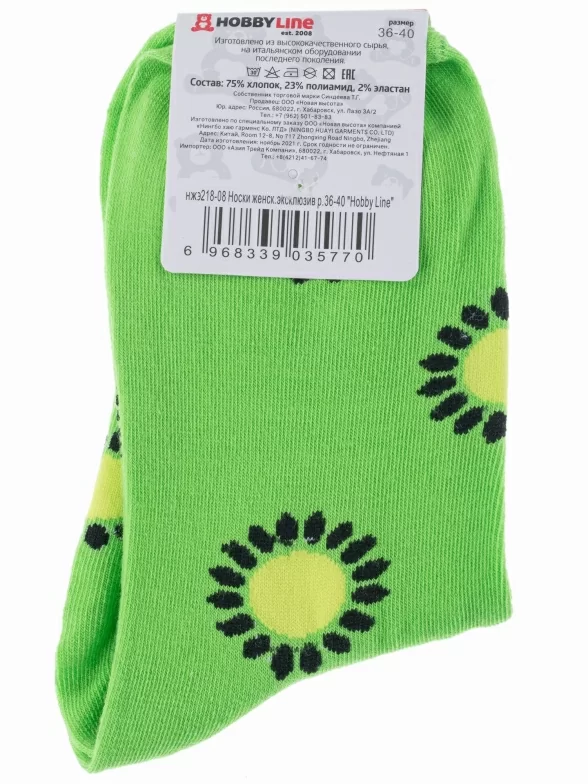 Женские носки Hobby Line, 218, рис. 08, ЗЕЛЕНЫЕ "Сочное киви"