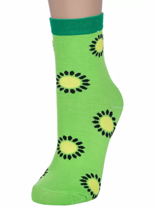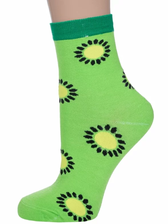 Круглогодичные средней длины женские носки, цвет салатовый-зеленый, повседневные, шов обычный (не бесшовные), принт (рисунок): овощи / фрукты / ягоды, еда и напитки, с узором, состав: 75% хлопок, 23% полиамид, 2% эластан, арт. 218. Производитель «Китай, страна бренда - Россия» под брендом «Hobby line».