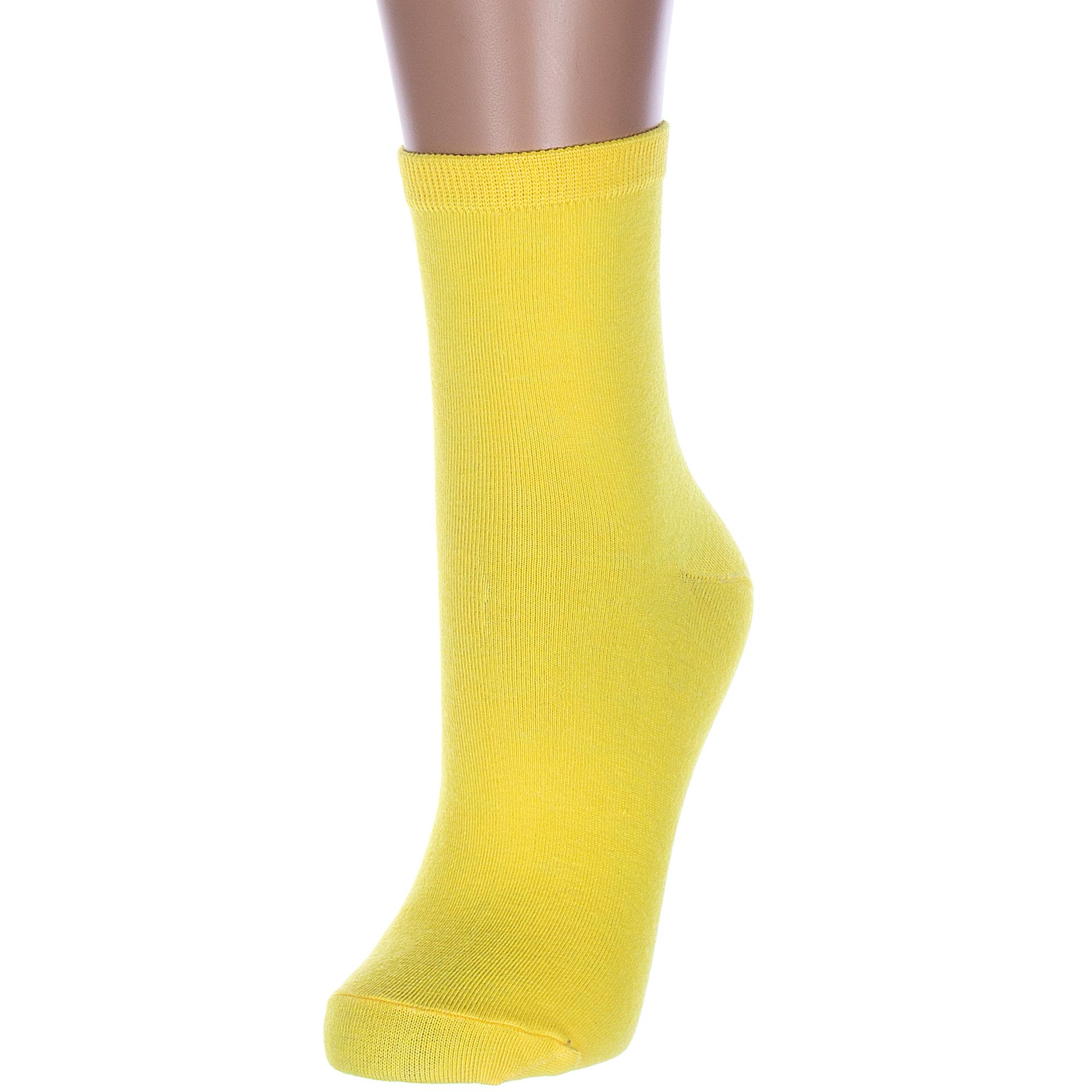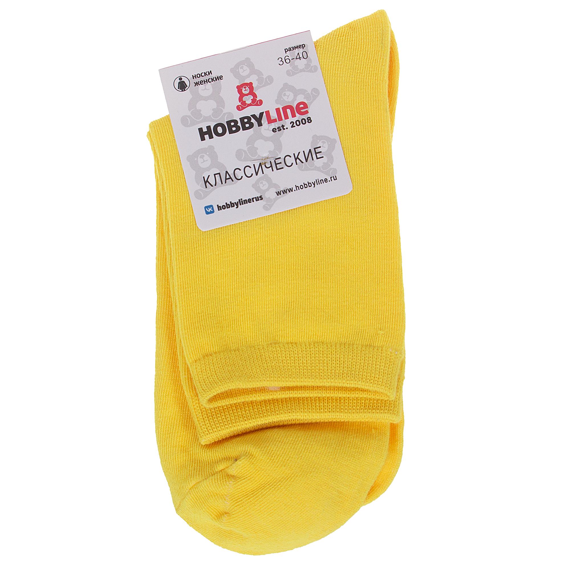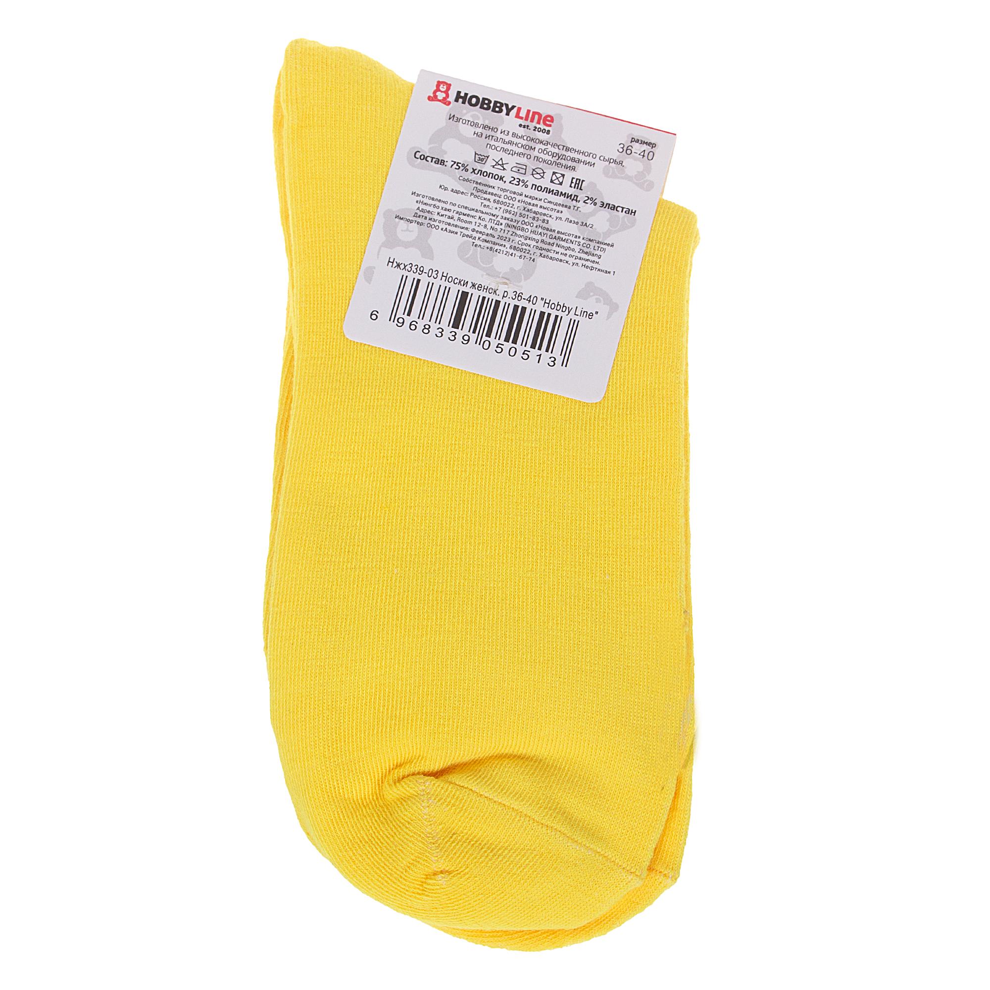 Круглогодичные укороченные женские носки, цвет желтый, классические, состав: 75% хлопок, 23% полиамид, 2% эластан, арт. Нжх339-03. Производитель «Китай, страна бренда - Россия» под брендом «Hobby line».