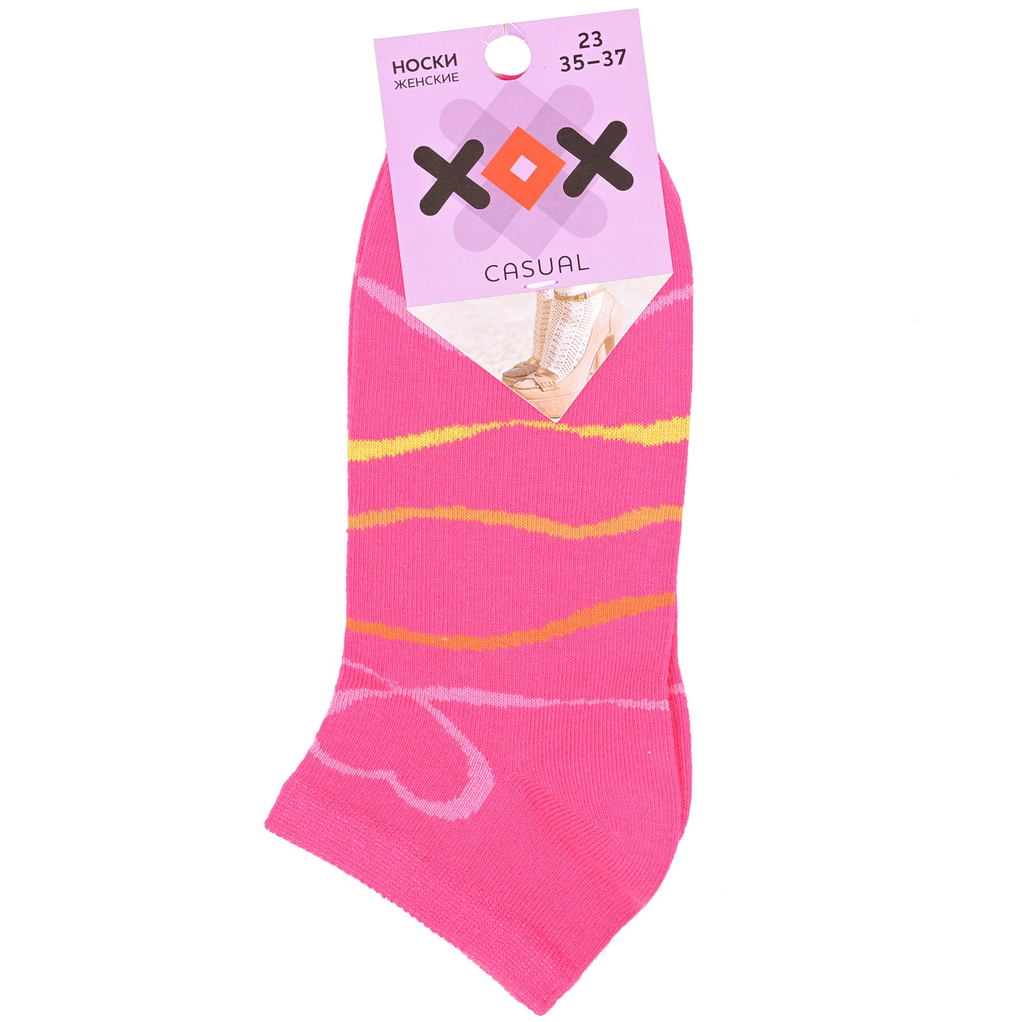Межсезонные или летние короткие женские носки, цвет розовый, повседневные, возможно бесшовные, принт (рисунок): с узором, состав: 80% хлопок, 15% полиамид, 5% эластан, арт. G-3R34. Производитель «ХОХ» Россия под брендом «Хох».