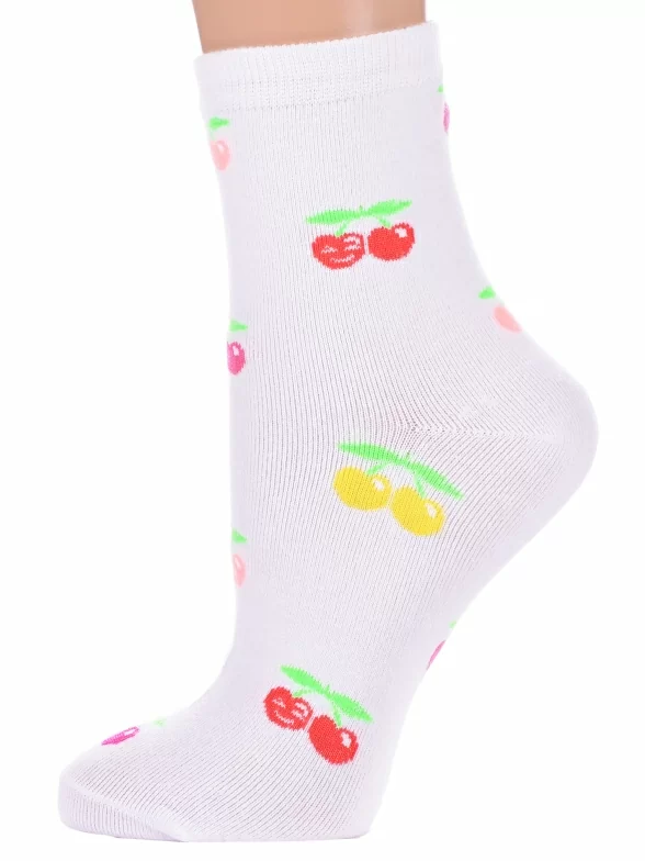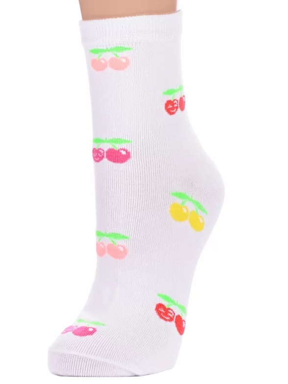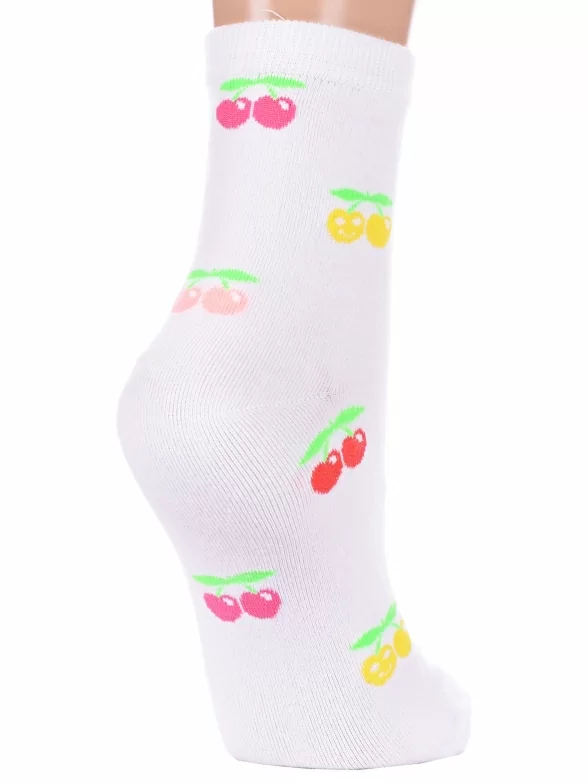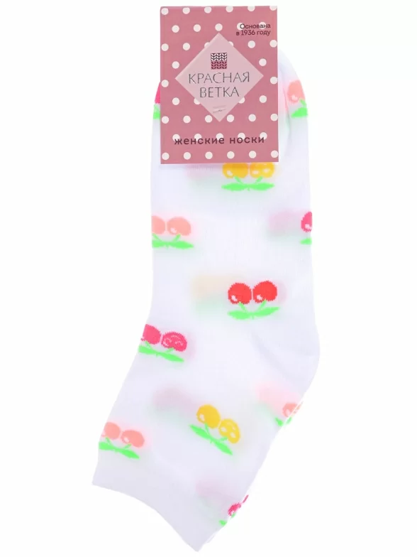 Круглогодичные укороченные женские носки, цвет белый, повседневные, возможно бесшовные, принт (рисунок): овощи / фрукты / ягоды, еда и напитки, с узором, состав: 62% хлопок, 24% полиамид, 9% полипропилен, 5% эластан, арт. С-1470. Производитель «КРАСНАЯ ВЕТКА» Россия под брендом «Красная ветка».