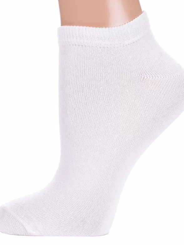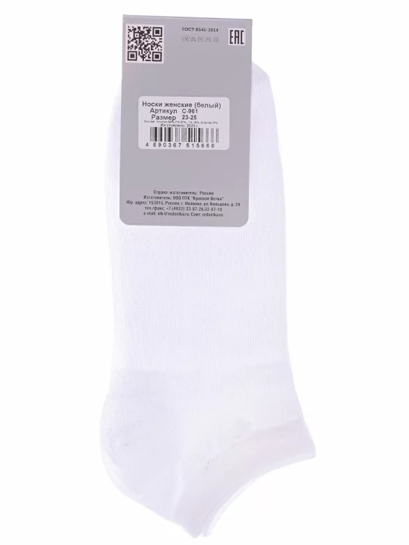 Межсезонные или летние короткие женские носки, цвет белый, классические, возможно бесшовные, принт (рисунок): однотонный, без рисунков/узоров, состав: 53% хлопок, 27% полиэстер, 15% полиамид, 5% эластан, арт. С-961. Производитель «КРАСНАЯ ВЕТКА» Россия под брендом «Красная ветка».