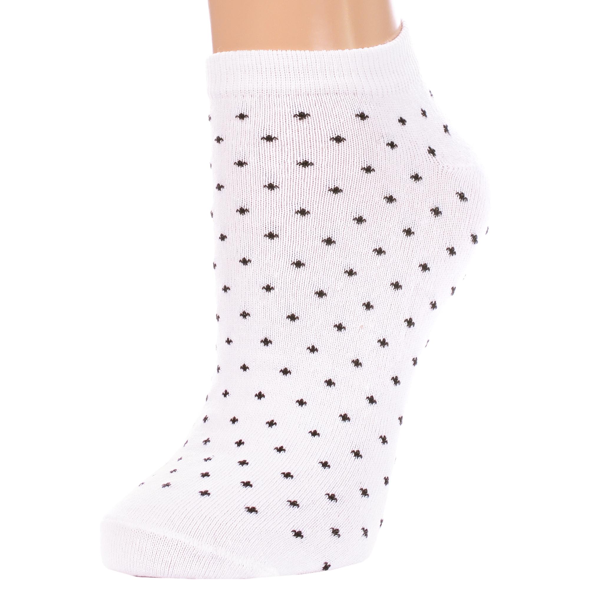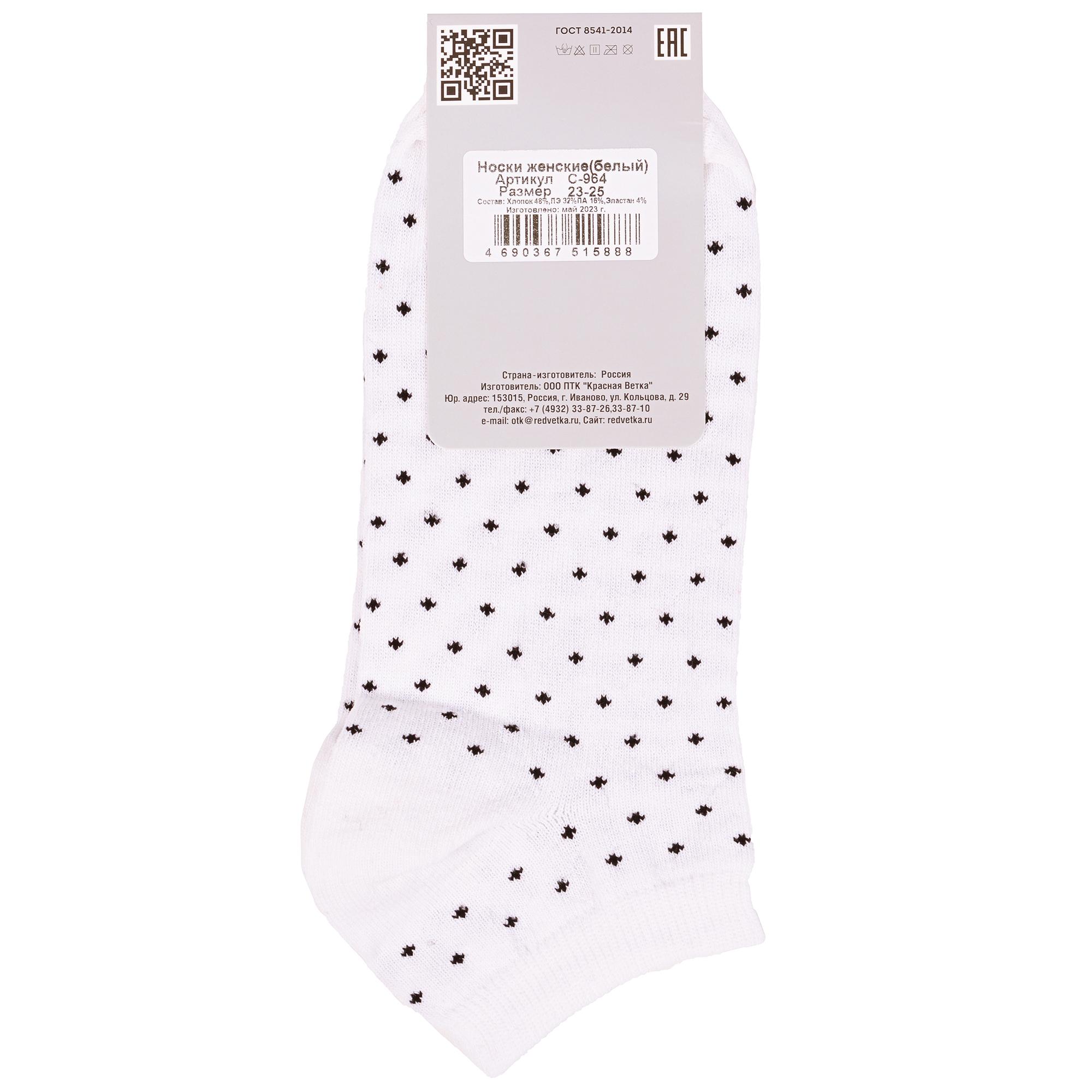 Межсезонные или летние короткие женские носки, цвет белый, классические, возможно бесшовные, принт (рисунок): мелкий принт, с узором, состав: 48% хлопок, 32% полиэстер, 16% полиамид, 4% эластан, арт. С-964. Производитель «КРАСНАЯ ВЕТКА» Россия под брендом «Красная ветка».