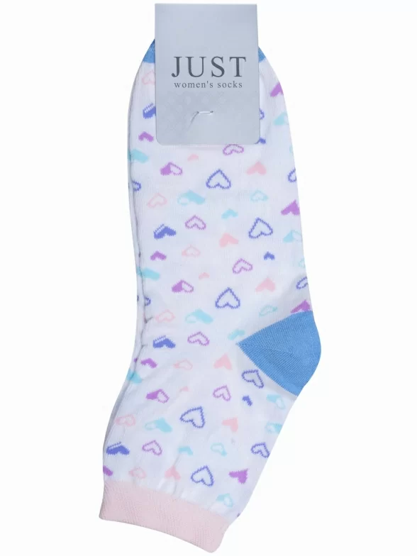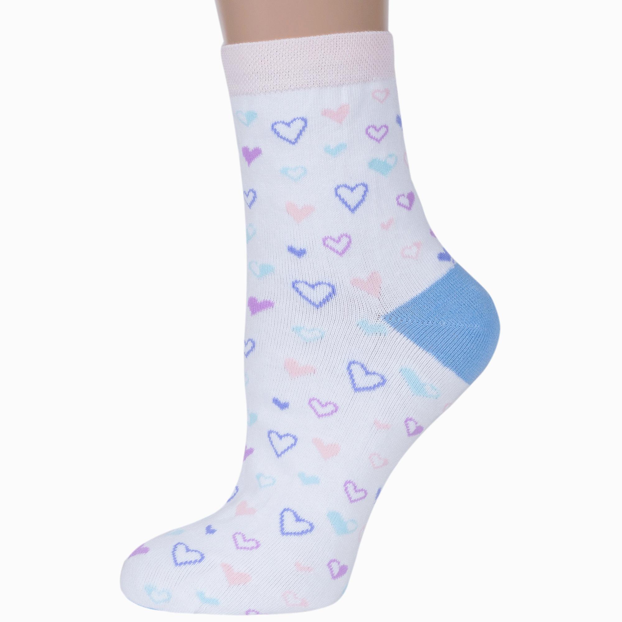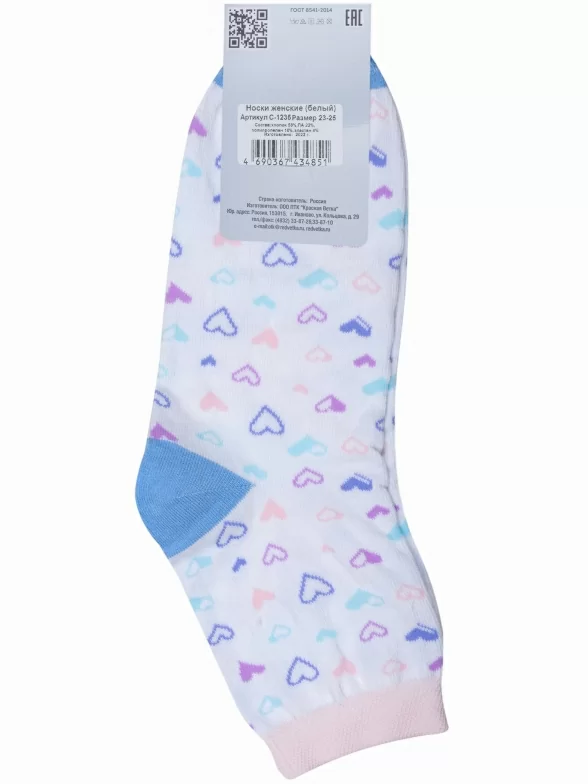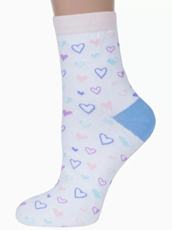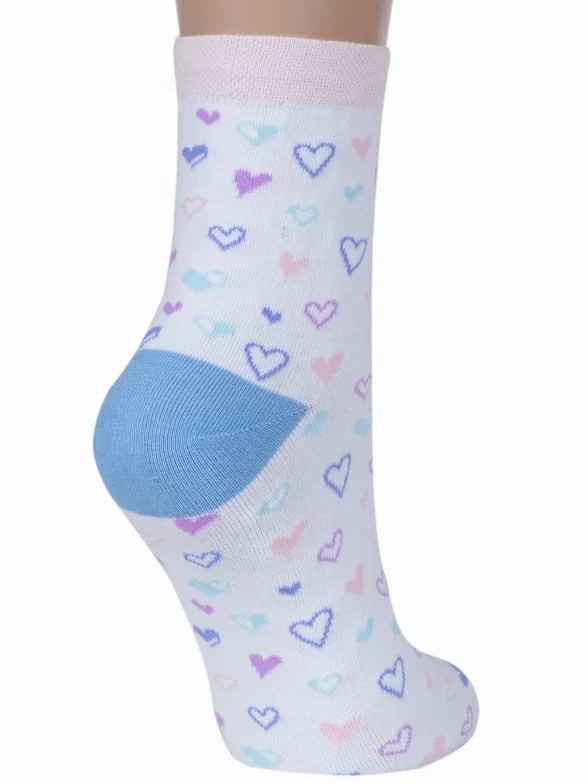 Круглогодичные укороченные женские носки, цвет белый, повседневные, возможно бесшовные, принт (рисунок): сердечки / поцелуи / любовь, с узором, состав: 71% хлопок, 25% полиамид, 4% эластан, арт. С-1235. Производитель «КРАСНАЯ ВЕТКА» Россия под брендом «Красная ветка».