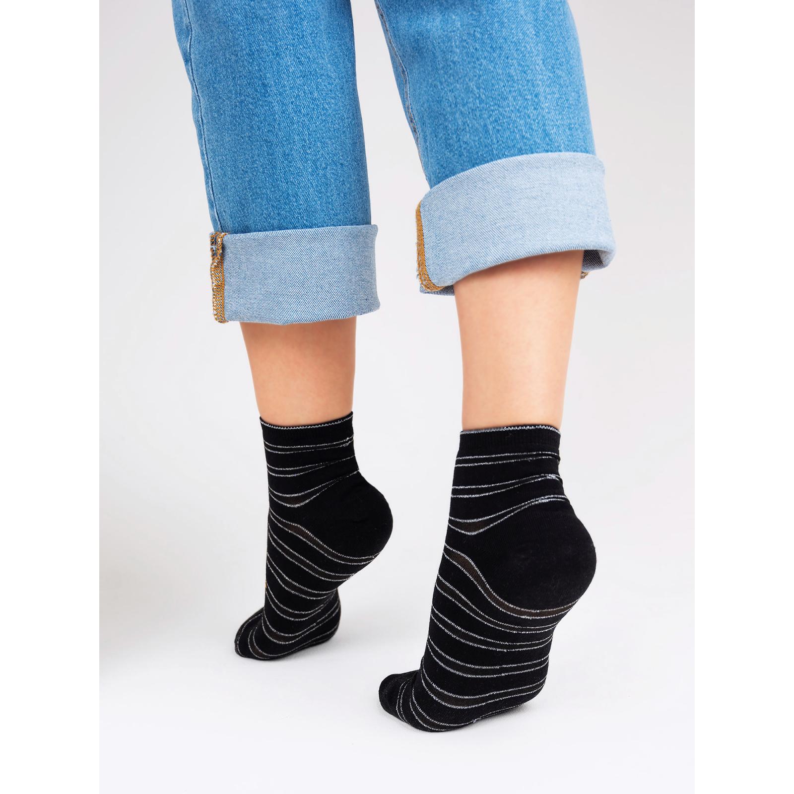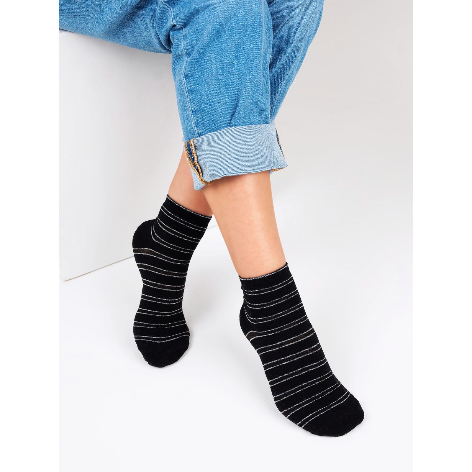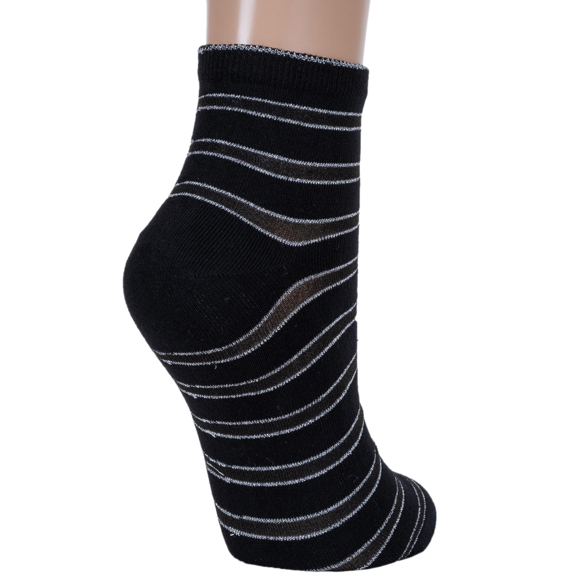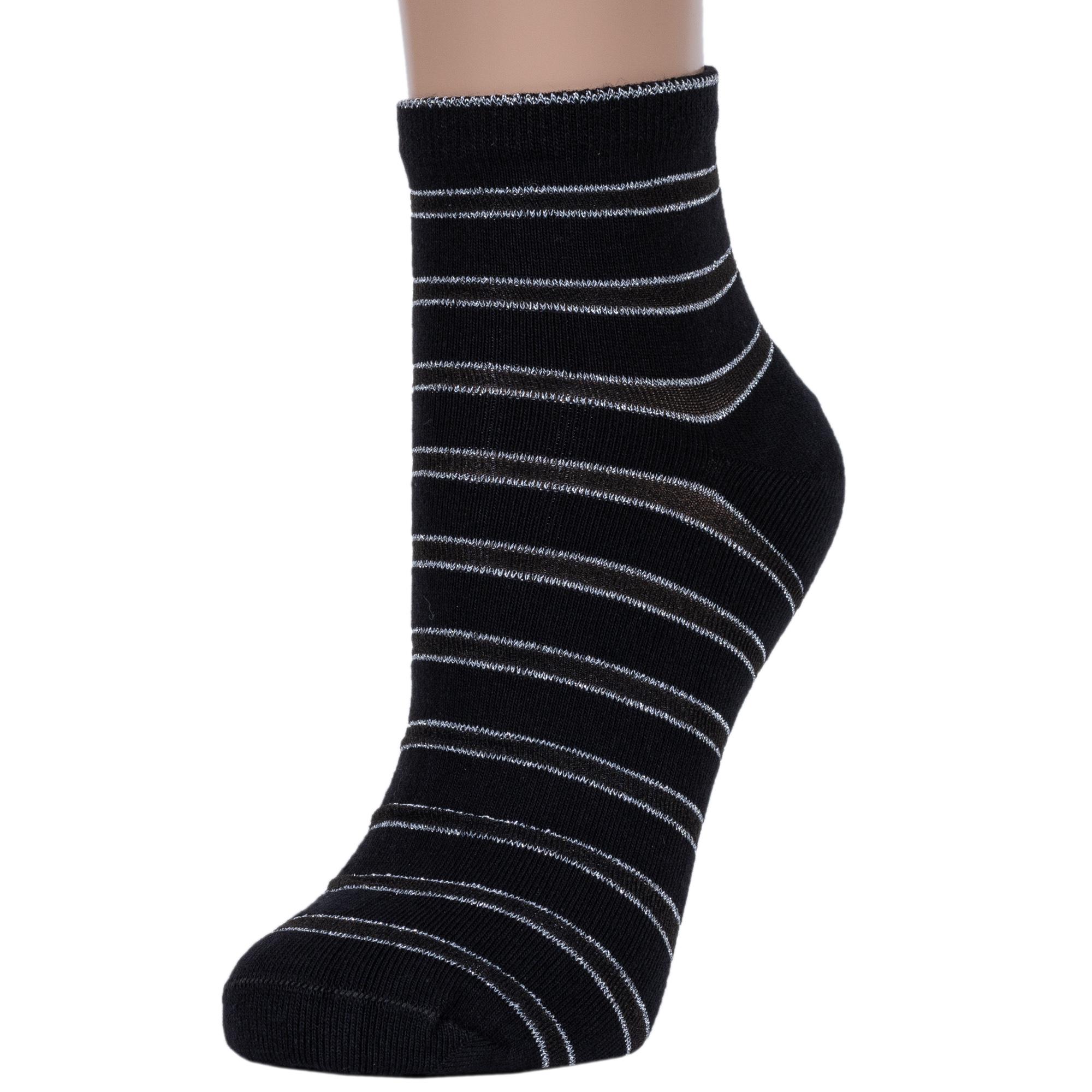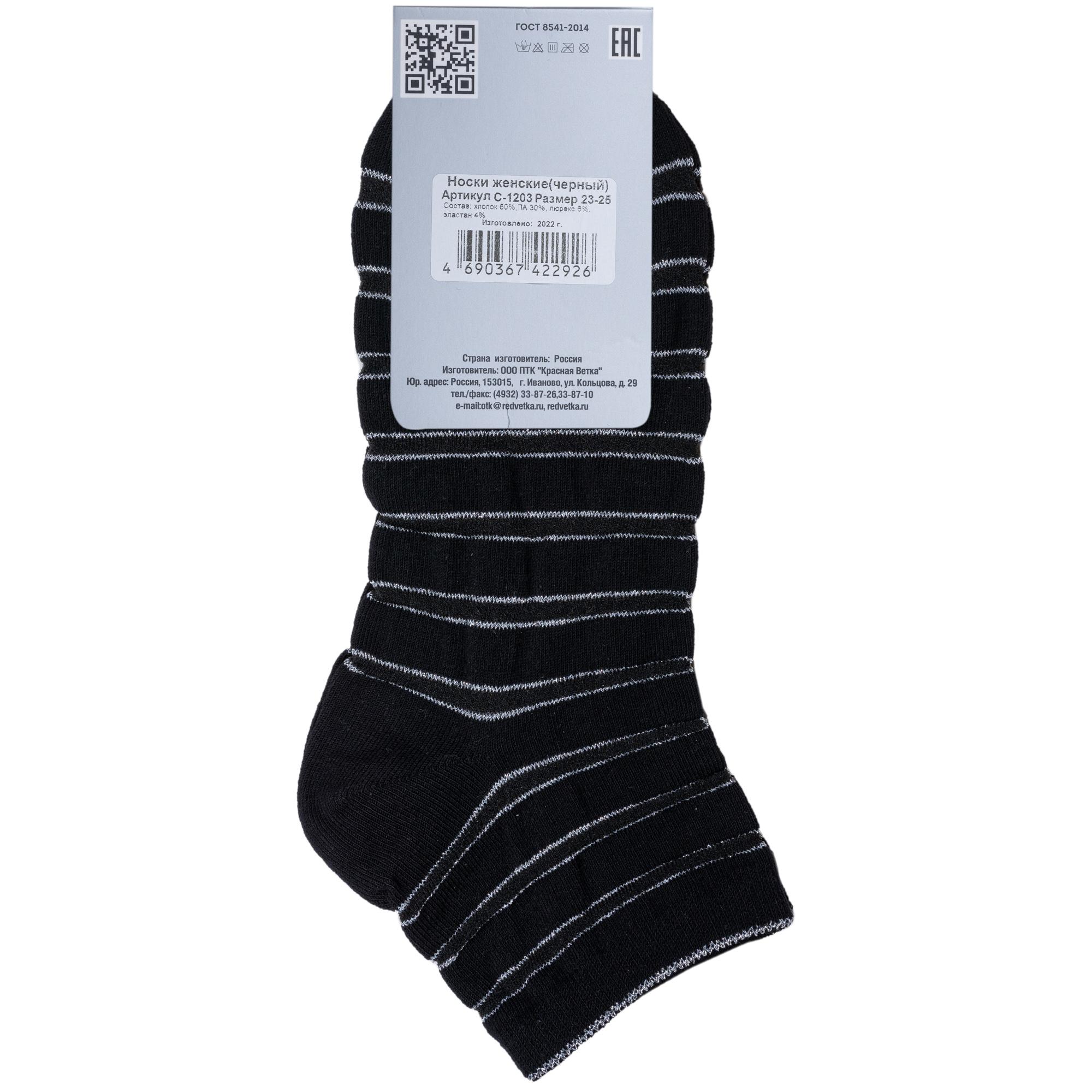 Круглогодичные или летние укороченные женские носки, цвет черный, капроновые, классические, возможно бесшовные, принт (рисунок): прозрачные вставки (или имитация), полоски, блеск люрекса, с узором, состав: 60% хлопок, 30% полиамид, 6% люрекс, 4% эластан, арт. С-1203. Производитель «КРАСНАЯ ВЕТКА» Россия под брендом «Красная ветка».