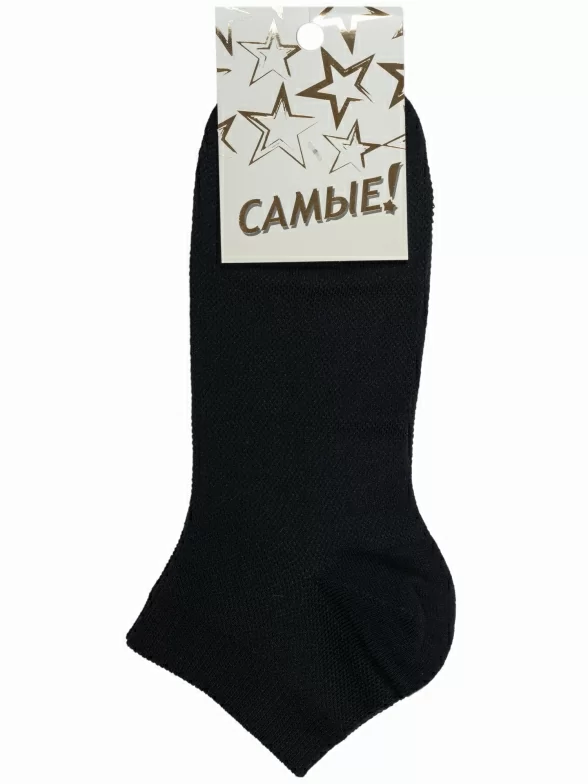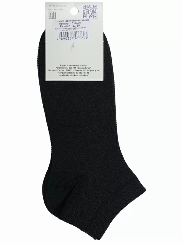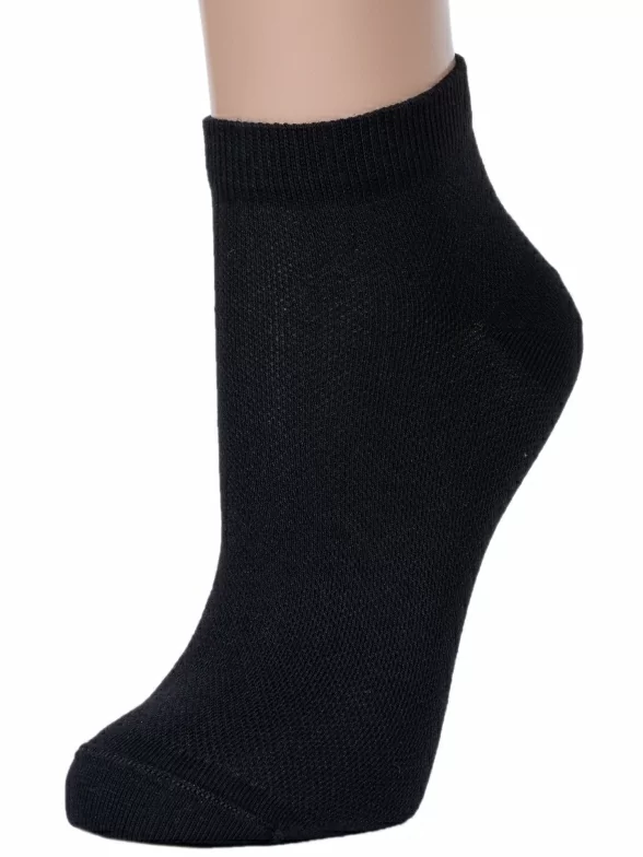 Летние укороченные женские носки, цвет черный, в сеточку, спортивные, классические, возможно бесшовные, принт (рисунок): однотонный, состав: 65% хлопок, 29% полиэстер, 6% эластан, арт. С-1492. Производитель «КРАСНАЯ ВЕТКА» Россия под брендом «Красная ветка».