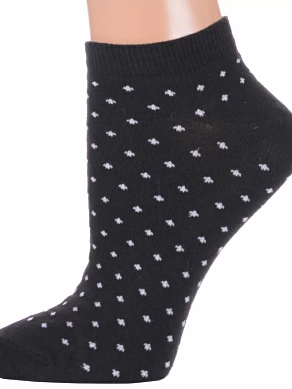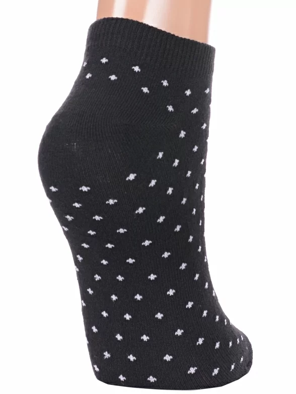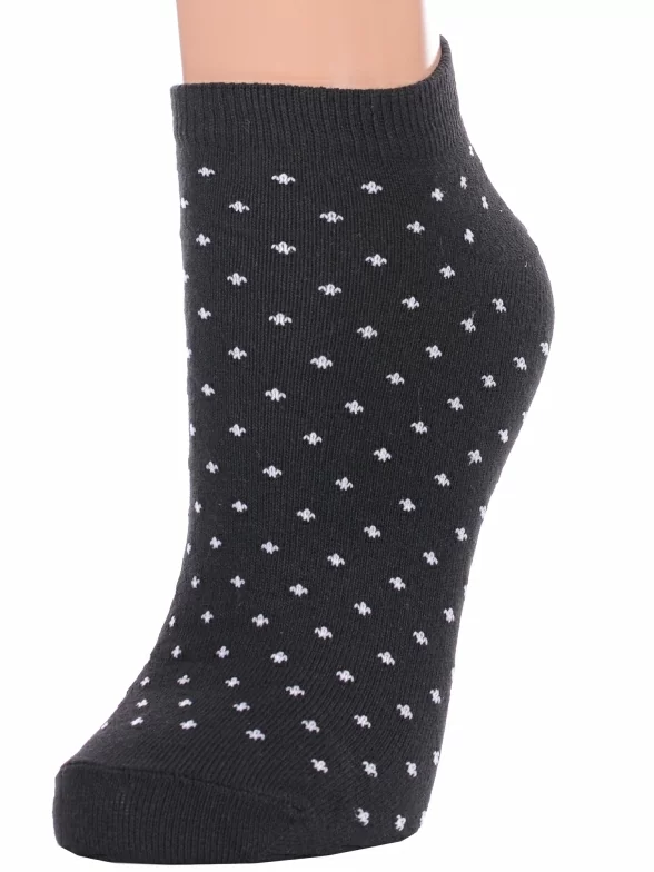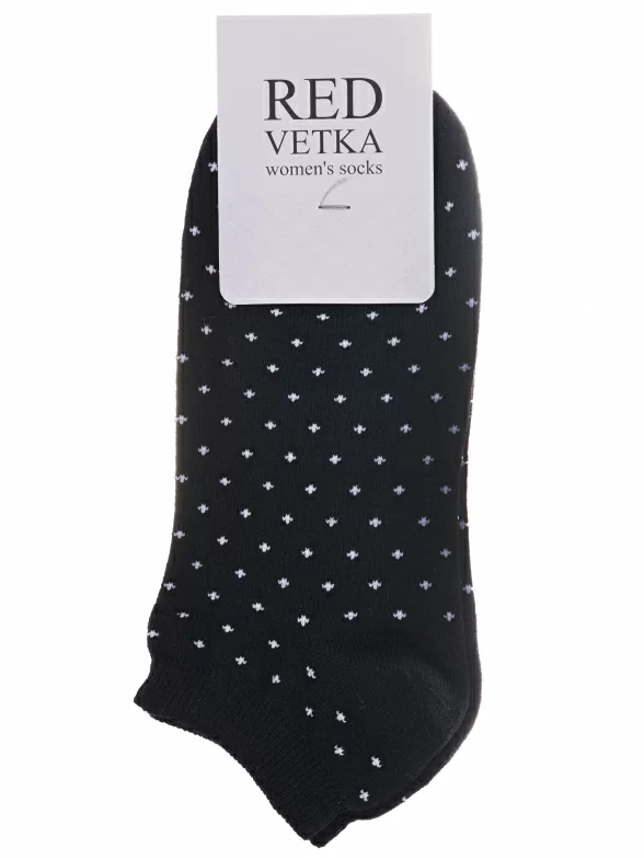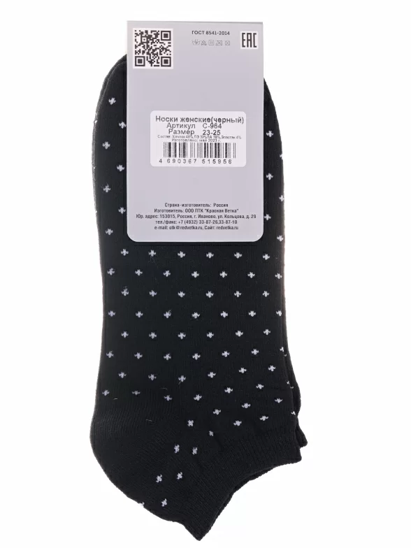 Межсезонные или летние короткие женские носки, цвет черный, классические, возможно бесшовные, принт (рисунок): мелкий принт, с узором, состав: 48% хлопок, 32% полиэстер, 16% полиамид, 4% эластан, арт. С-964. Производитель «КРАСНАЯ ВЕТКА» Россия под брендом «Красная ветка».