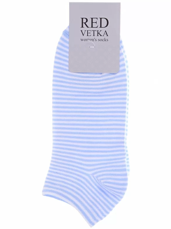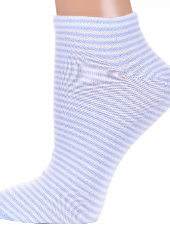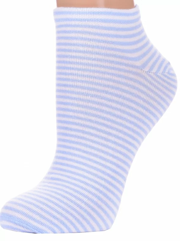 Межсезонные или летние короткие женские носки, цвет голубой-белый, классические, возможно бесшовные, принт (рисунок): полоски, с узором, состав: 74% хлопок, 21% полиамид, 5% эластан, арт. С-1400. Производитель «КРАСНАЯ ВЕТКА» Россия под брендом «Красная ветка».