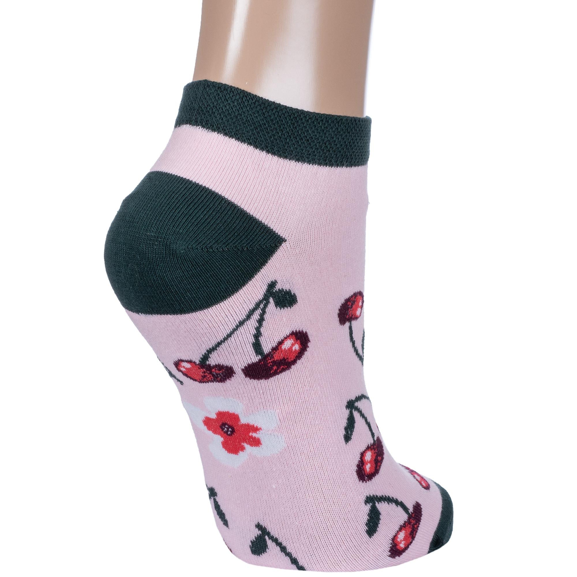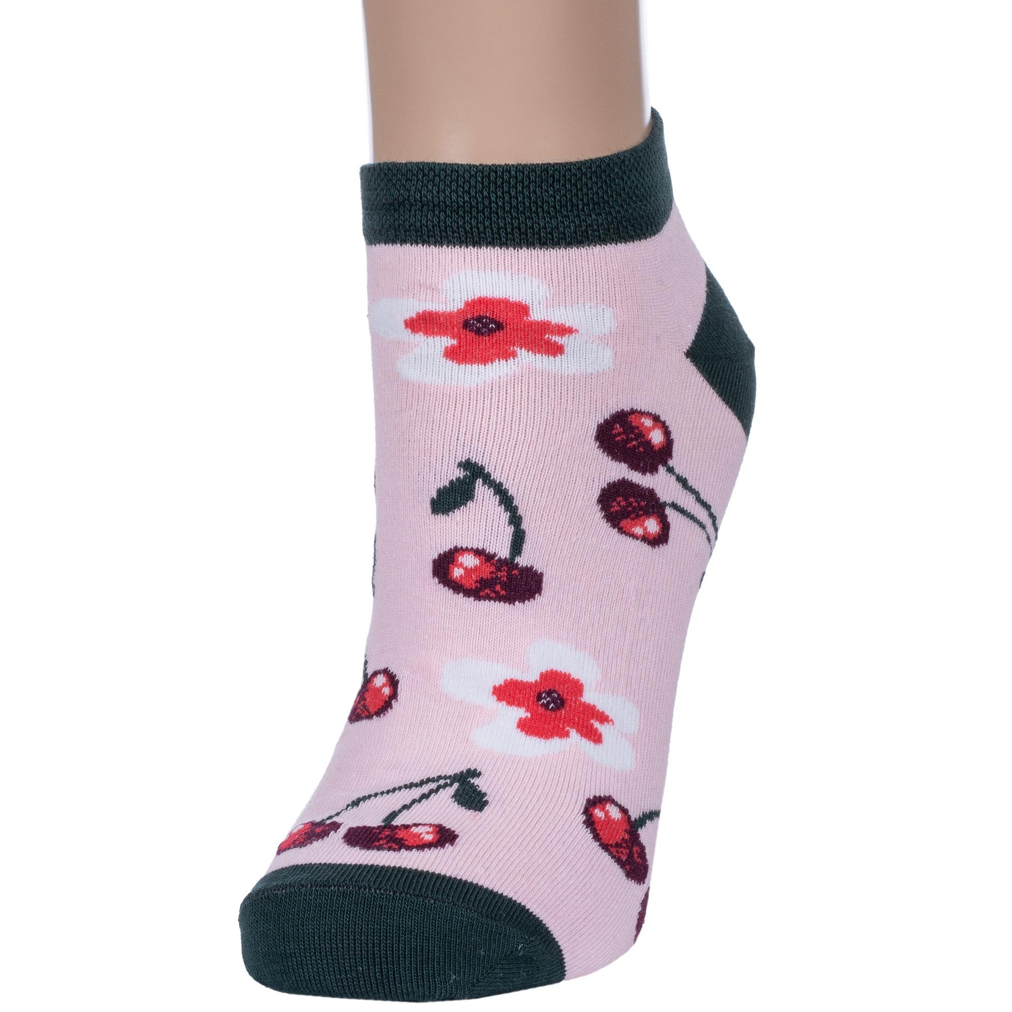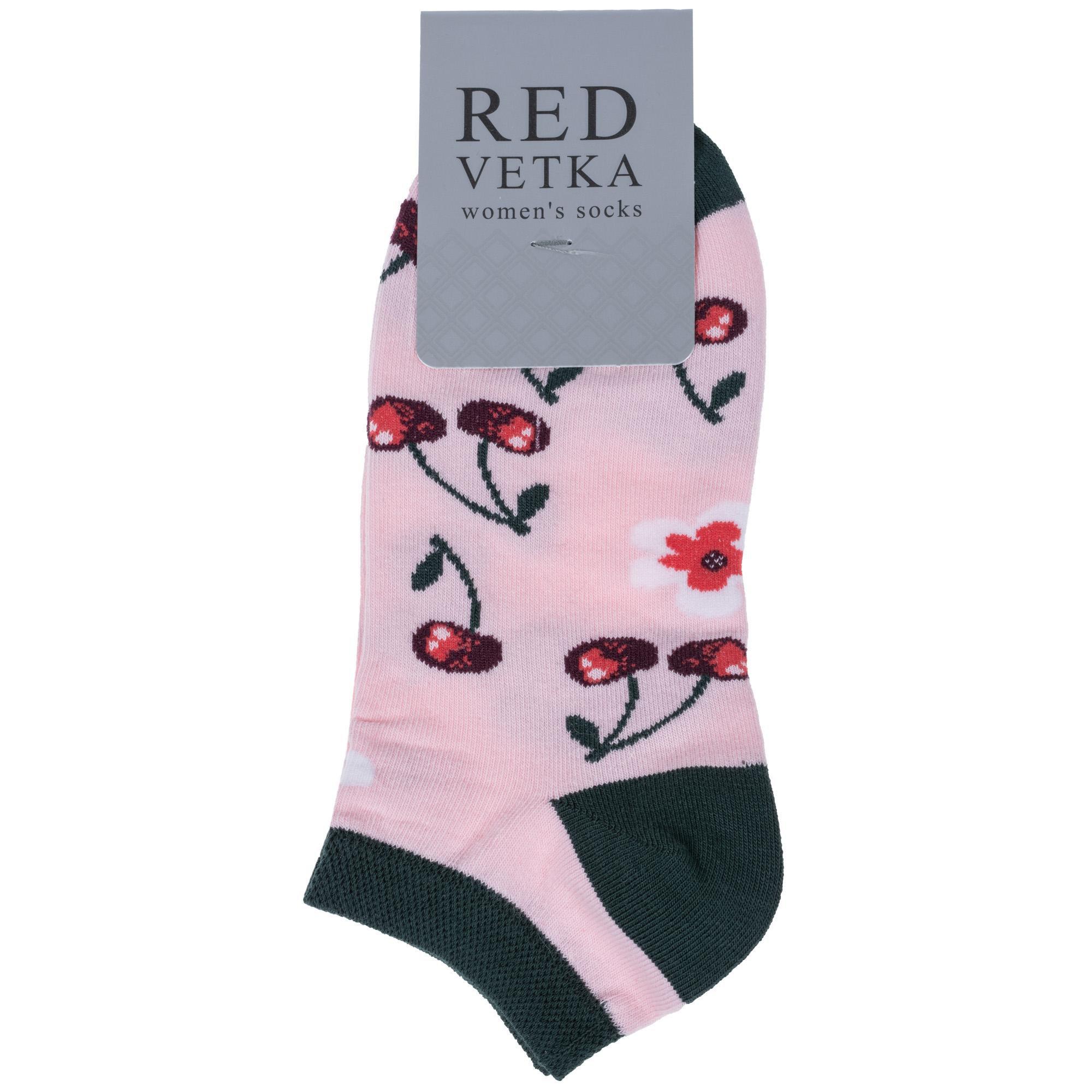 Межсезонные или летние короткие женские носки, цвет розовый, повседневные, возможно бесшовные, принт (рисунок): овощи / фрукты / ягоды, контрастные пятка / мысок / резинка, с узором, состав: 62% хлопок, 19% полиамид, 15% полипропилен, 4% эластан, арт. С-1251. Производитель «КРАСНАЯ ВЕТКА» Россия под брендом «Красная ветка».