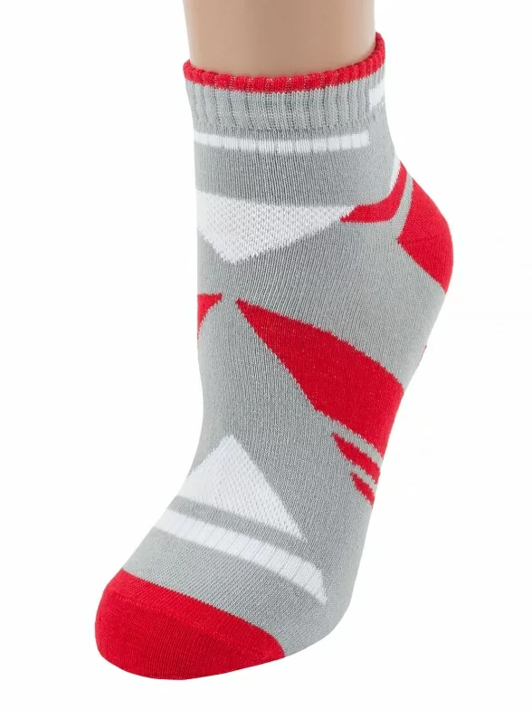Спортивные женские укороченные носки Красная ветка. Изготовлены из хлопка, с добавлением полиамида и эластана. Отлично сочетаются с повседневной одеждой. Особенность модели - яркая геометрическая расцветка.