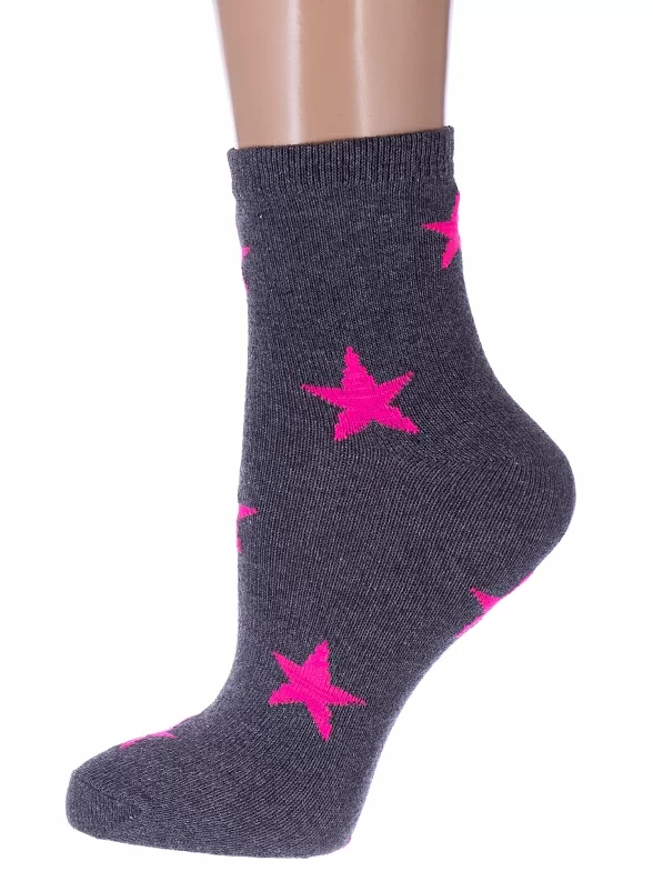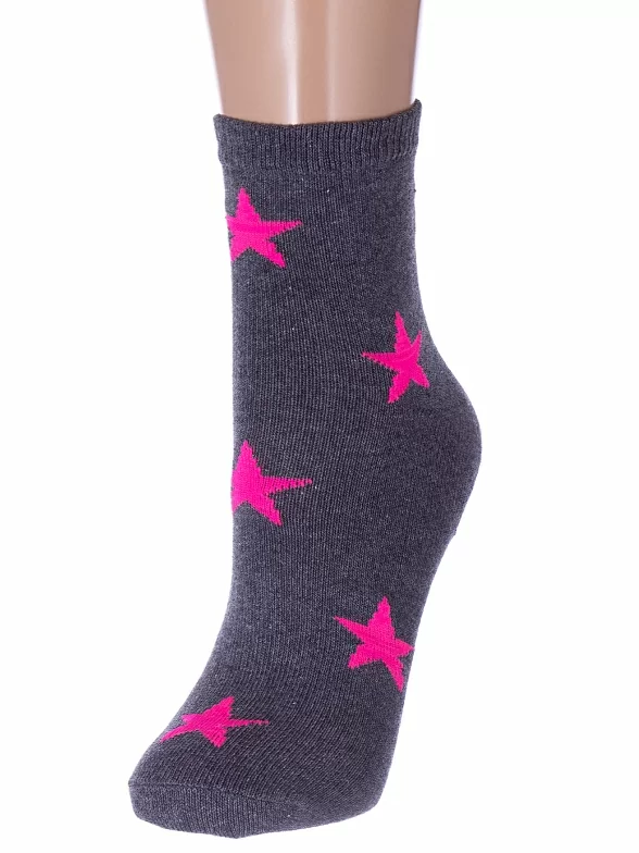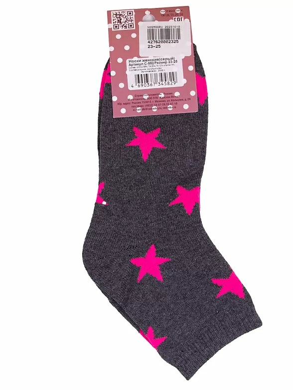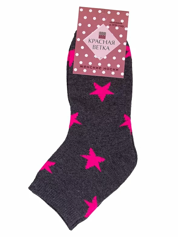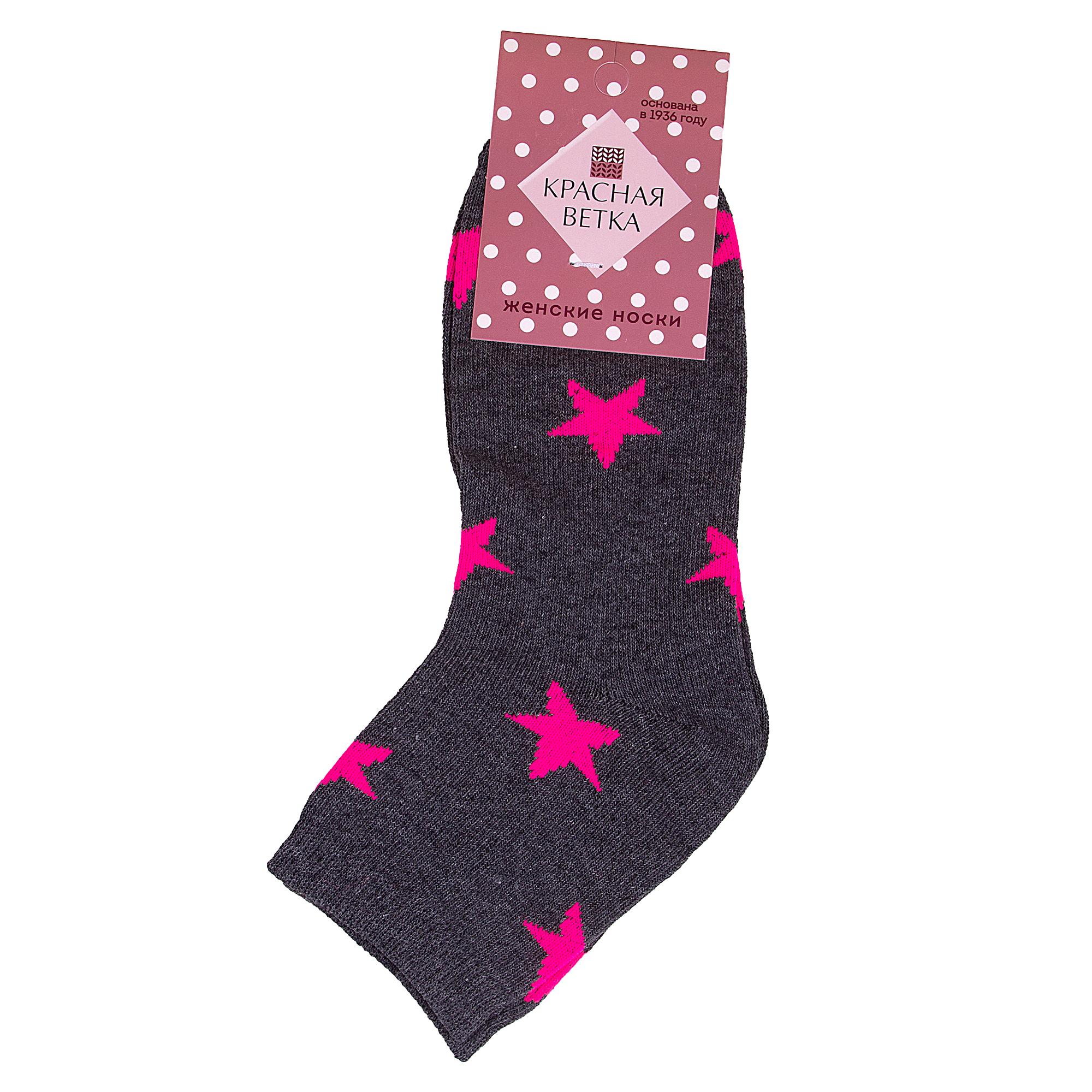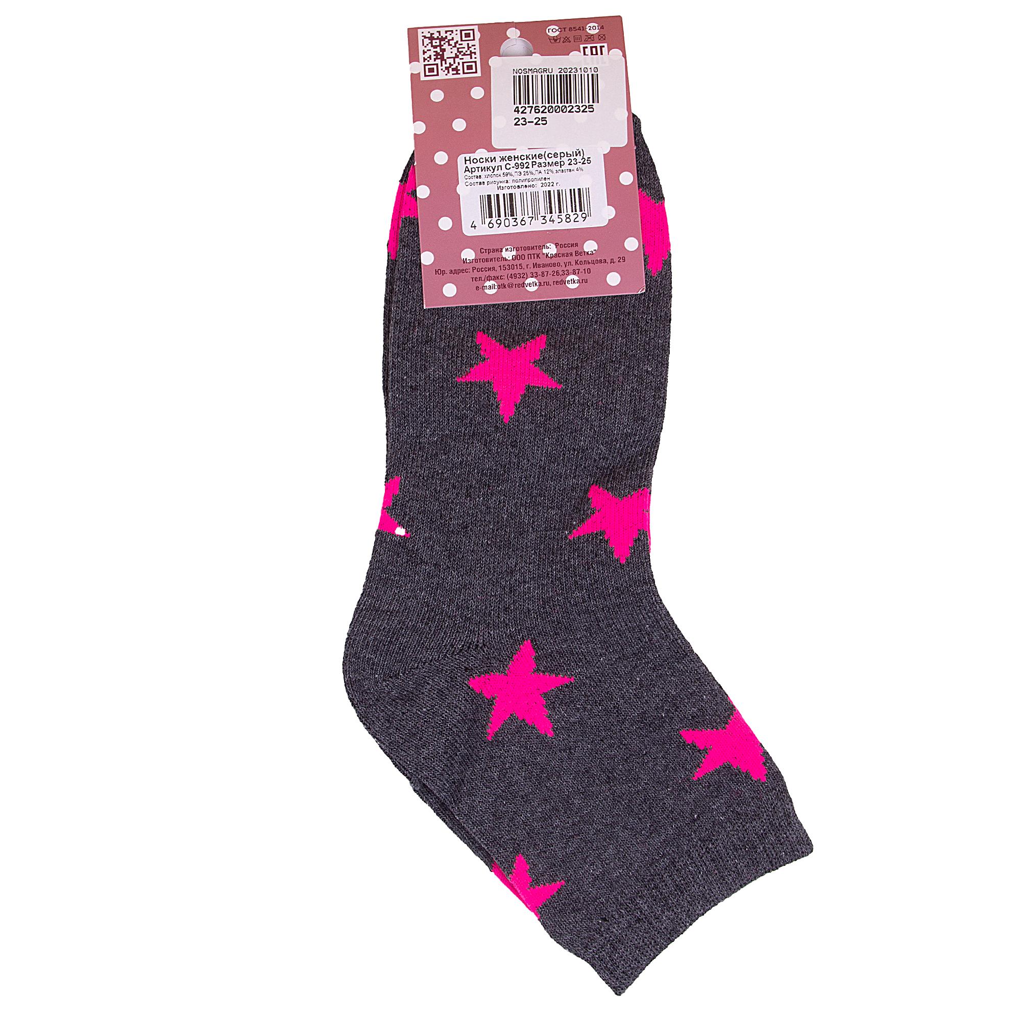 Круглогодичные укороченные женские носки, цвет серый, с принтом, состав: 59% хлопок, 25% полиэстер, 12% полиамид, 4% эластан (рисунок из полипропилена), арт. С-992. Производитель «КРАСНАЯ ВЕТКА» Россия под брендом «Красная ветка».
