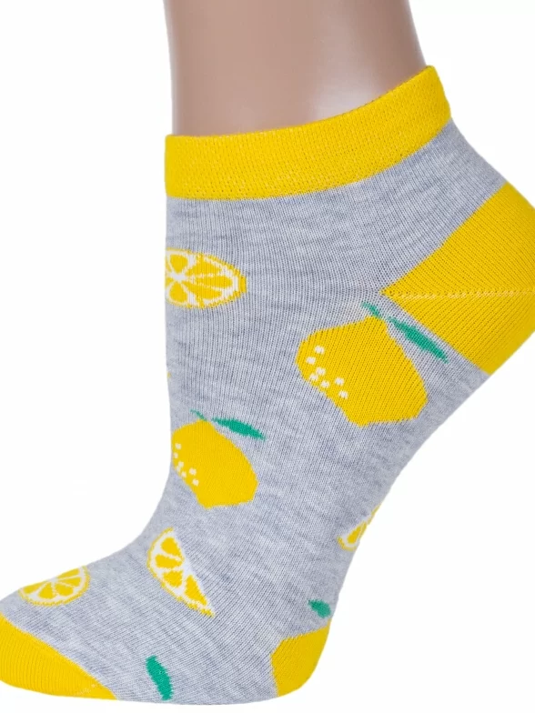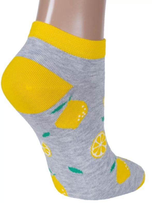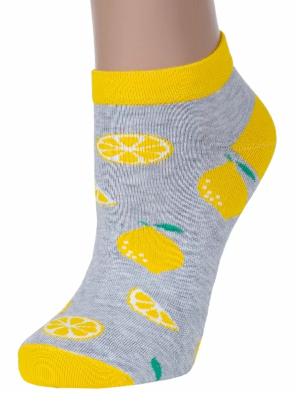 Круглогодичные короткие женские носки, цвет светло-серый, повседневные, возможно бесшовные, принт (рисунок): овощи / фрукты / ягоды, еда и напитки, с узором, состав: 71% хлопок, 20% полиамид, 5% полипропилен, 4% эластан, арт. С-1243. Производитель «КРАСНАЯ ВЕТКА» Россия под брендом «Красная ветка».