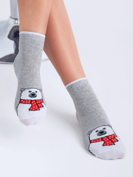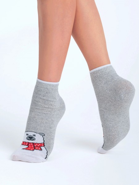 Круглогодичные короткие женские носки, цвет светло-серый, возможно бесшовные, принт (рисунок): фрукты / овощи / ягоды, еда / напитки, с узором, состав: 71% хлопок, 20% полиамид, 5% полипропилен, 4% эластан, арт. С-1243. Производитель «КРАСНАЯ ВЕТКА» Россия под брендом «Красная ветка».