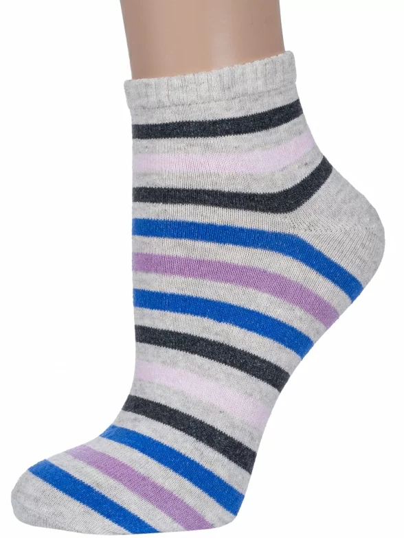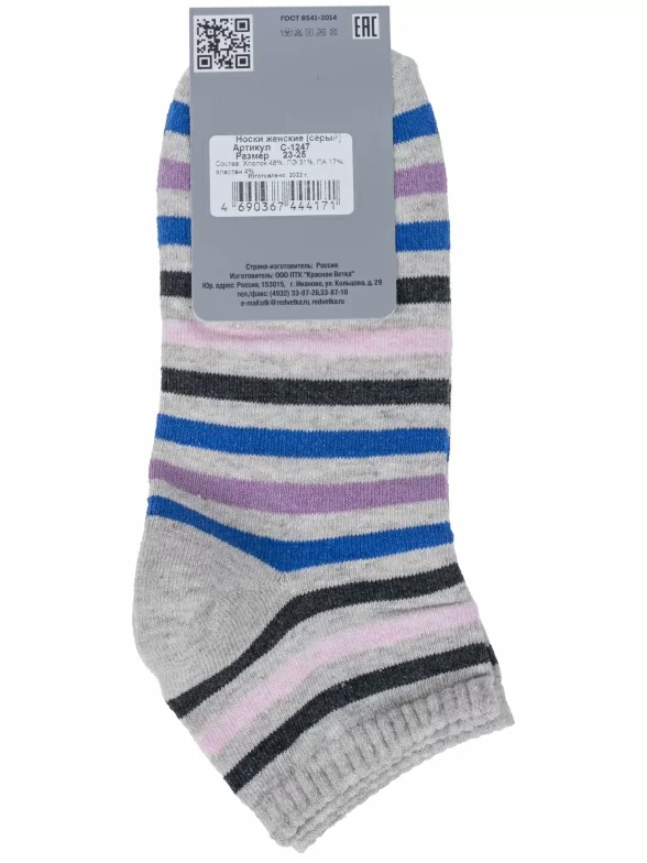 Межсезонные или летние короткие женские носки, цвет серый, классические, возможно бесшовные, принт (рисунок): полоски, с узором, состав: 48% хлопок, 31% полиэстер, 17% полиамид, 4% эластан, арт. С-1247. Производитель «КРАСНАЯ ВЕТКА» Россия под брендом «Красная ветка».