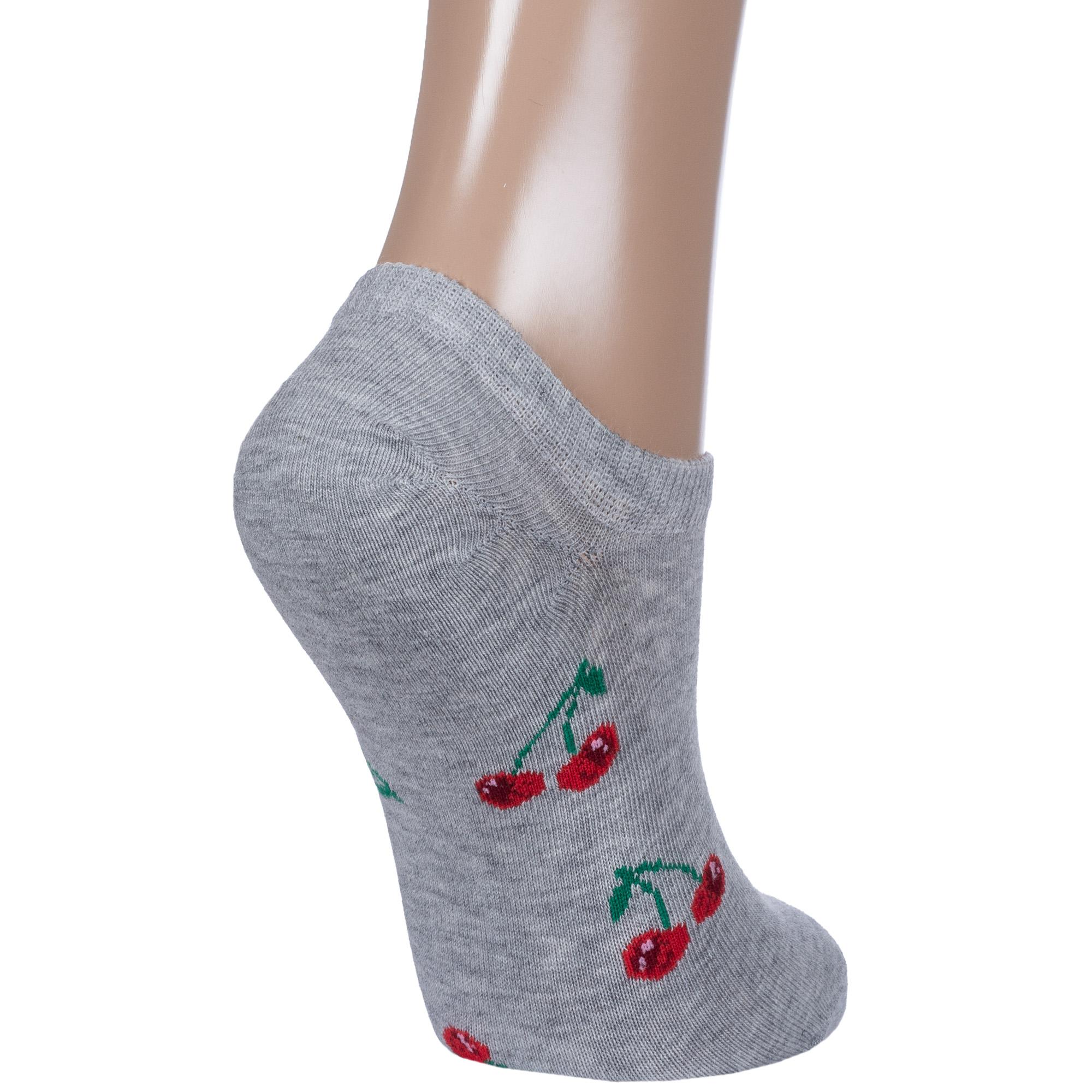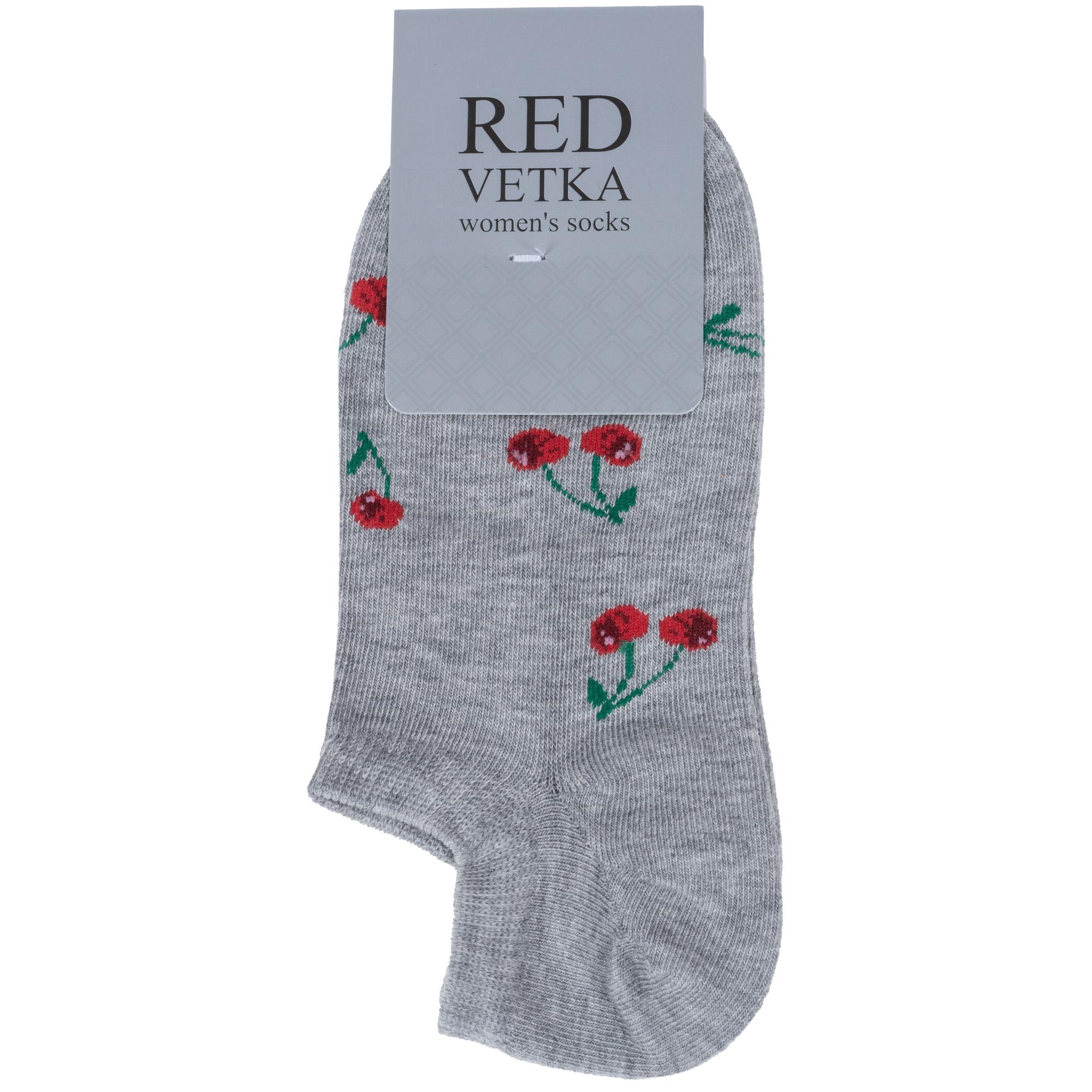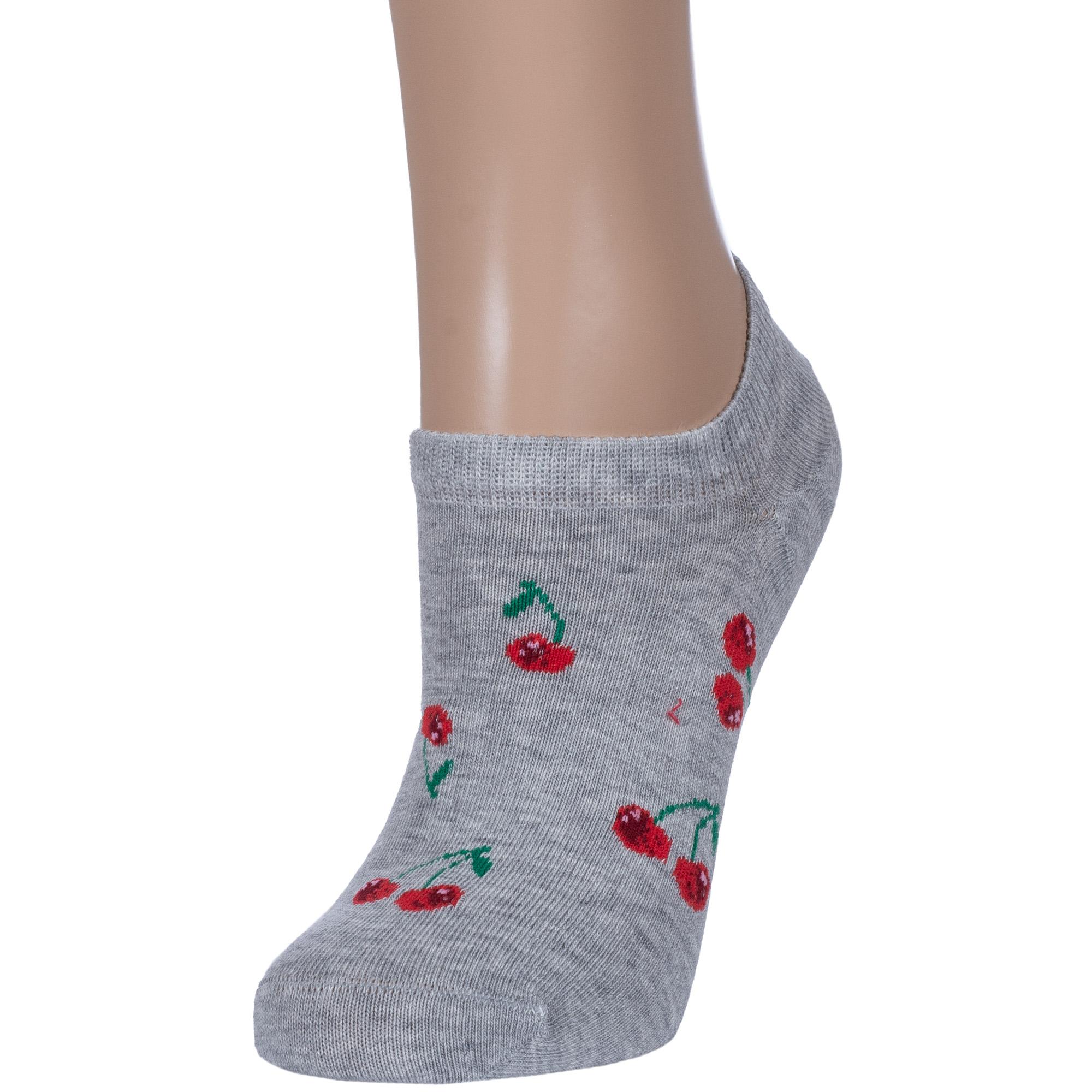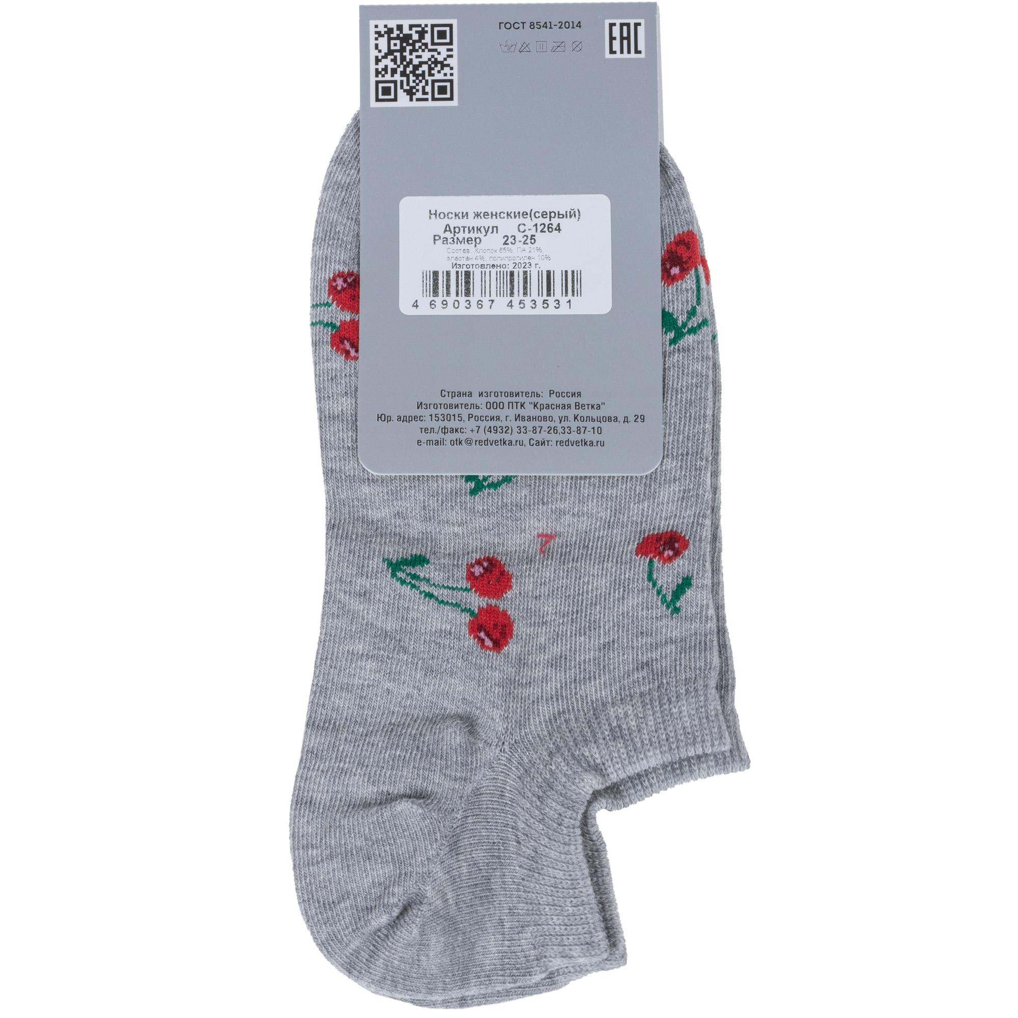 Летние ультракороткие женские носки, цвет серый, повседневные, возможно бесшовные, принт (рисунок): овощи / фрукты / ягоды, с узором, состав: 65% хлопок, 21% полиамид, 10% полипропилен, 4% эластан, арт. С-1264. Производитель «КРАСНАЯ ВЕТКА» Россия под брендом «Красная ветка».