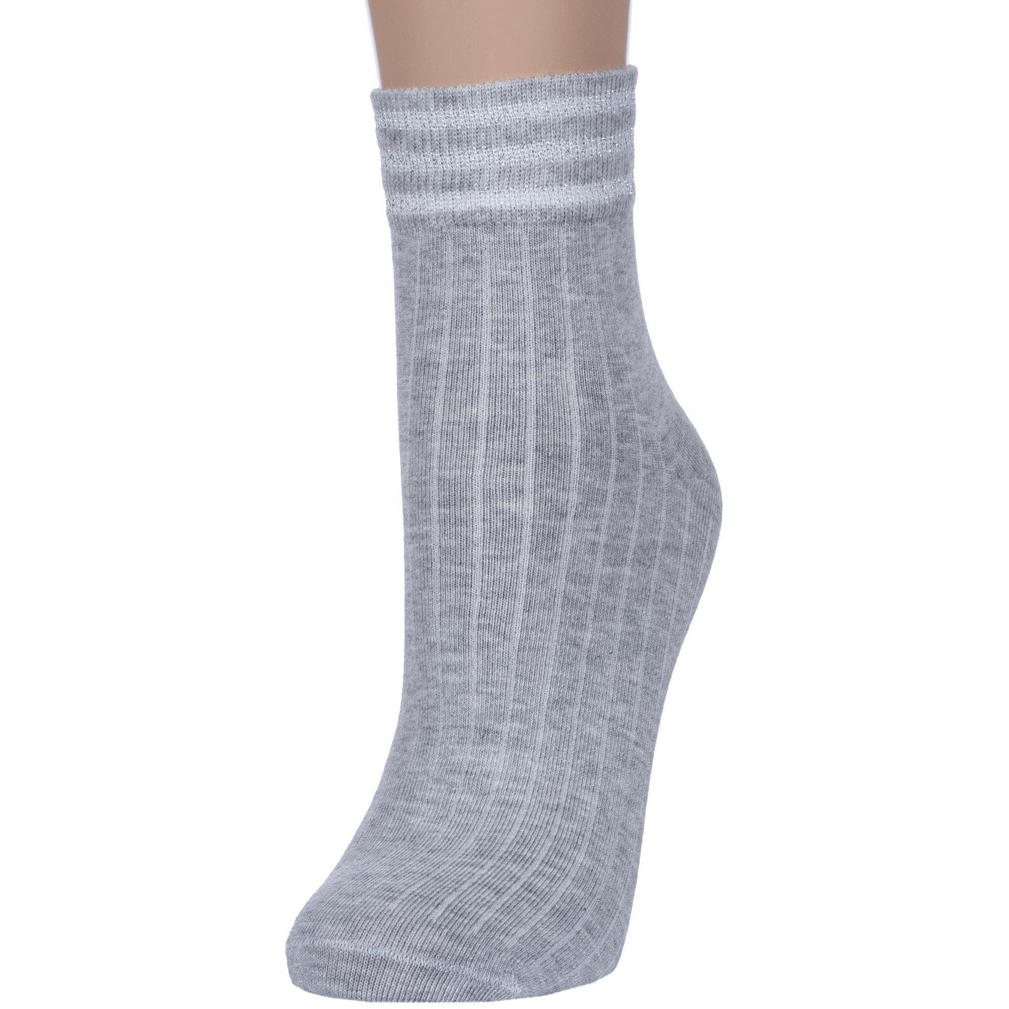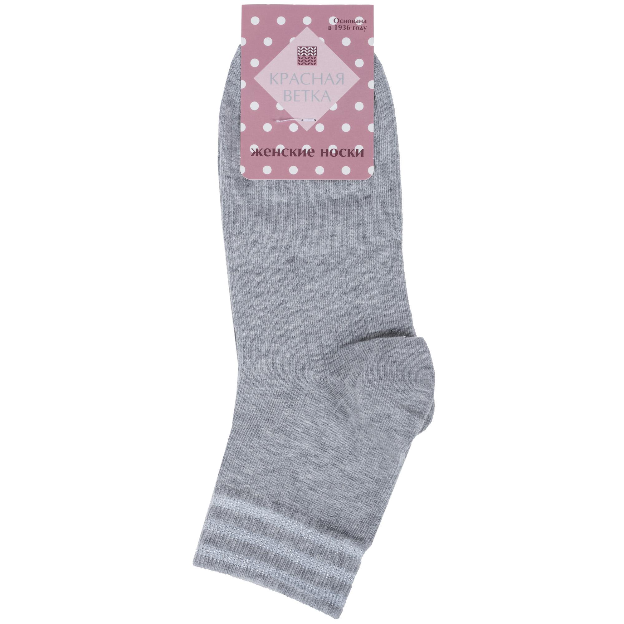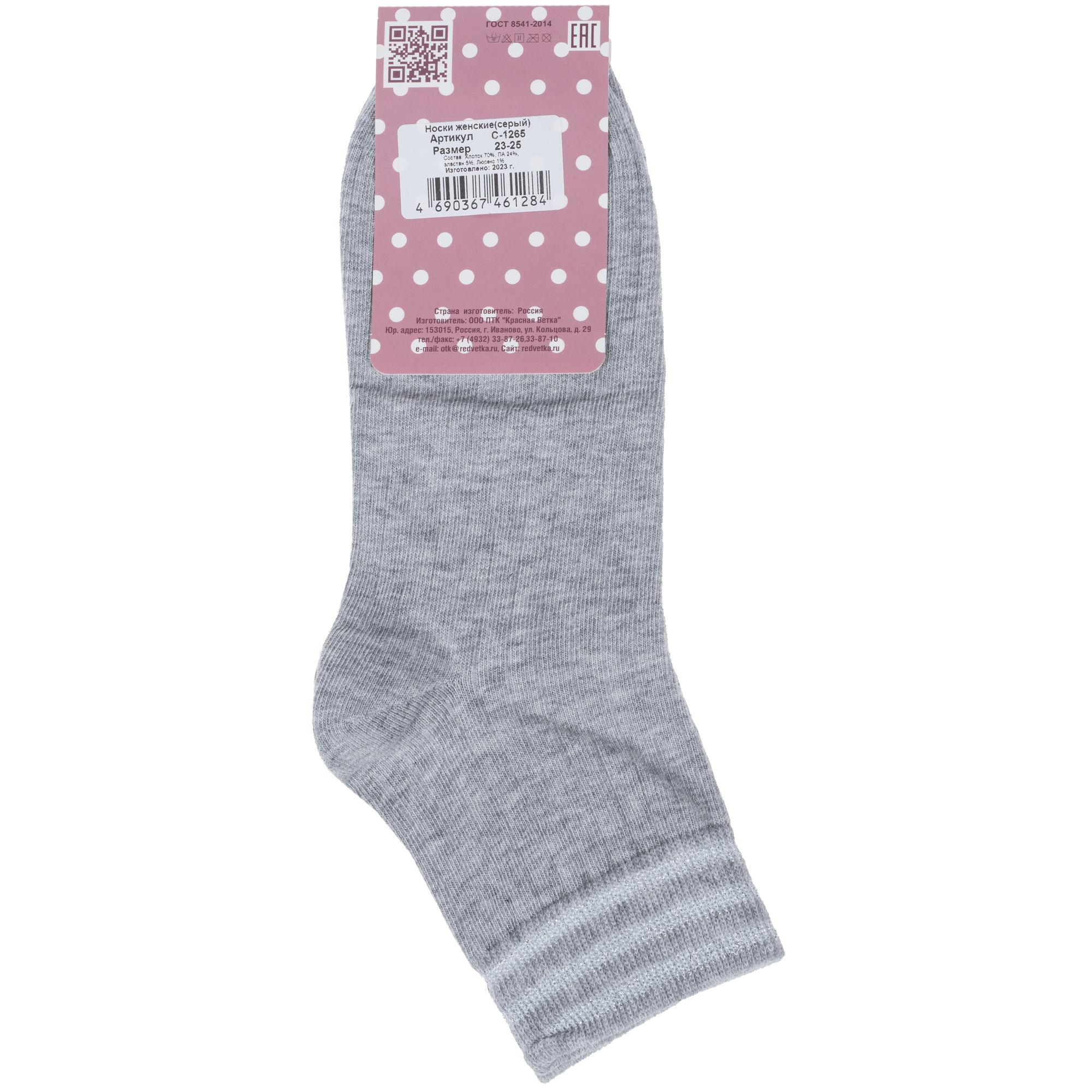 Круглогодичные укороченные женские носки, цвет серый, классические, возможно бесшовные, принт (рисунок): контрастные пятка / мысок / резинка, в рубчик, блеск люрекса, однотонный, состав: 70% хлопок, 24% полиамид, 5% эластан, 1% люрекс, арт. С-1265. Производитель «КРАСНАЯ ВЕТКА» Россия под брендом «Красная ветка».