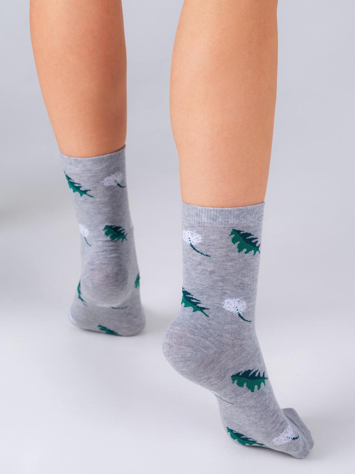 Круглогодичные укороченные женские носки, цвет серый, повседневные, возможно бесшовные, принт (рисунок): цветы / растения, с узором, крупные контрастные рисунки, состав: 66% хлопок, 19% полиамид, 11% полипропилен, 4% эластан, арт. С-1279. Производитель «КРАСНАЯ ВЕТКА» Россия под брендом «Красная ветка».