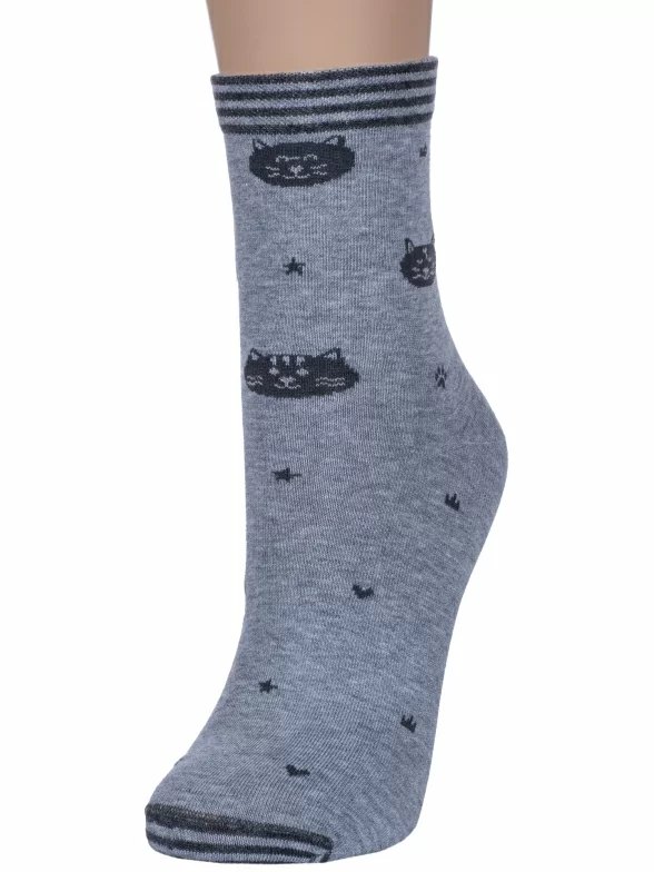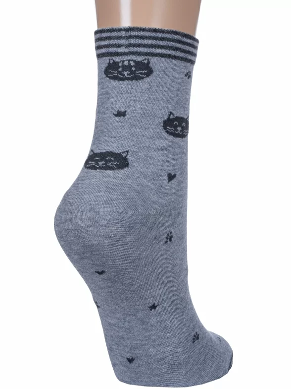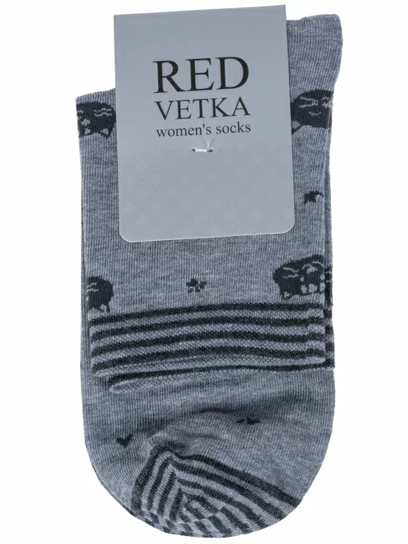 Круглогодичные укороченные женские носки, цвет серый, повседневные, возможно бесшовные, принт (рисунок): контрастные пятка / мысок / резинка, животные, с узором, состав: 67% хлопок, 24% полиамид, 5% полипропилен, 4% эластан, арт. С-1293. Производитель «КРАСНАЯ ВЕТКА» Россия под брендом «Красная ветка».