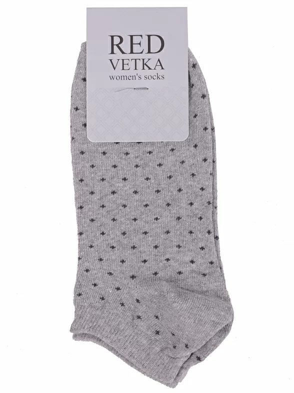 Межсезонные или летние короткие женские носки, цвет серый, классические, возможно бесшовные, принт (рисунок): мелкий принт, с узором, состав: 48% хлопок, 32% полиэстер, 16% полиамид, 4% эластан, арт. С-964. Производитель «КРАСНАЯ ВЕТКА» Россия под брендом «Красная ветка».