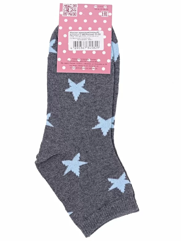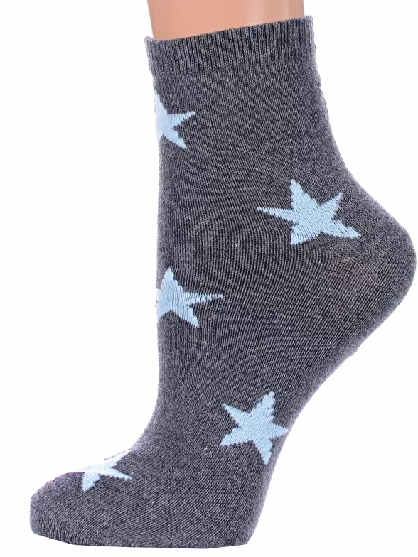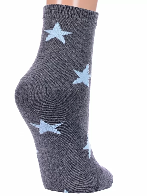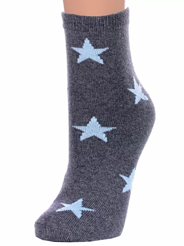Круглогодичные укороченные женские носки, цвет серый, повседневные, возможно бесшовные, принт (рисунок): звезды / небо, с узором, состав: 59% хлопок, 25% полиэстер, 12% полиамид, 4% эластан (рисунок из полипропилена), арт. С-992. Производитель «КРАСНАЯ ВЕТКА» Россия под брендом «Красная ветка».