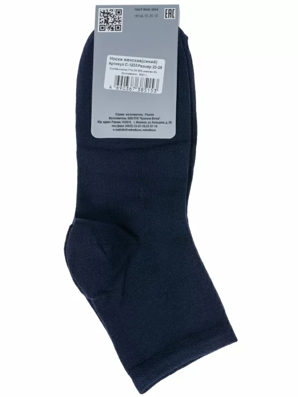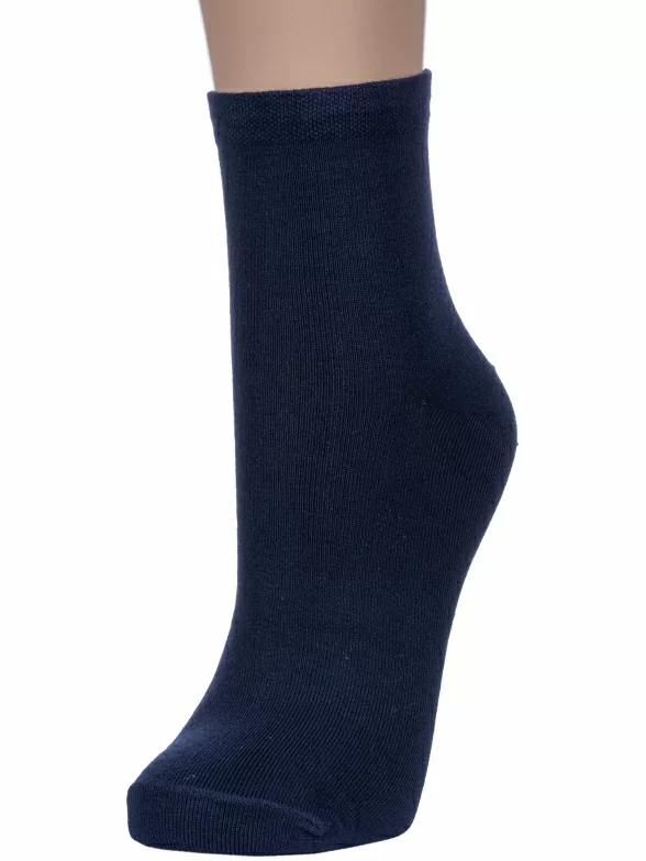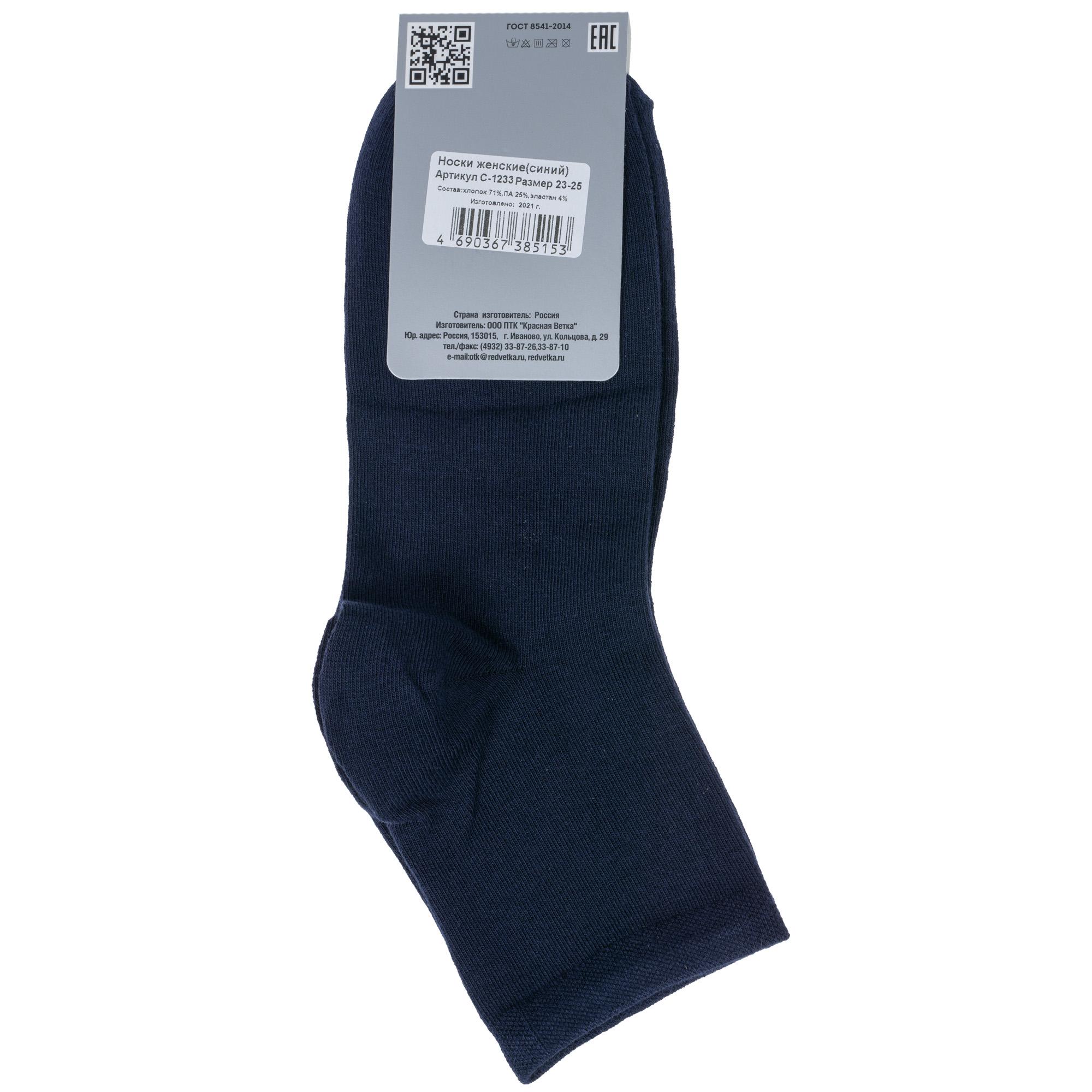 Круглогодичные укороченные женские носки, цвет синий, классические, возможно бесшовные, принт (рисунок): однотонный, без рисунков/узоров, состав: 71% хлопок, 25% полиамид, 4% эластан, арт. С-1233. Производитель «КРАСНАЯ ВЕТКА» Россия под брендом «Красная ветка».