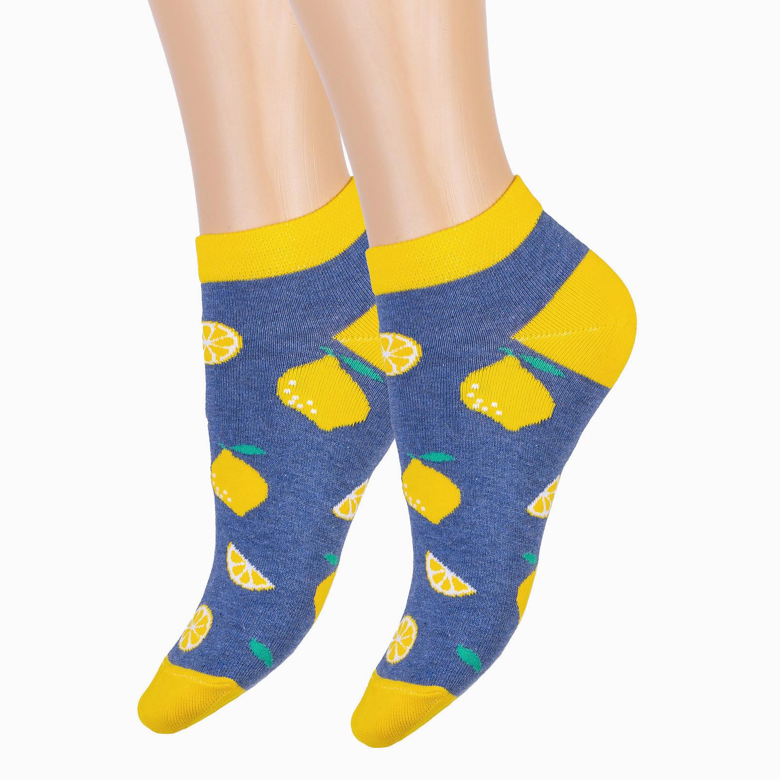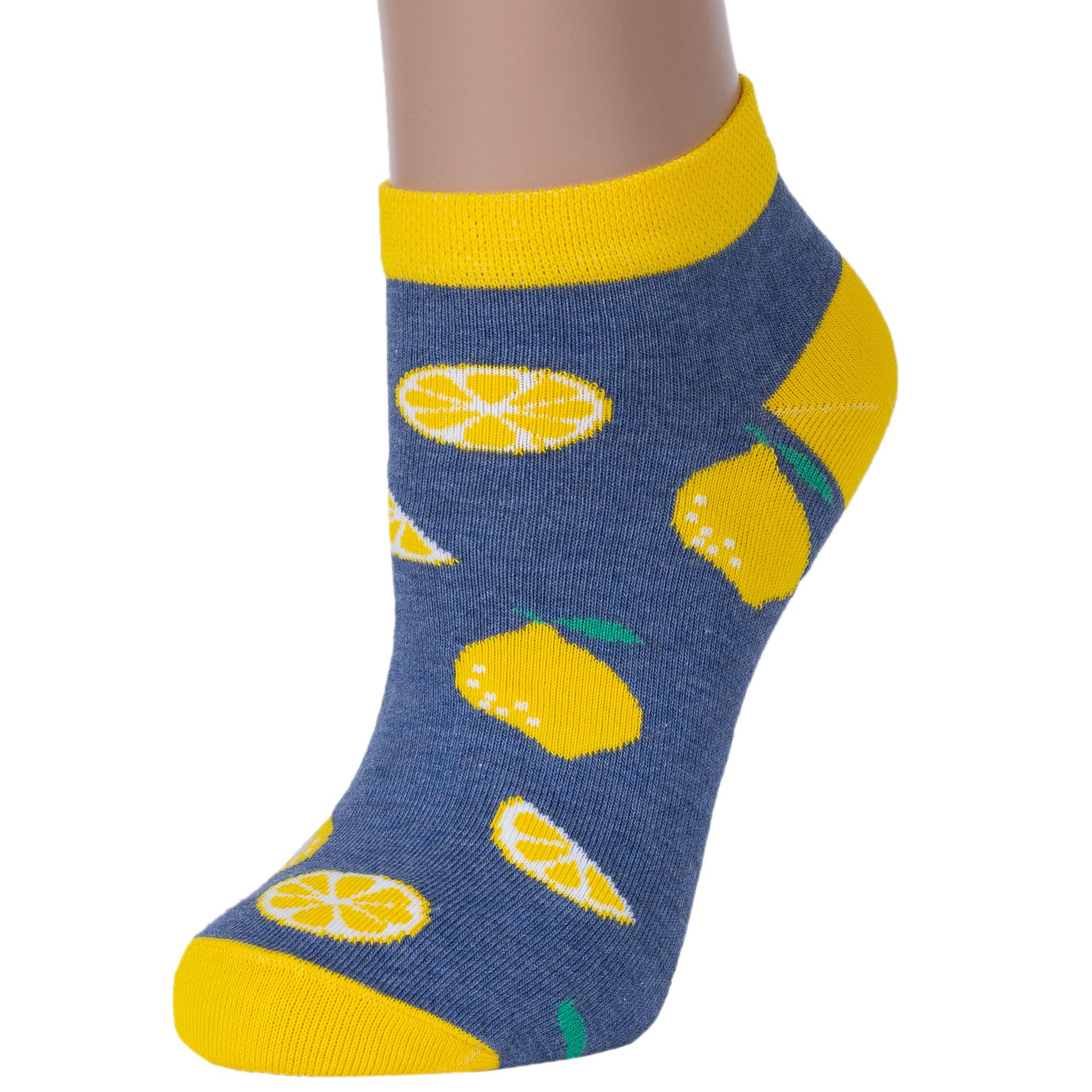 Круглогодичные короткие женские носки, цвет синий-многоцветные (мультиколор), повседневные, возможно бесшовные, принт (рисунок): овощи / фрукты / ягоды, еда и напитки, с узором, состав: 71% хлопок, 20% полиамид, 5% полипропилен, 4% эластан, арт. С-1243. Производитель «КРАСНАЯ ВЕТКА» Россия под брендом «Красная ветка».