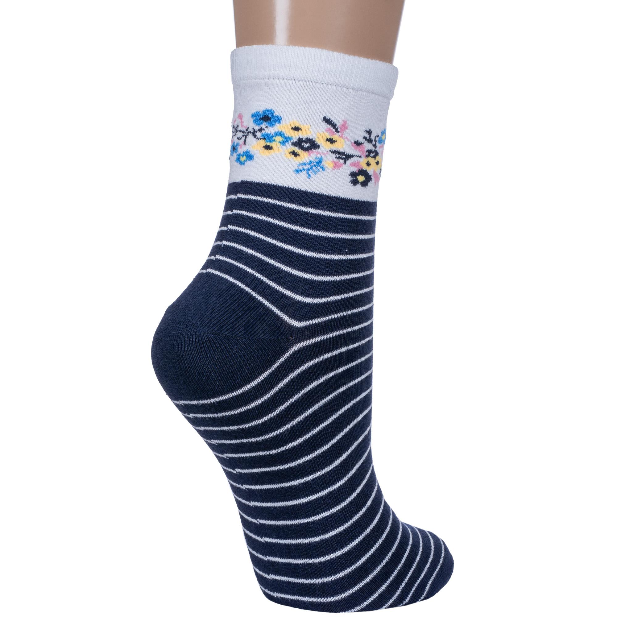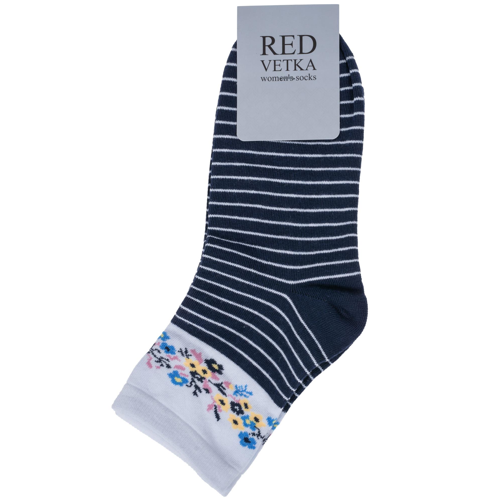 Круглогодичные укороченные женские носки, цвет синий, повседневные, возможно бесшовные, принт (рисунок): цветы / растения, полоски, контрастные пятка / мысок / резинка, с узором, состав: 70% хлопок, 20% полиамид, 6% полипропилен, 4% эластан, арт. С-1254. Производитель «КРАСНАЯ ВЕТКА» Россия под брендом «Красная ветка».