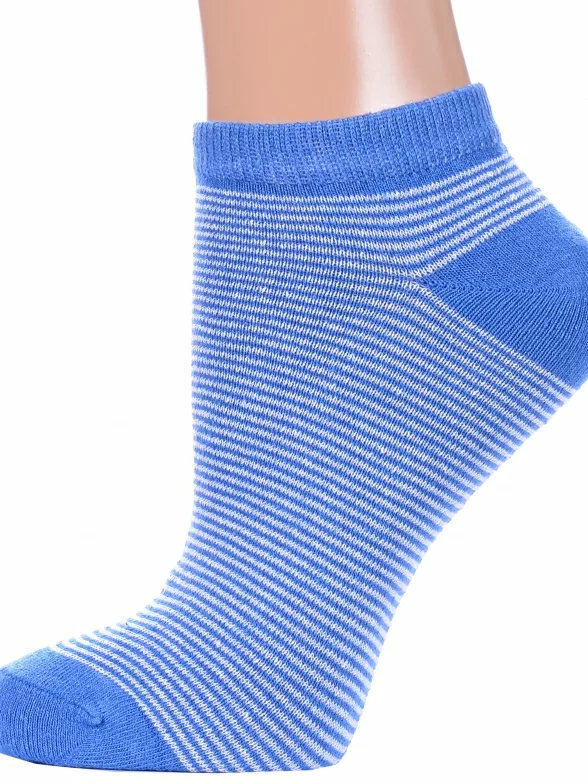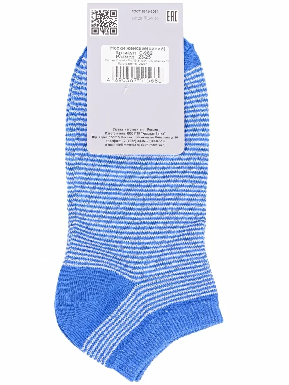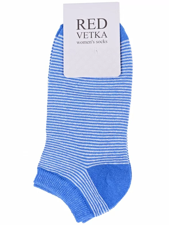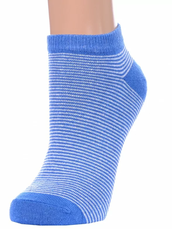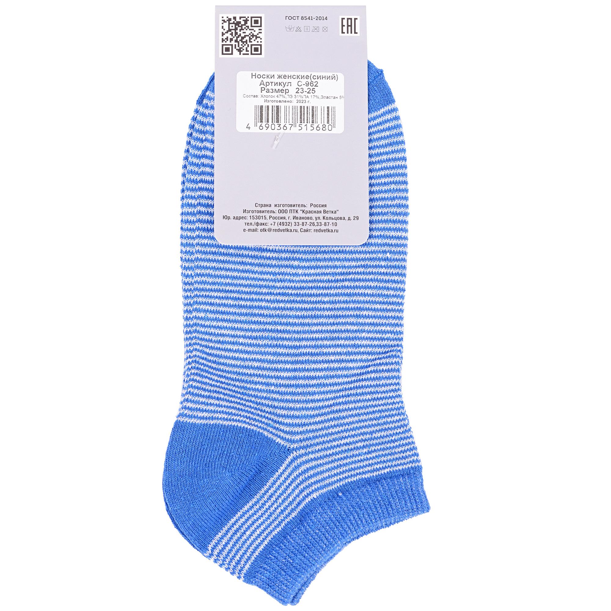 Межсезонные или летние короткие женские носки, цвет синий, классические, возможно бесшовные, принт (рисунок): полоски, с узором, состав: 47% хлопок, 31% полиэстер, 17% полиамид, 5% эластан, арт. С-962. Производитель «КРАСНАЯ ВЕТКА» Россия под брендом «Красная ветка».