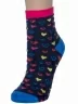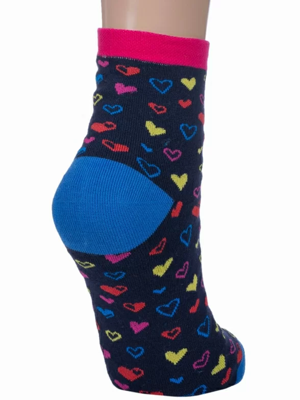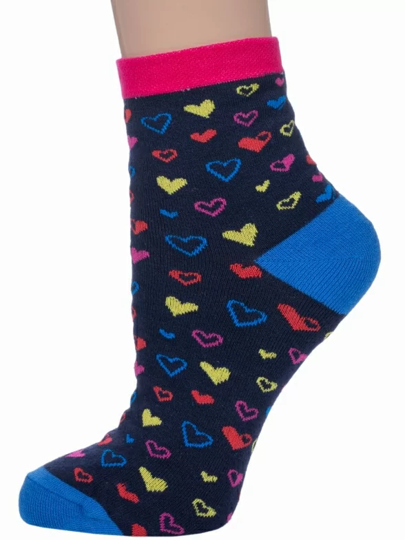Круглогодичные укороченные женские носки, цвет темно-синий, повседневные, возможно бесшовные, принт (рисунок): сердечки / поцелуи / любовь, с узором, состав: 71% хлопок, 25% полиамид, 4% эластан, арт. С-1235. Производитель «КРАСНАЯ ВЕТКА» Россия под брендом «Красная ветка».