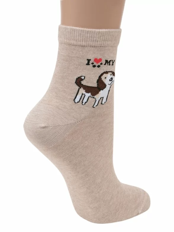 Круглогодичные укороченные женские носки, цвет бежевый, повседневные, шов обычный (не бесшовные), принт (рисунок): с узором, крупные контрастные рисунки, животные, состав: 85% хлопок, 10% полиамид, 5% эластан (лайкра), арт. Д117. Производитель «ИП Мурзаков В.А., Ставропольский край, Россия» под брендом «Lorenzline».
