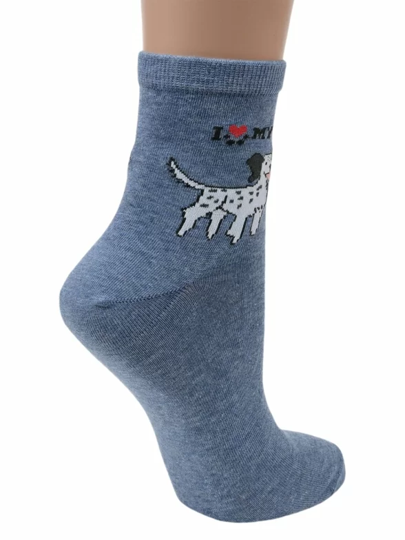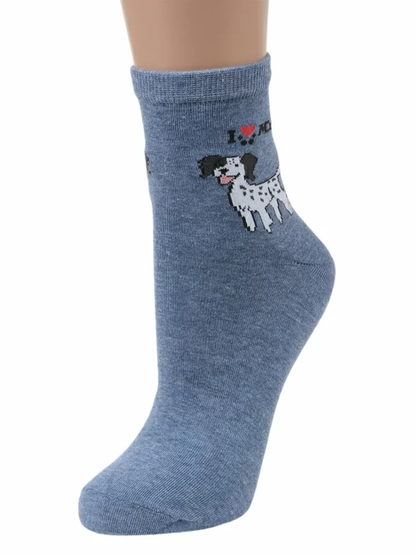 Круглогодичные укороченные женские носки, цвет синий-джинс, повседневные, шов обычный (не бесшовные), принт (рисунок): животные, с узором, крупные контрастные рисунки, состав: 85% хлопок, 10% полиамид, 5% эластан (лайкра), арт. Д117. Производитель «ИП Мурзаков В.А., Ставропольский край, Россия» под брендом «Lorenzline».