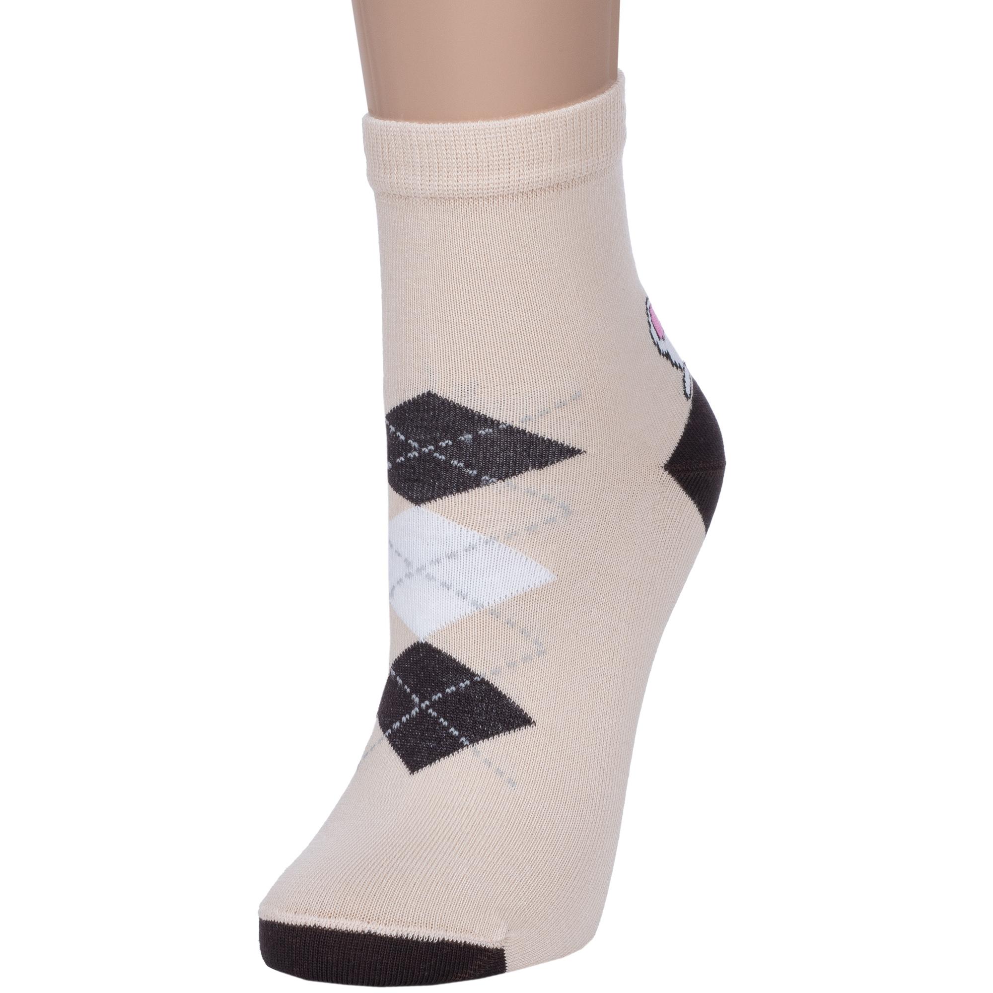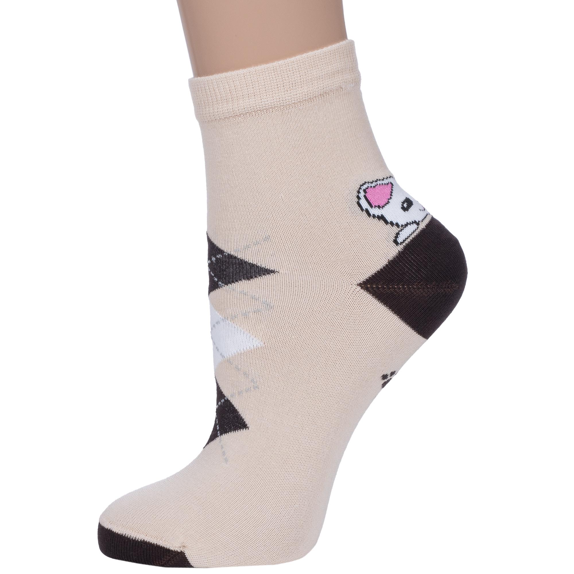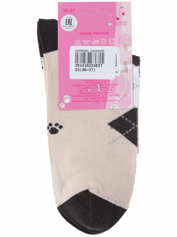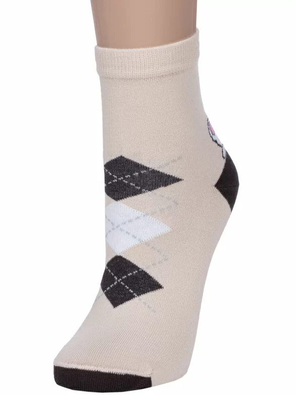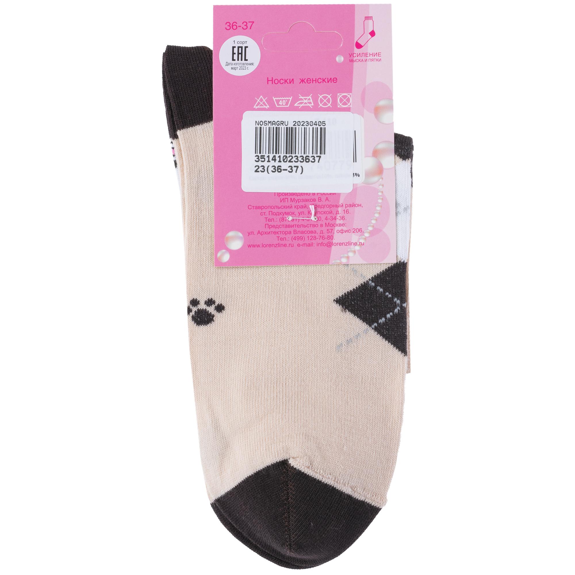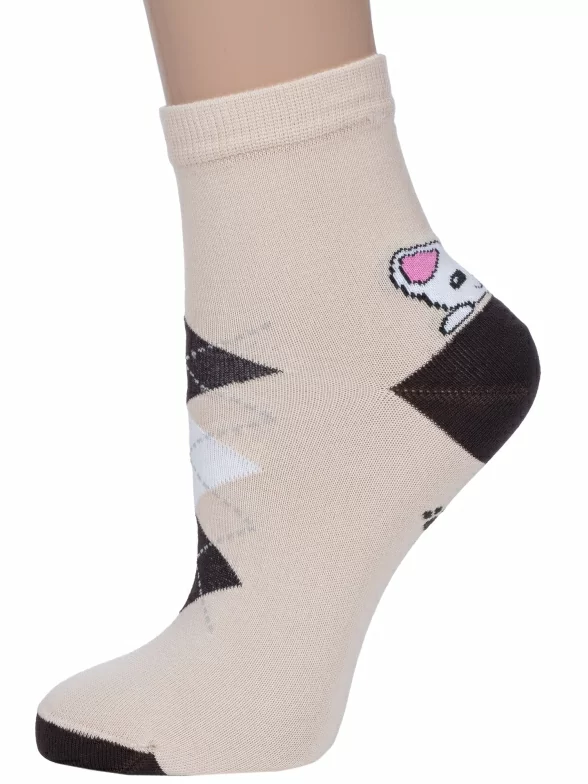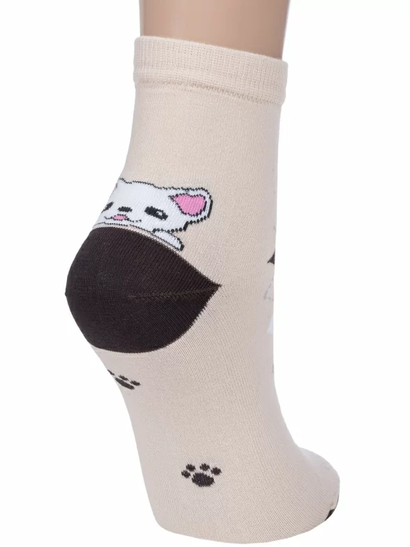 Круглогодичные укороченные женские носки, цвет бежевый, повседневные, шов обычный (не бесшовные), принт (рисунок): животные, с узором, состав: 85% хлопок, 10% полиамид, 5% эластан (лайкра), арт. Д110. Производитель «ИП Мурзаков В.А., Ставропольский край, Россия» под брендом «Lorenzline».