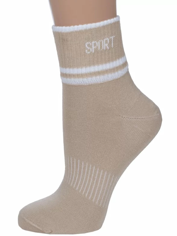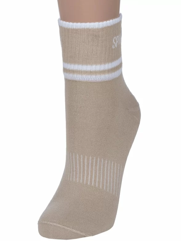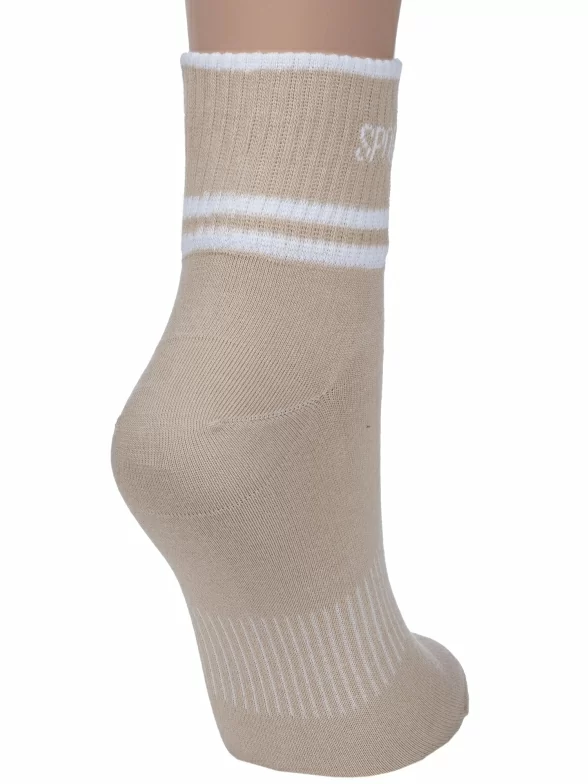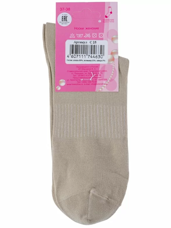 Круглогодичные укороченные женские носки, цвет бежевый, спортивные, шов обычный (не бесшовные), принт (рисунок): спортивные, с узором, состав: 85% хлопок, 10% полиамид, 5% эластан (лайкра), арт. С25. Производитель «ИП Мурзаков В.А., Ставропольский край, Россия» под брендом «Lorenzline».